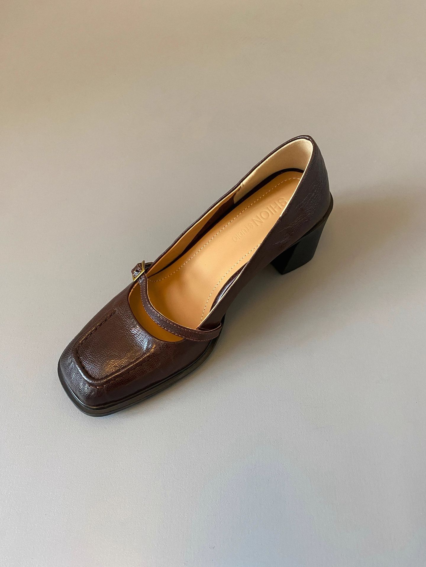 조용한 하이힐 작은 가죽 신발 여성용 다크 브라운 레트로 프렌치 하이힐 2025 새로운 통근 스타일 두꺼운 굽 신발