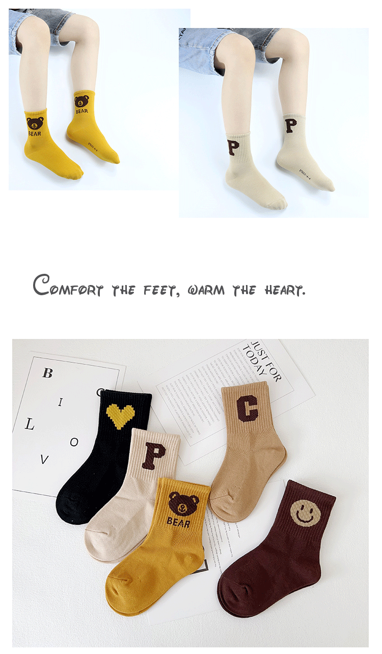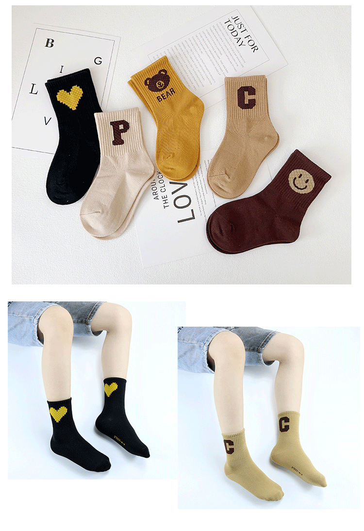이순신 한 쌍의 어린이 양말 가을과 겨울 새 한국어 버전 곰 튜브 양말을 빗어 면 p 레터 스포츠 양말 뼈없는 양말