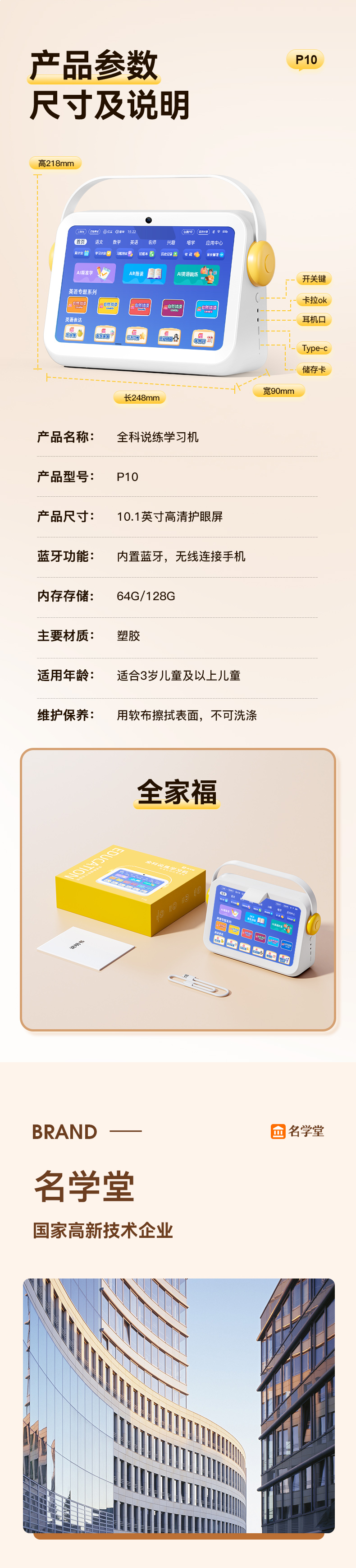 • P10 연습 학습기 + 동시 유치원/초등학교/고등 교과서 + 인터넷 다운로드 - 공식 표준 구성 - 64GB