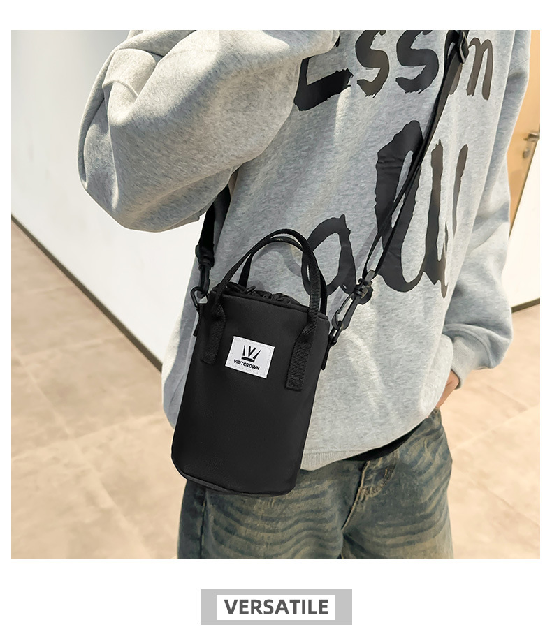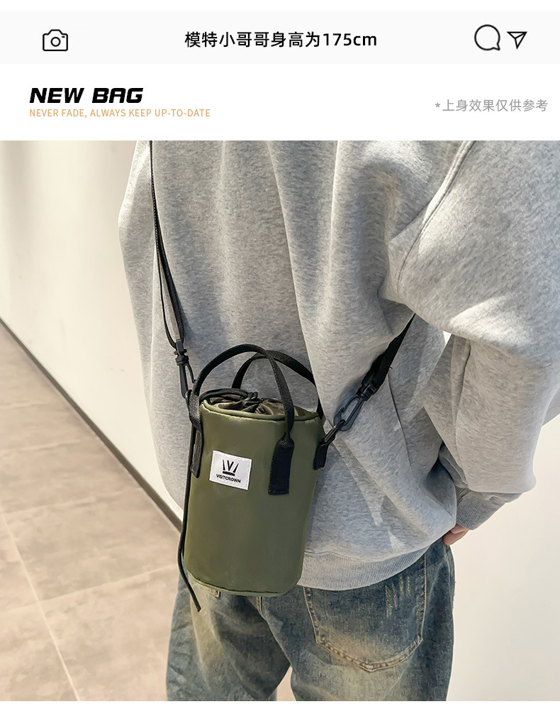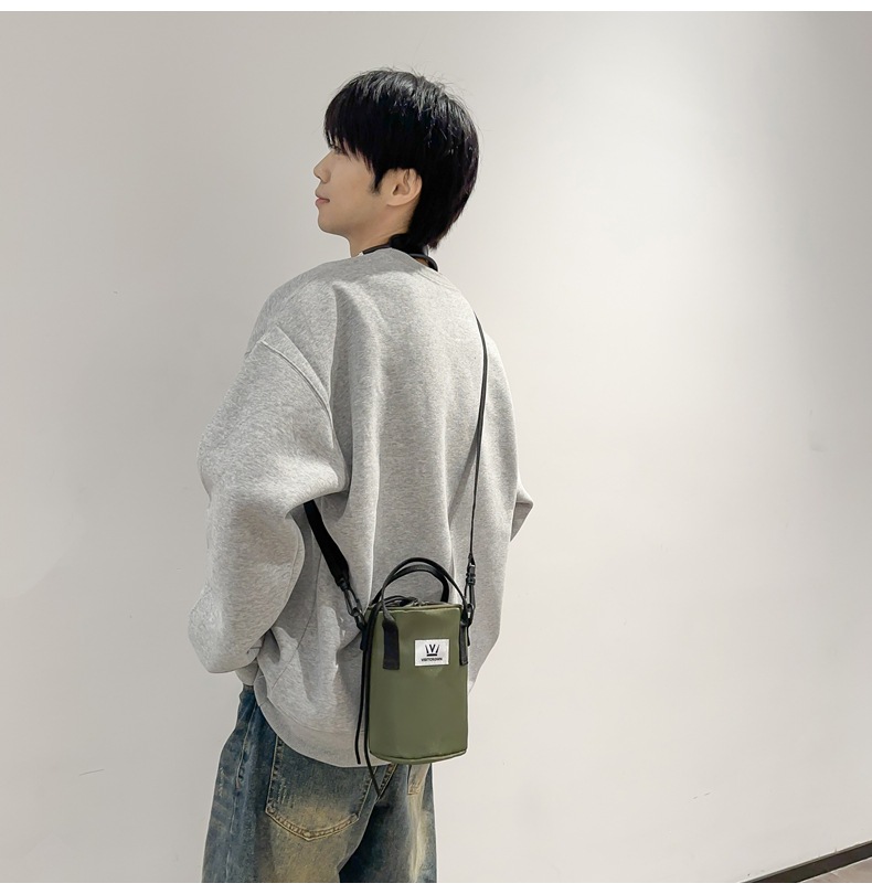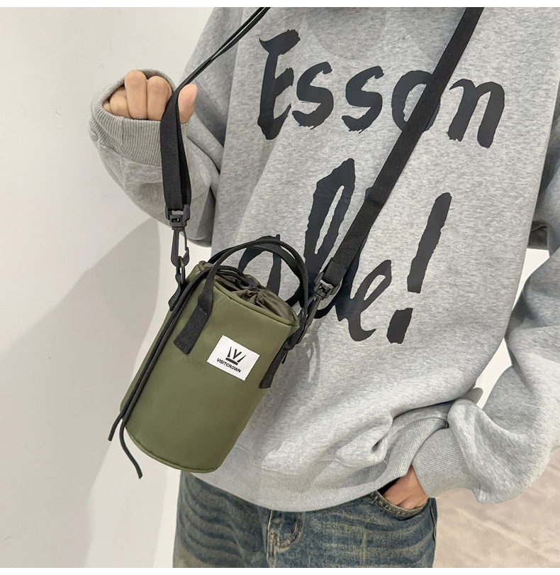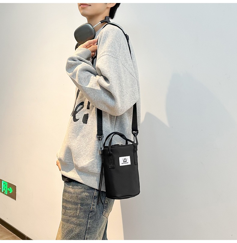 트렌디 한 브랜드 버킷 숄더백 남성용 한국식 라벨링 핸드백 학생 커플 인스타그램 스타일 숄더 핸드백 여성용 크로스 바디 백