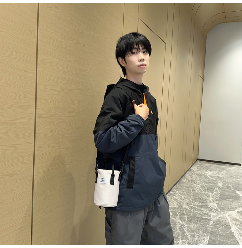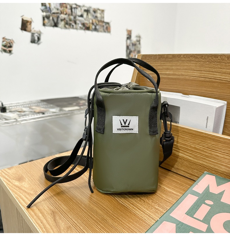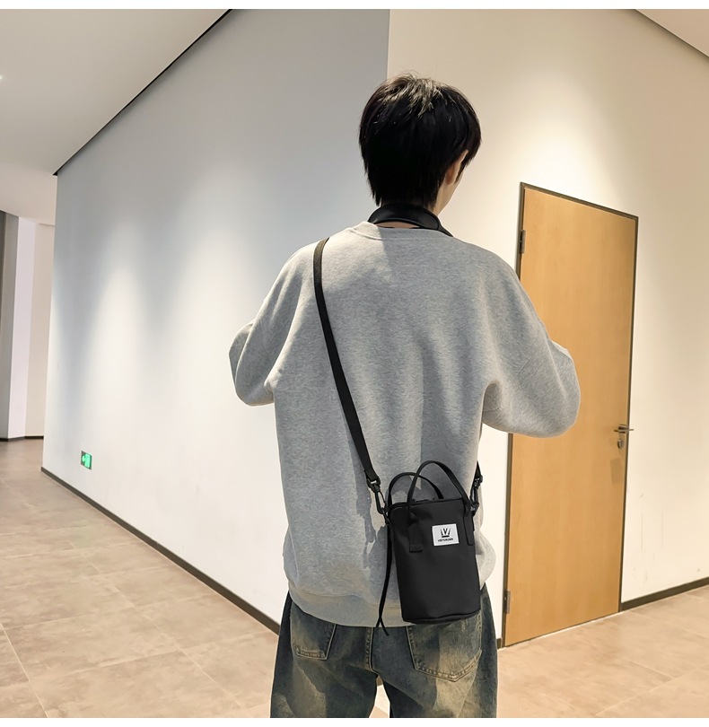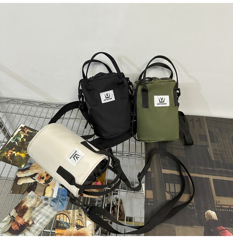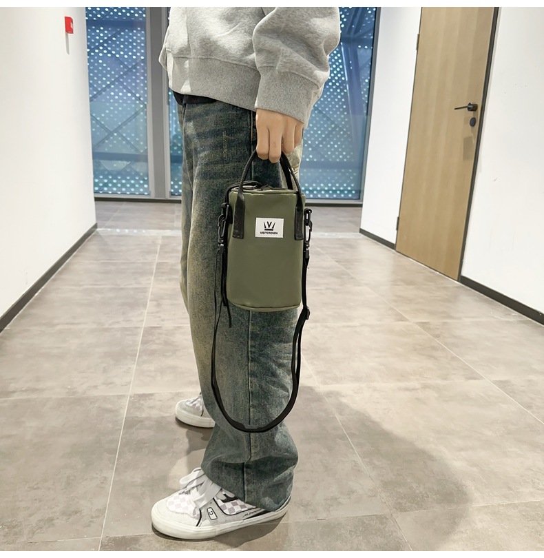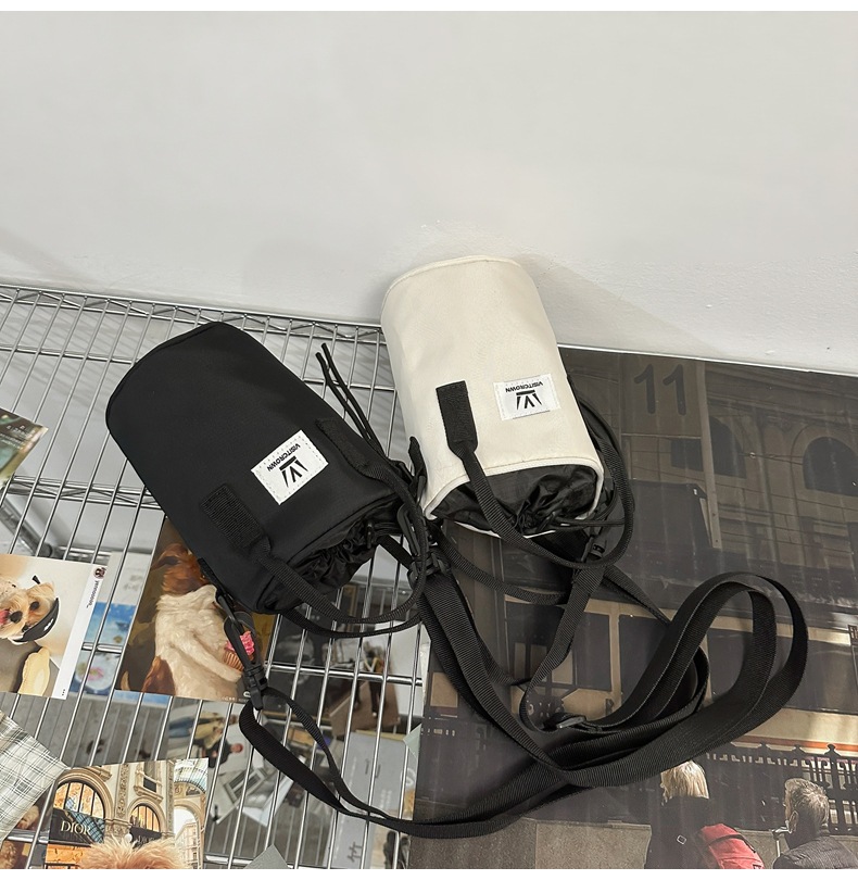 트렌디 한 브랜드 버킷 숄더백 남성용 한국식 라벨링 핸드백 학생 커플 인스타그램 스타일 숄더 핸드백 여성용 크로스 바디 백