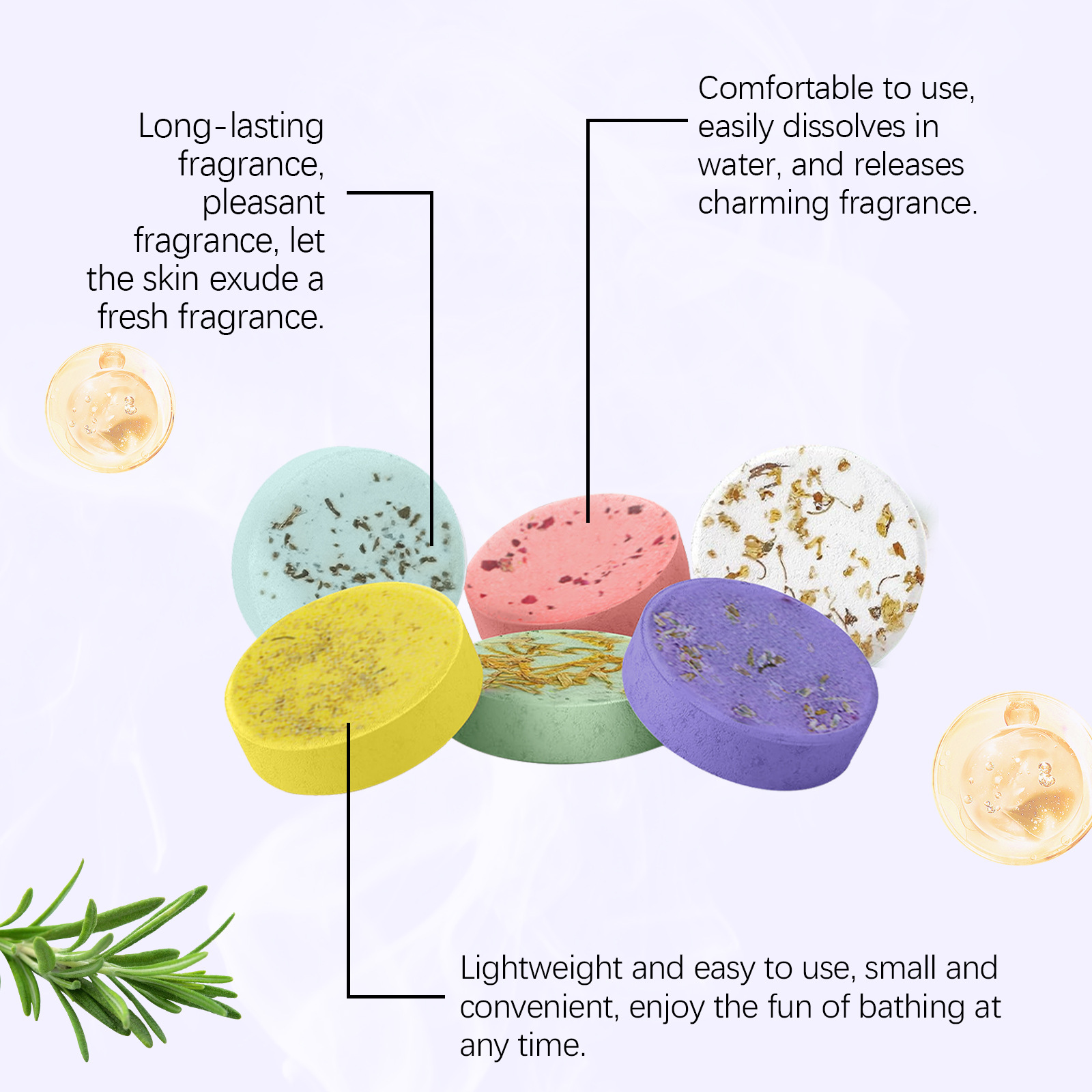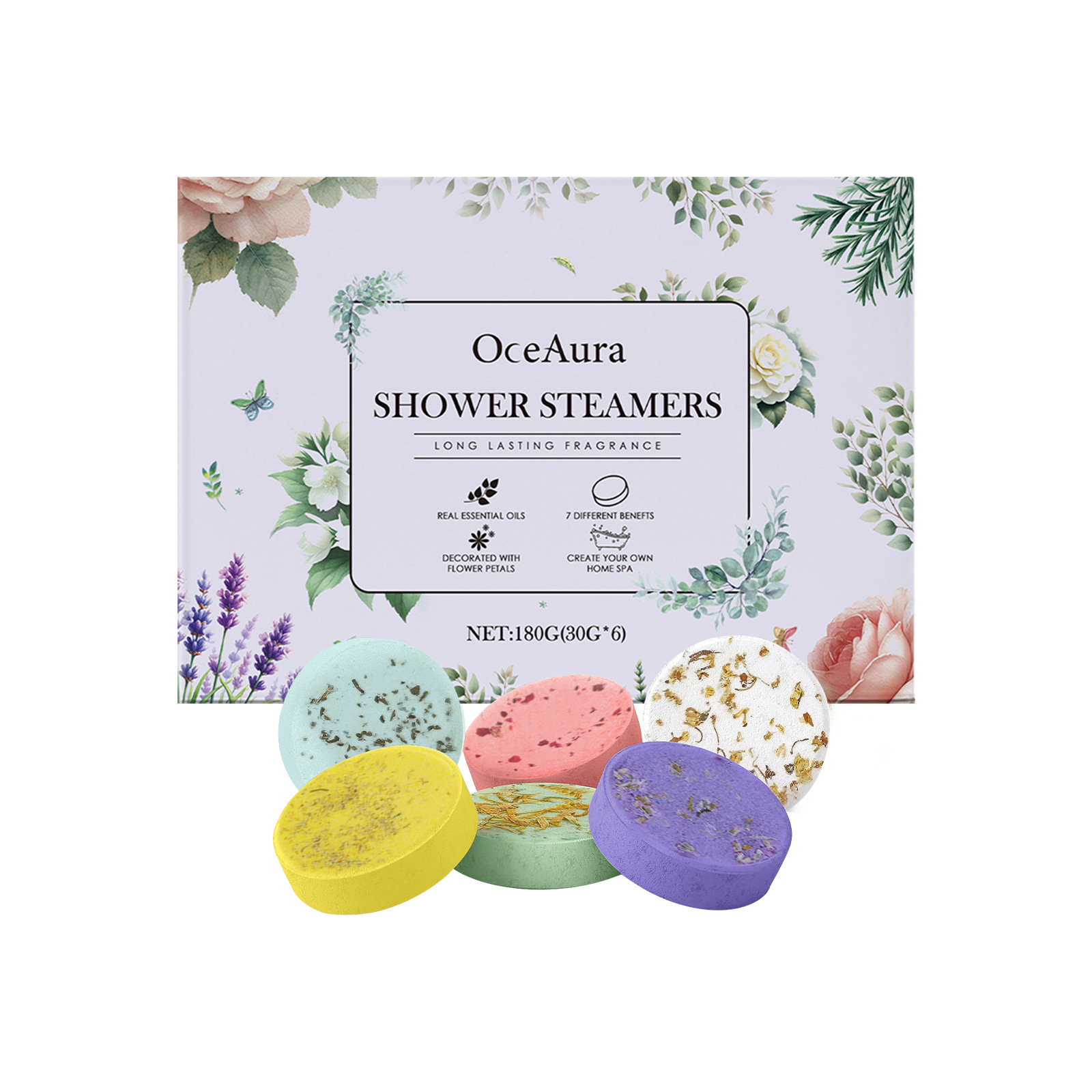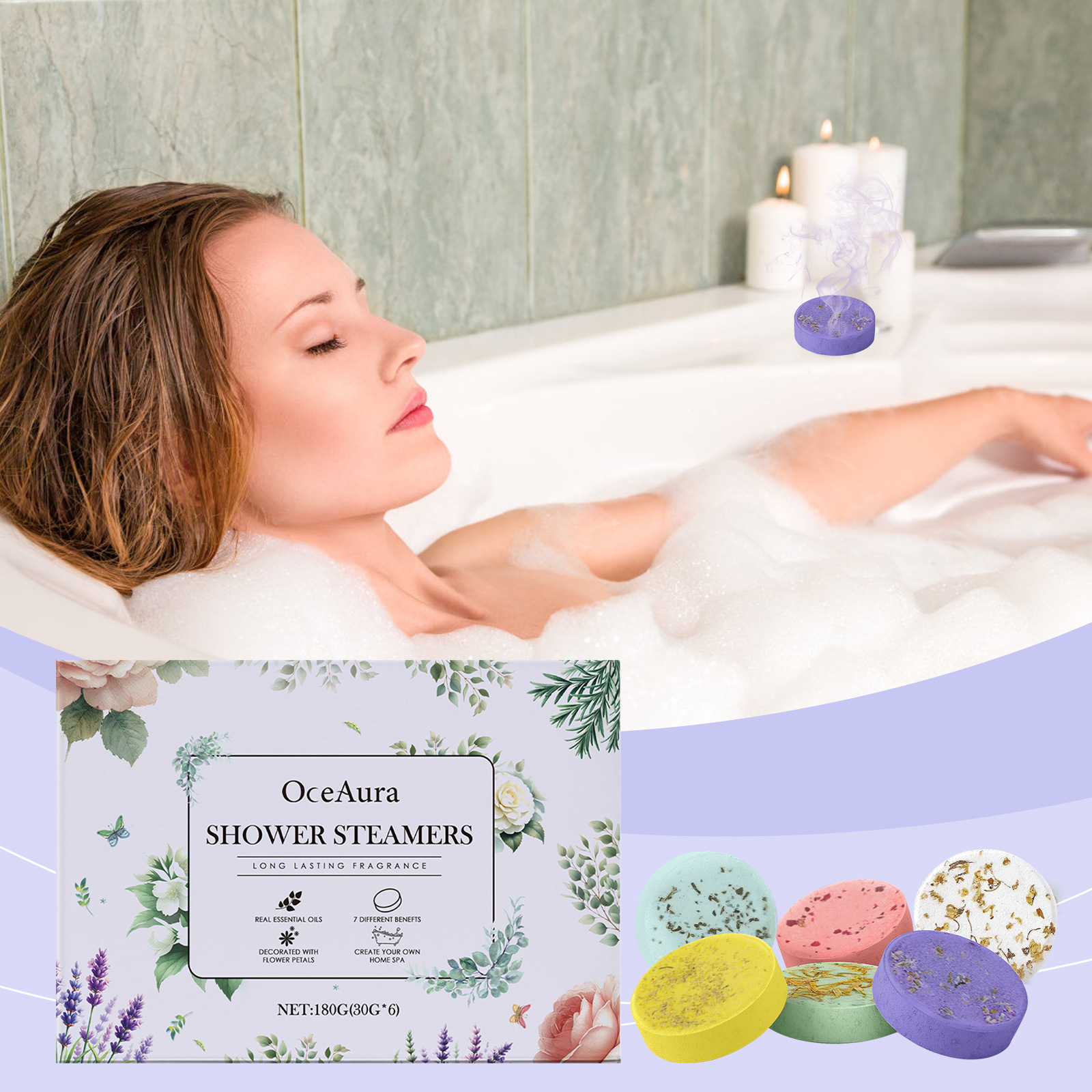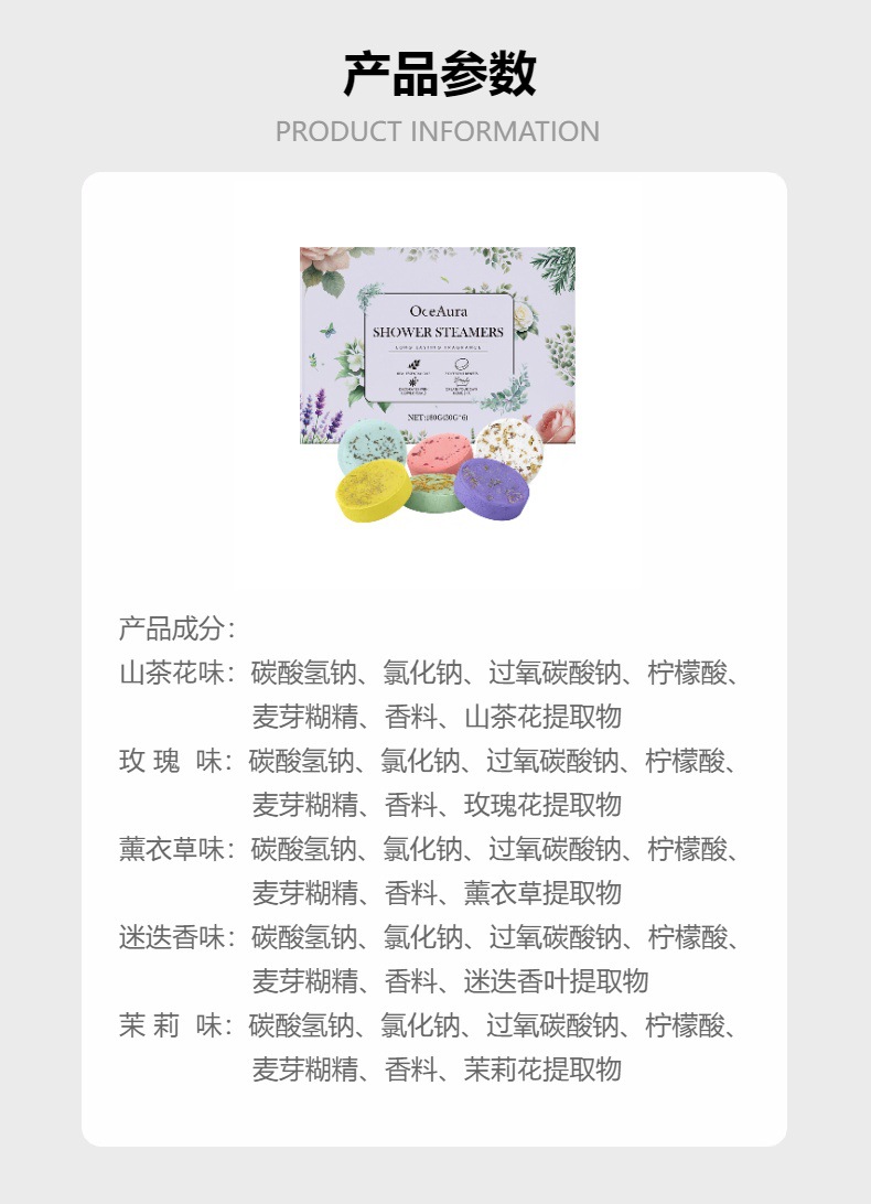 OCEAURA 방향족 증기 샤워 정제 매일 샤워 방출 아로마 보습 및 보습 피부 부드러운 향수