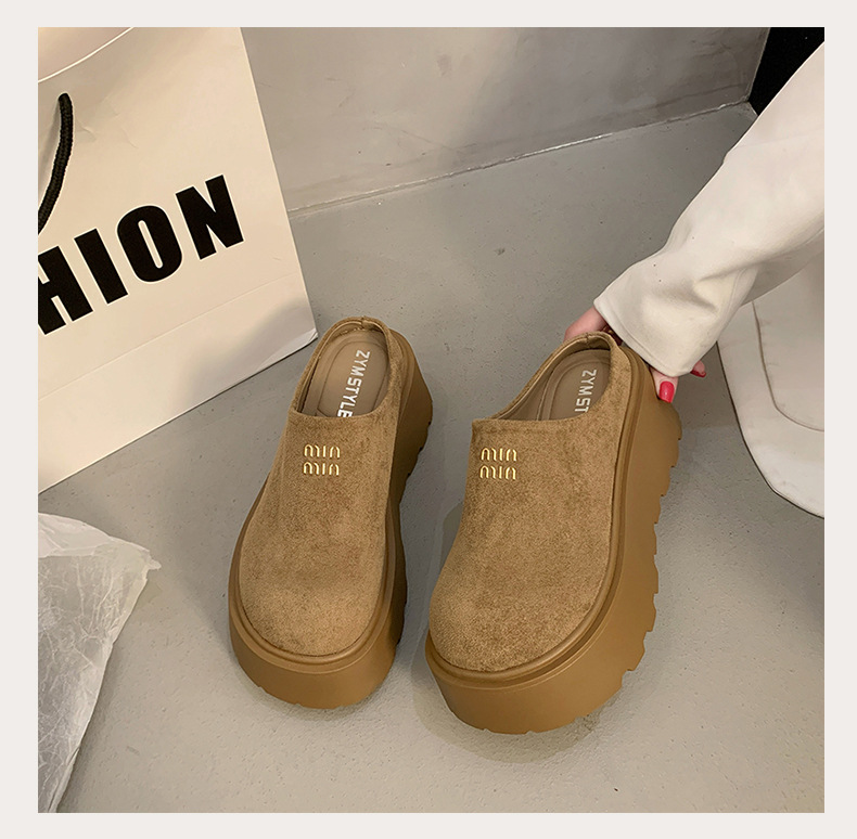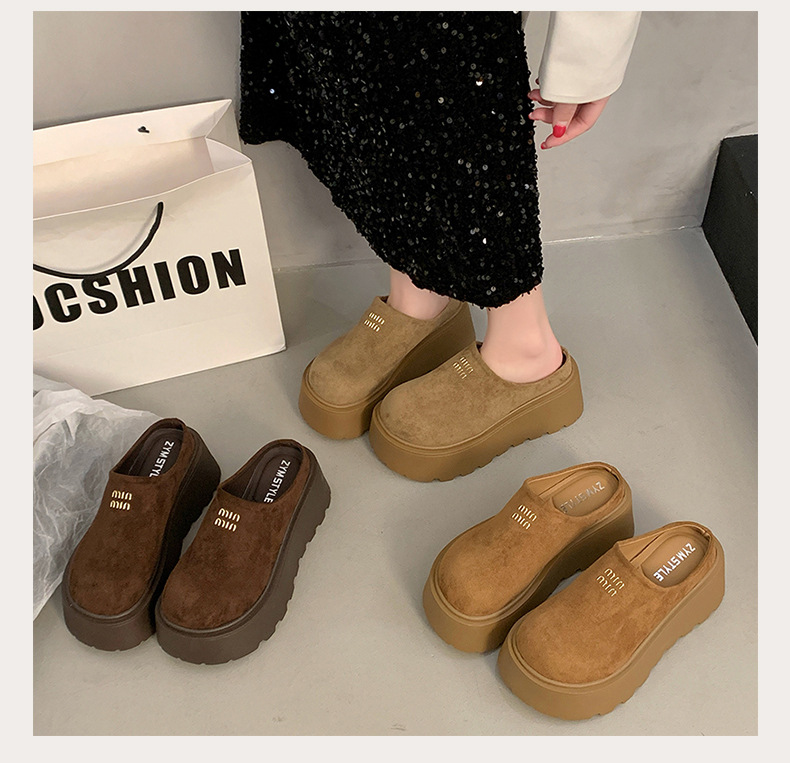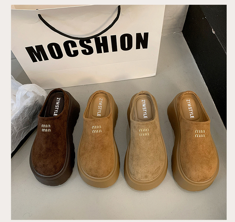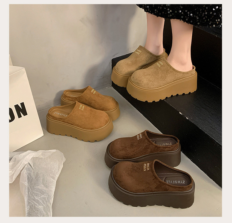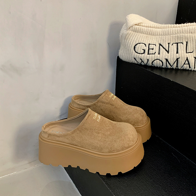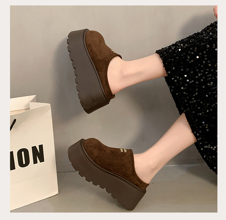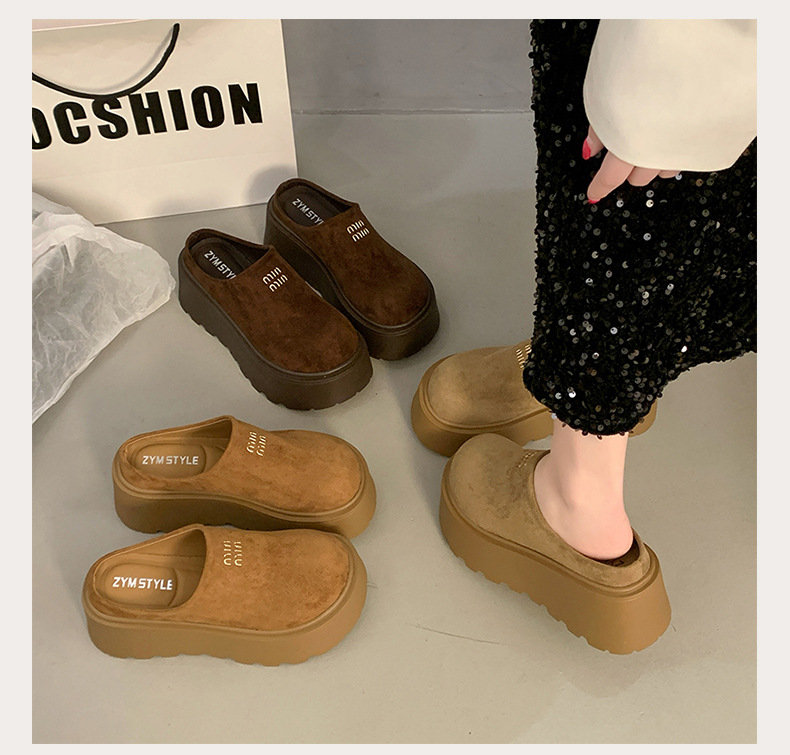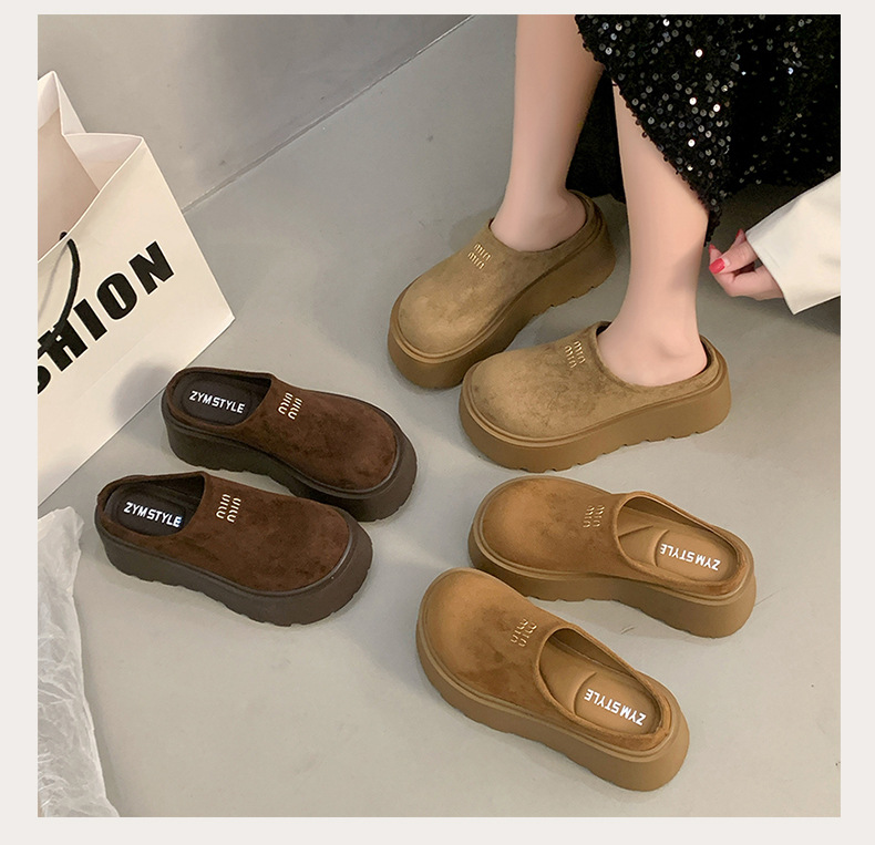 여자 두꺼운 바닥 하단 하프 슬리퍼 2025 봄 뉴 레트로 올매치 게으른 슬립 온 미끄럼 방지 신발