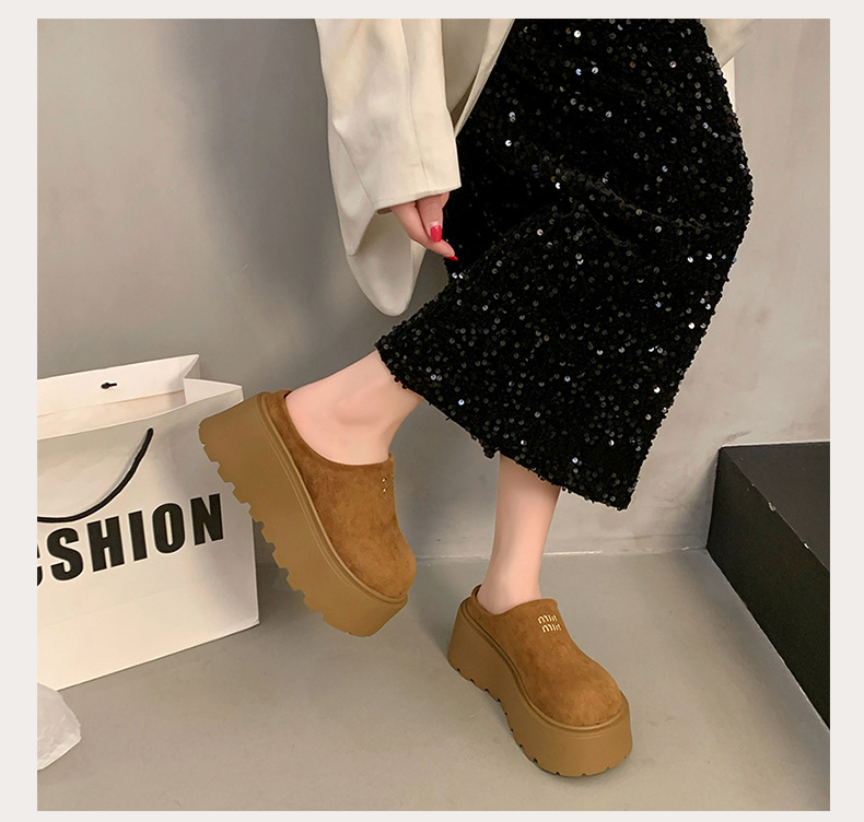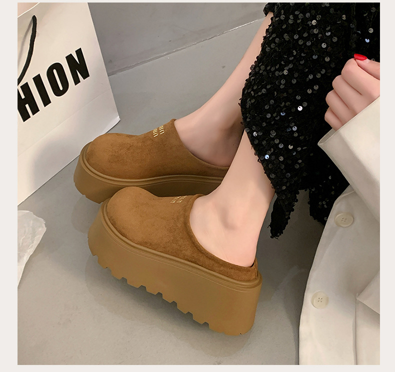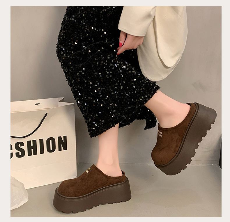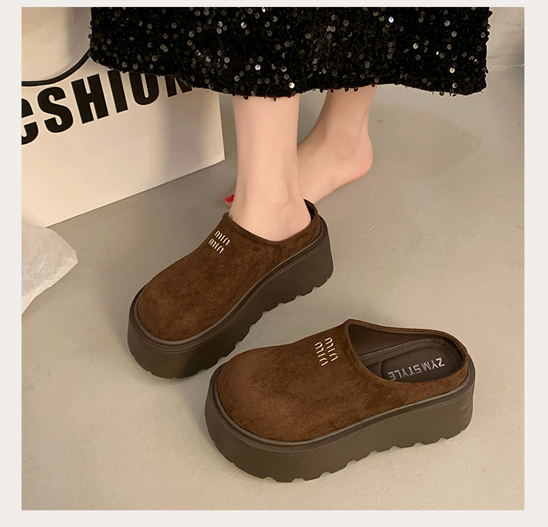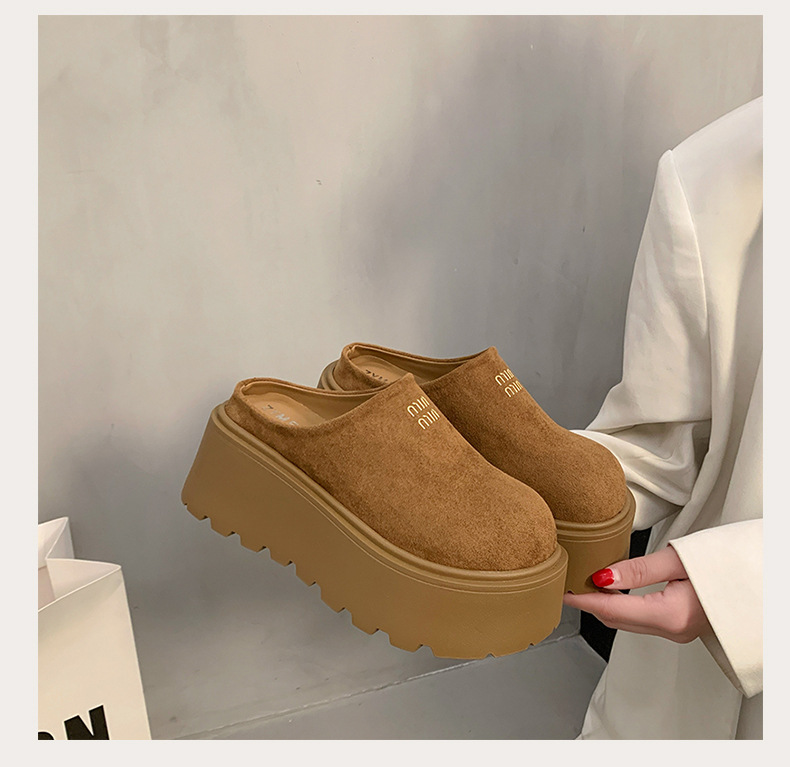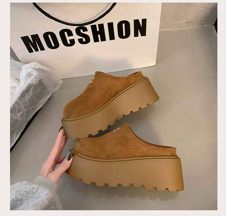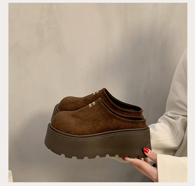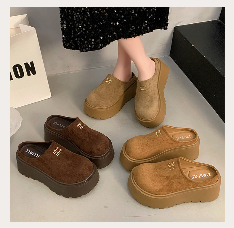 여자 두꺼운 바닥 하단 하프 슬리퍼 2025 봄 뉴 레트로 올매치 게으른 슬립 온 미끄럼 방지 신발