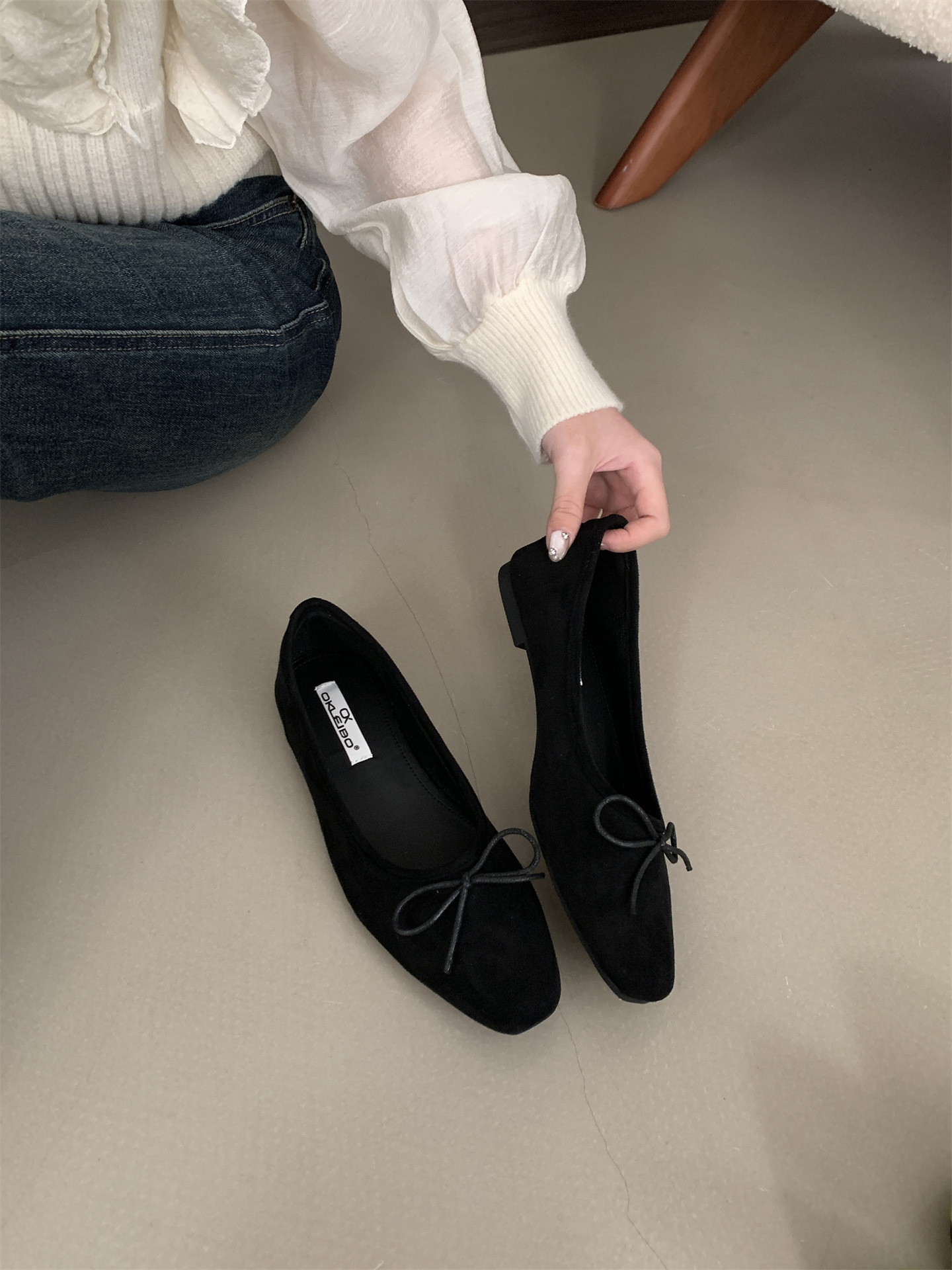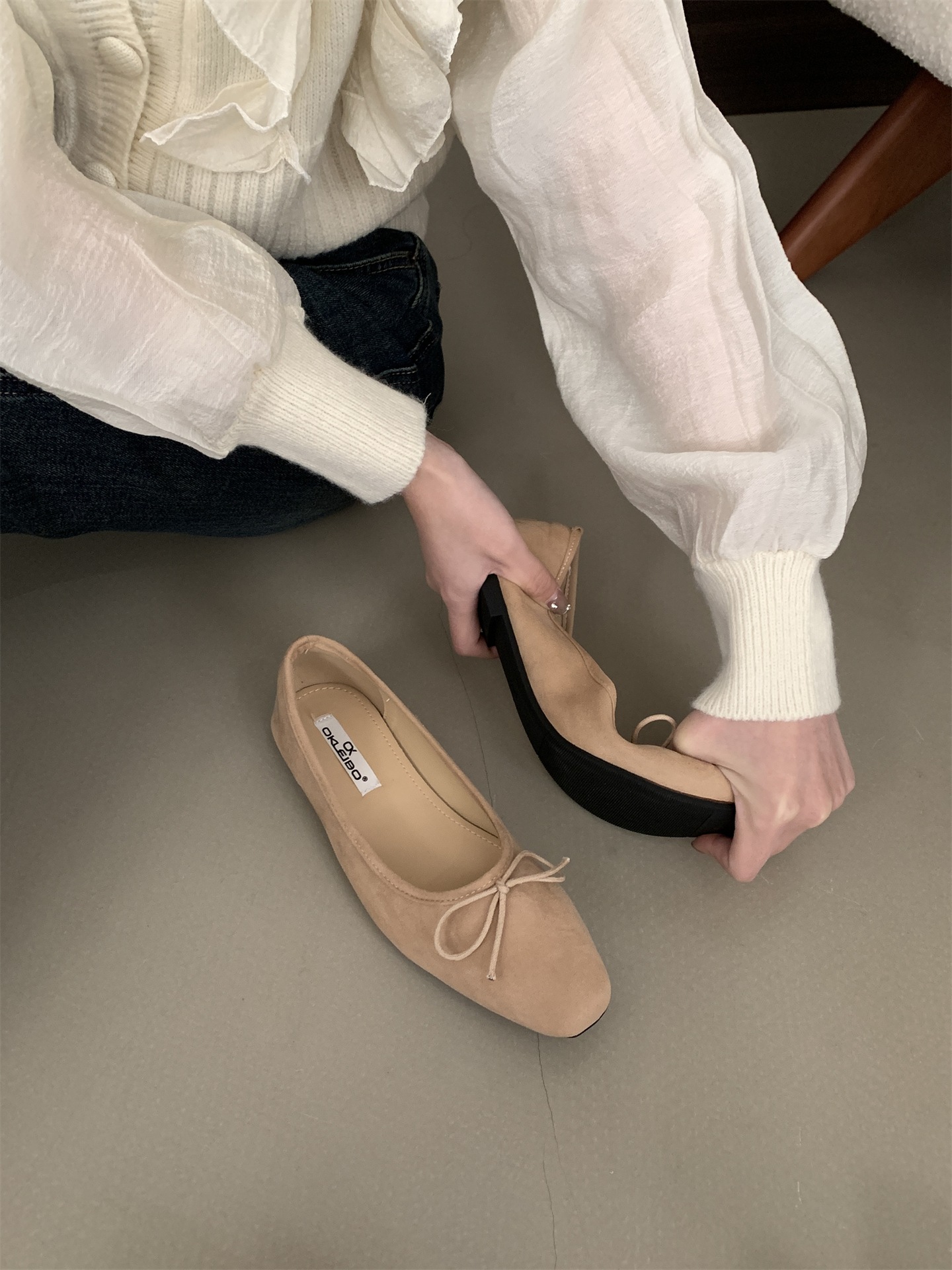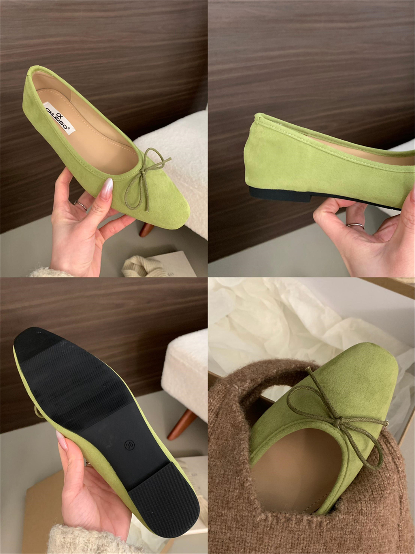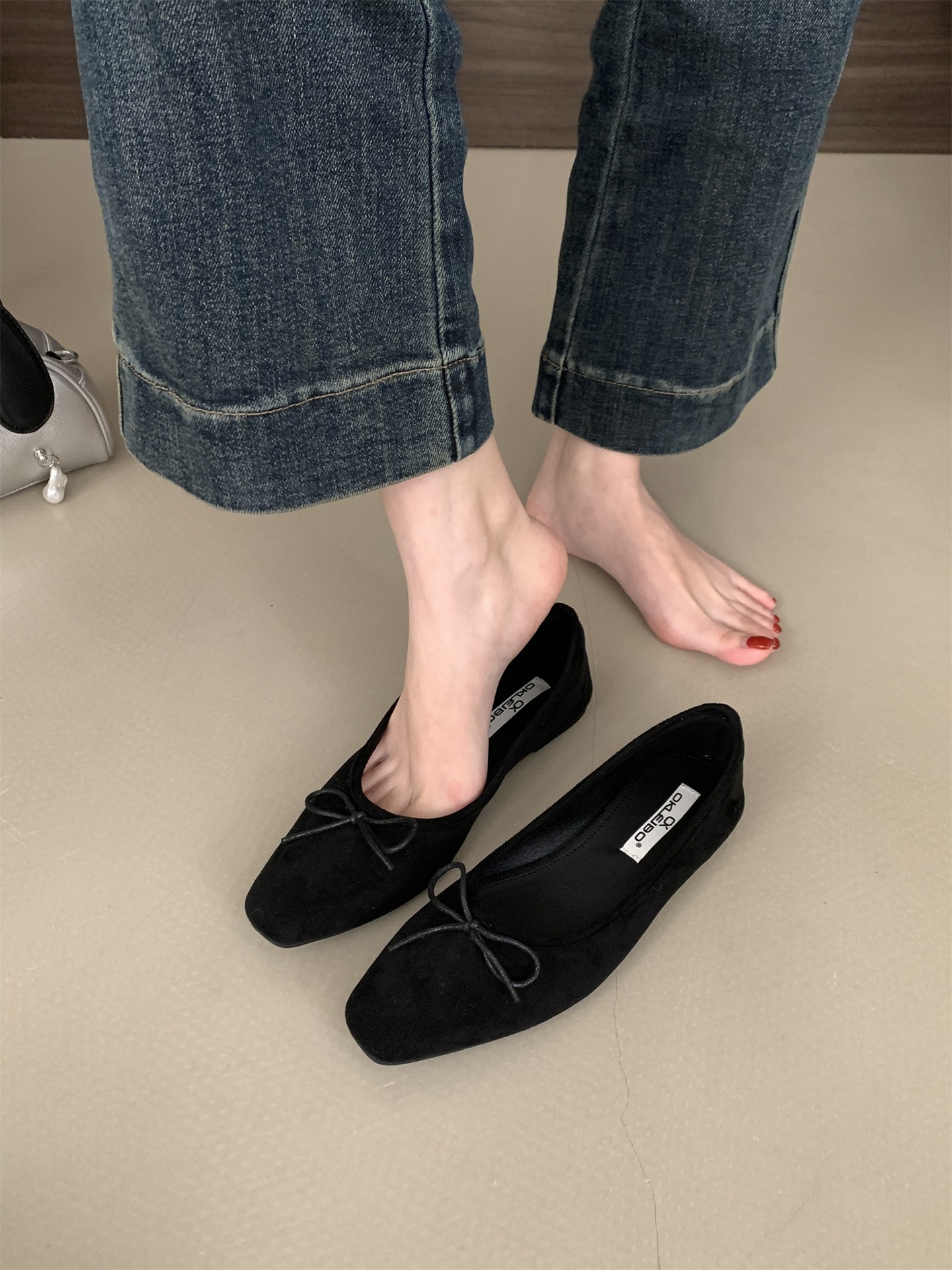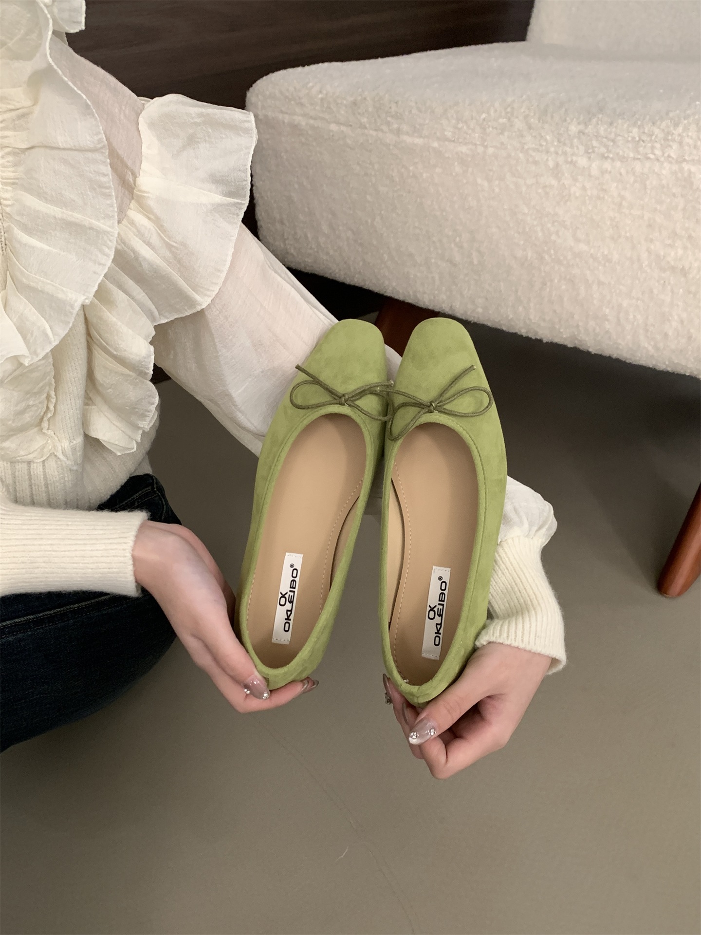 페어리 스타일 활 얕은 입 싱글 신발 플랫 메리 제인 신발 봄 2025 새로운 부드러운 완두콩 신발