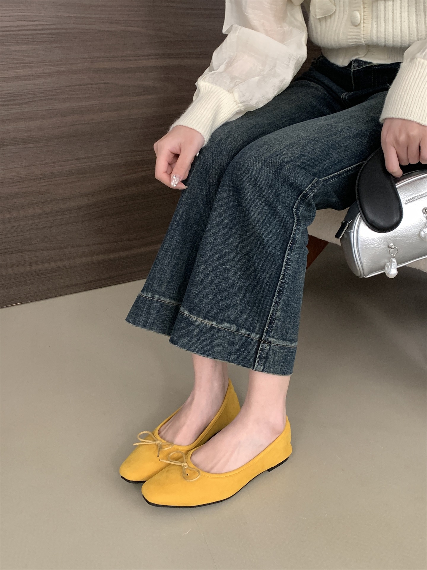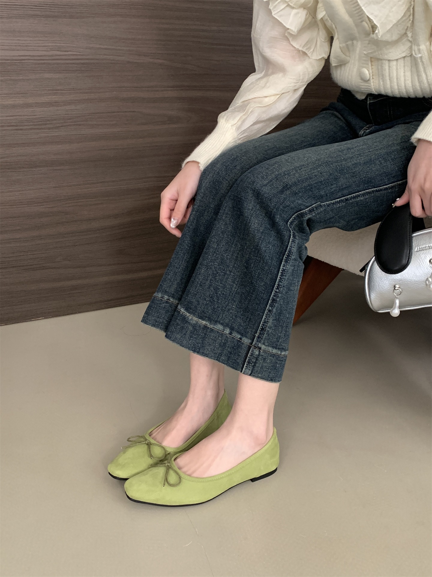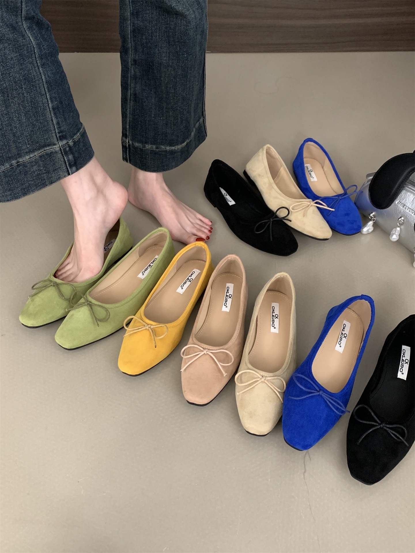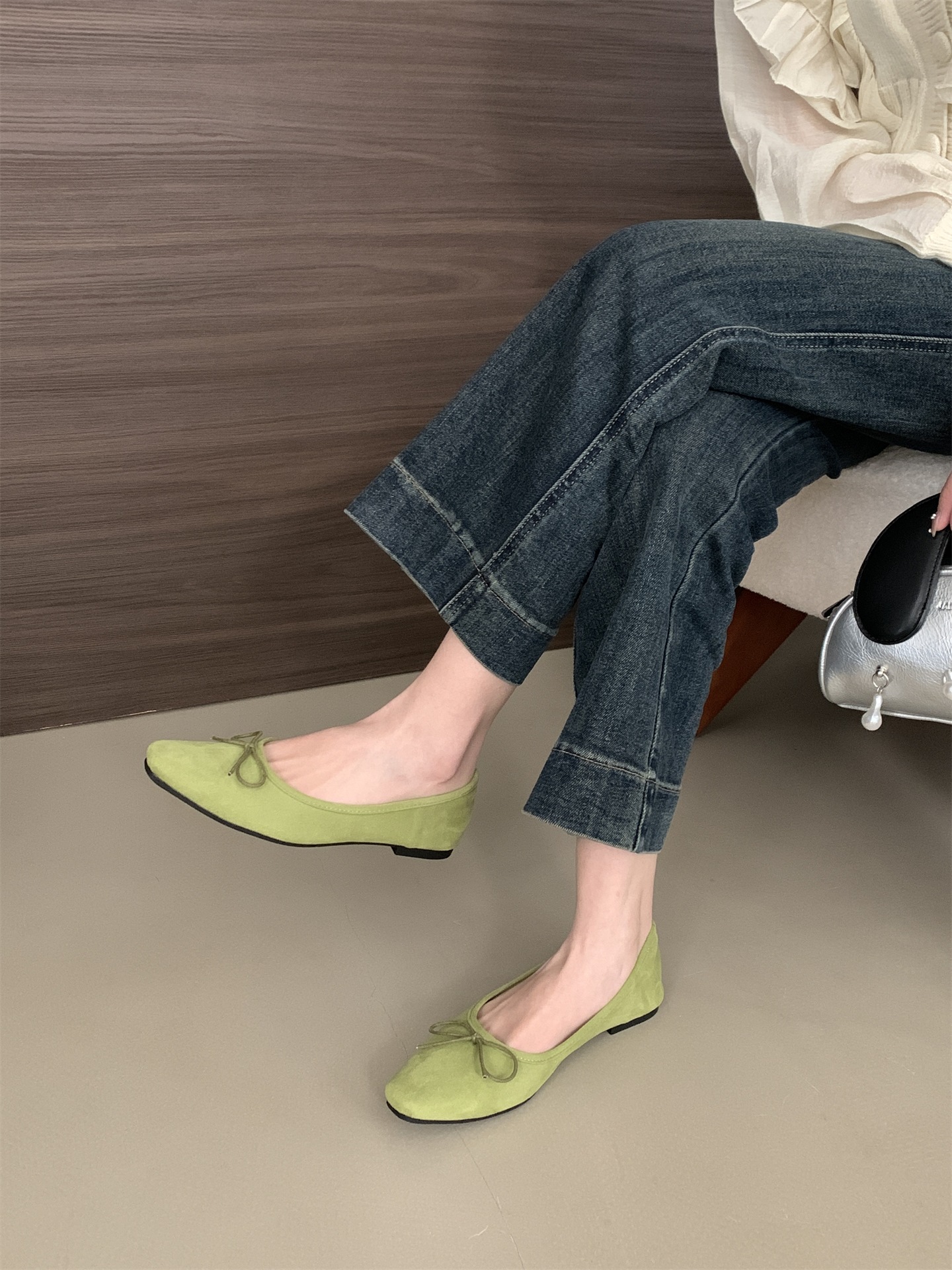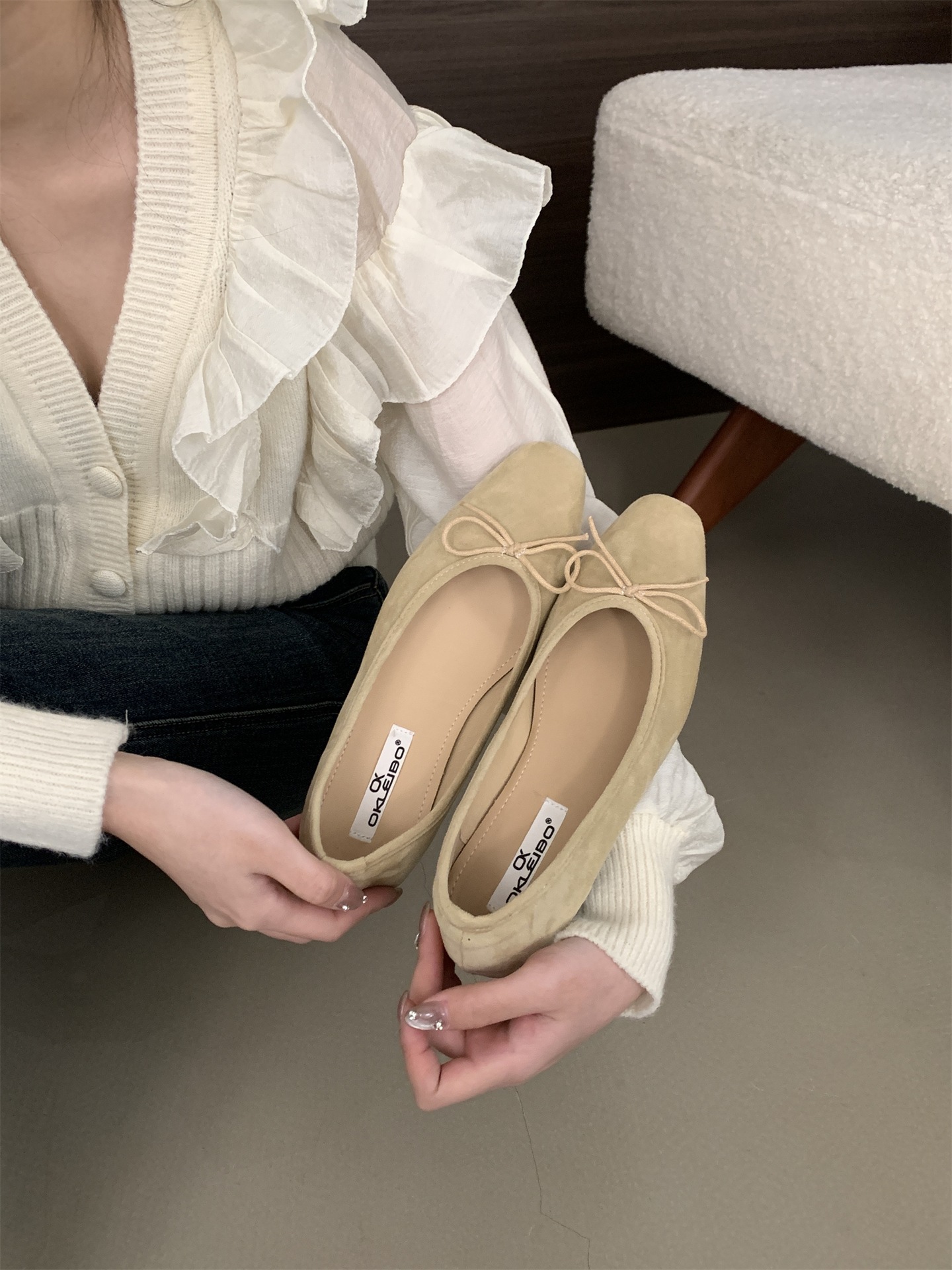 페어리 스타일 활 얕은 입 싱글 신발 플랫 메리 제인 신발 봄 2025 새로운 부드러운 완두콩 신발