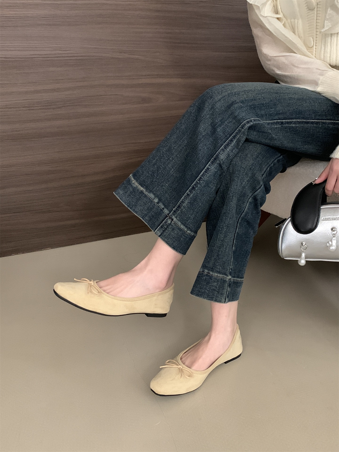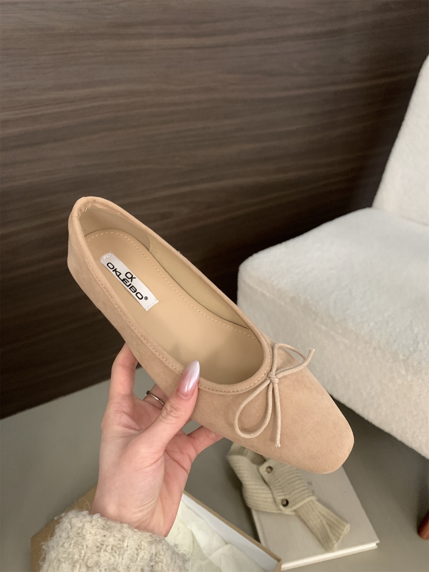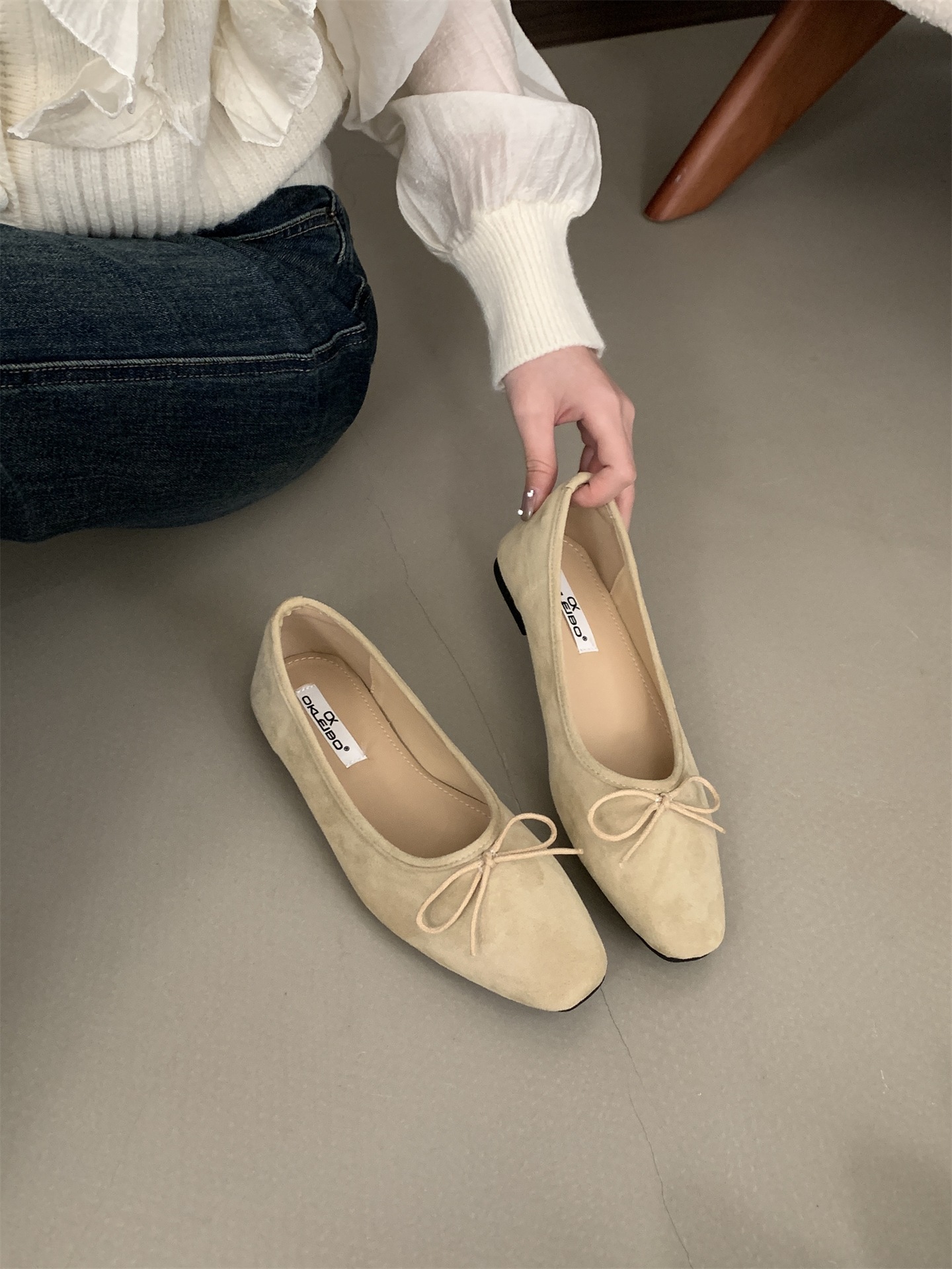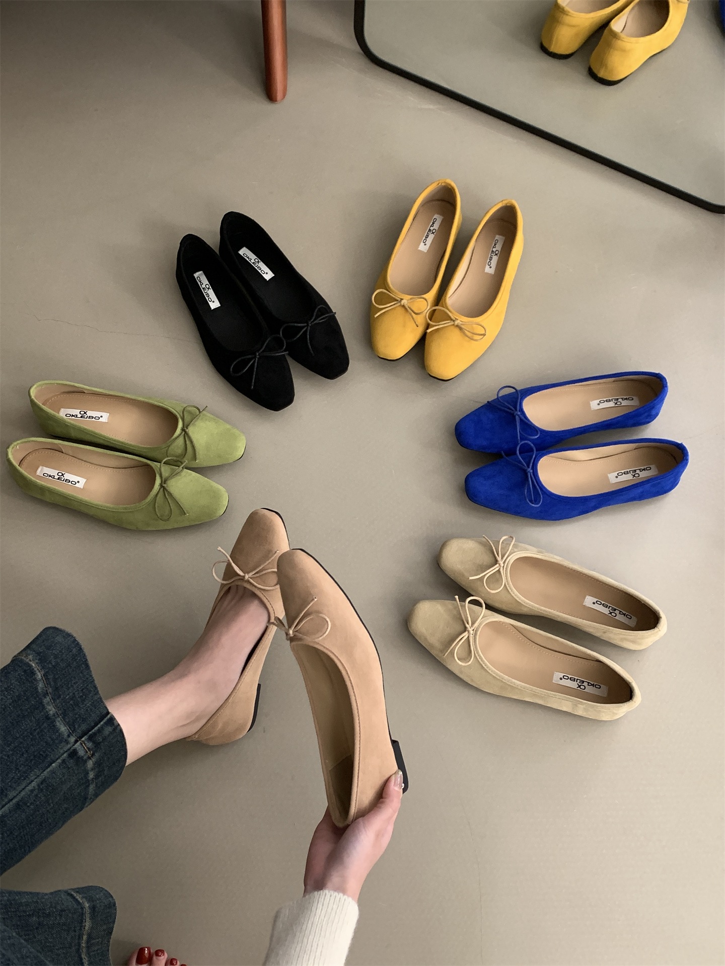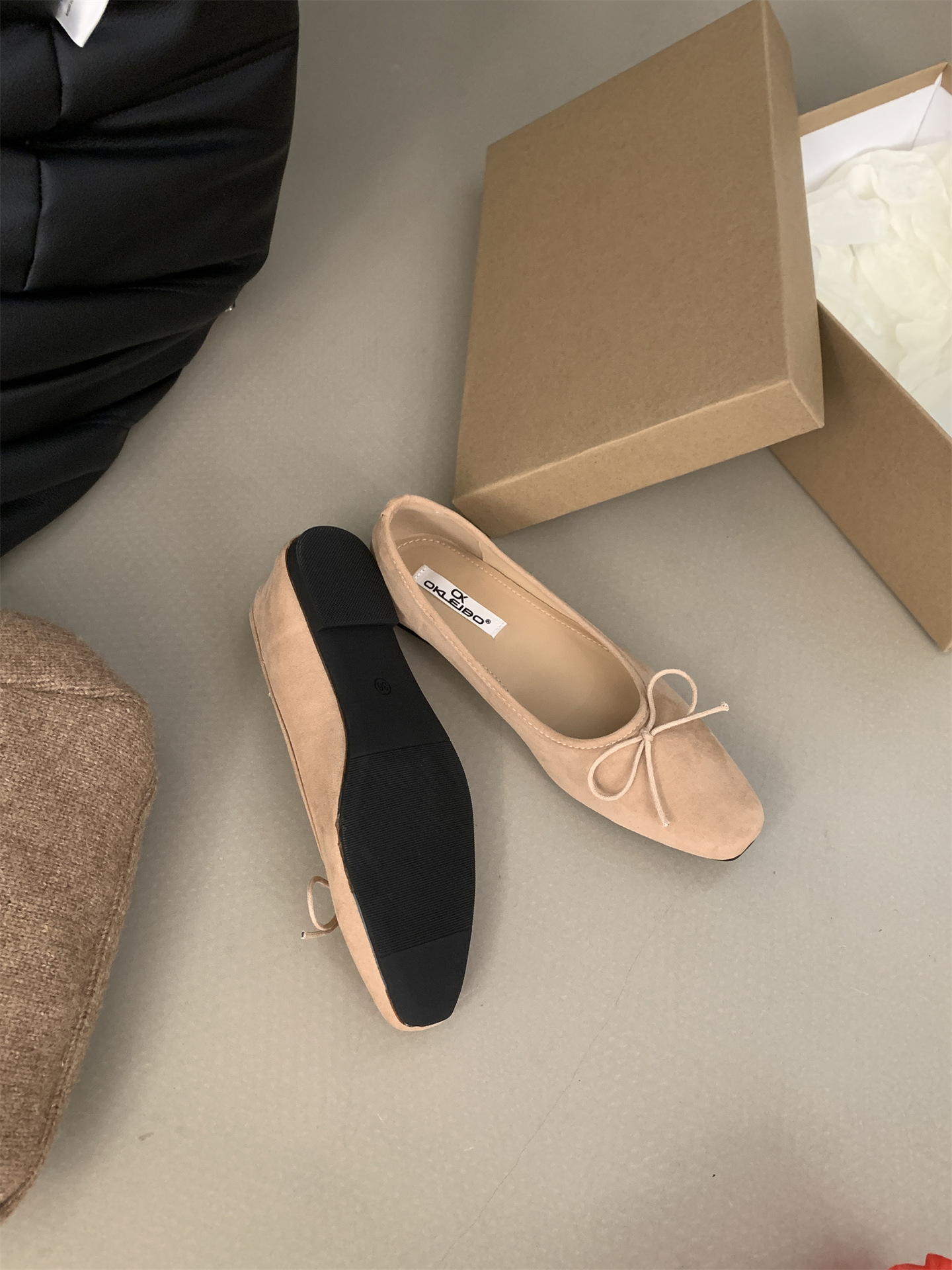 페어리 스타일 활 얕은 입 싱글 신발 플랫 메리 제인 신발 봄 2025 새로운 부드러운 완두콩 신발