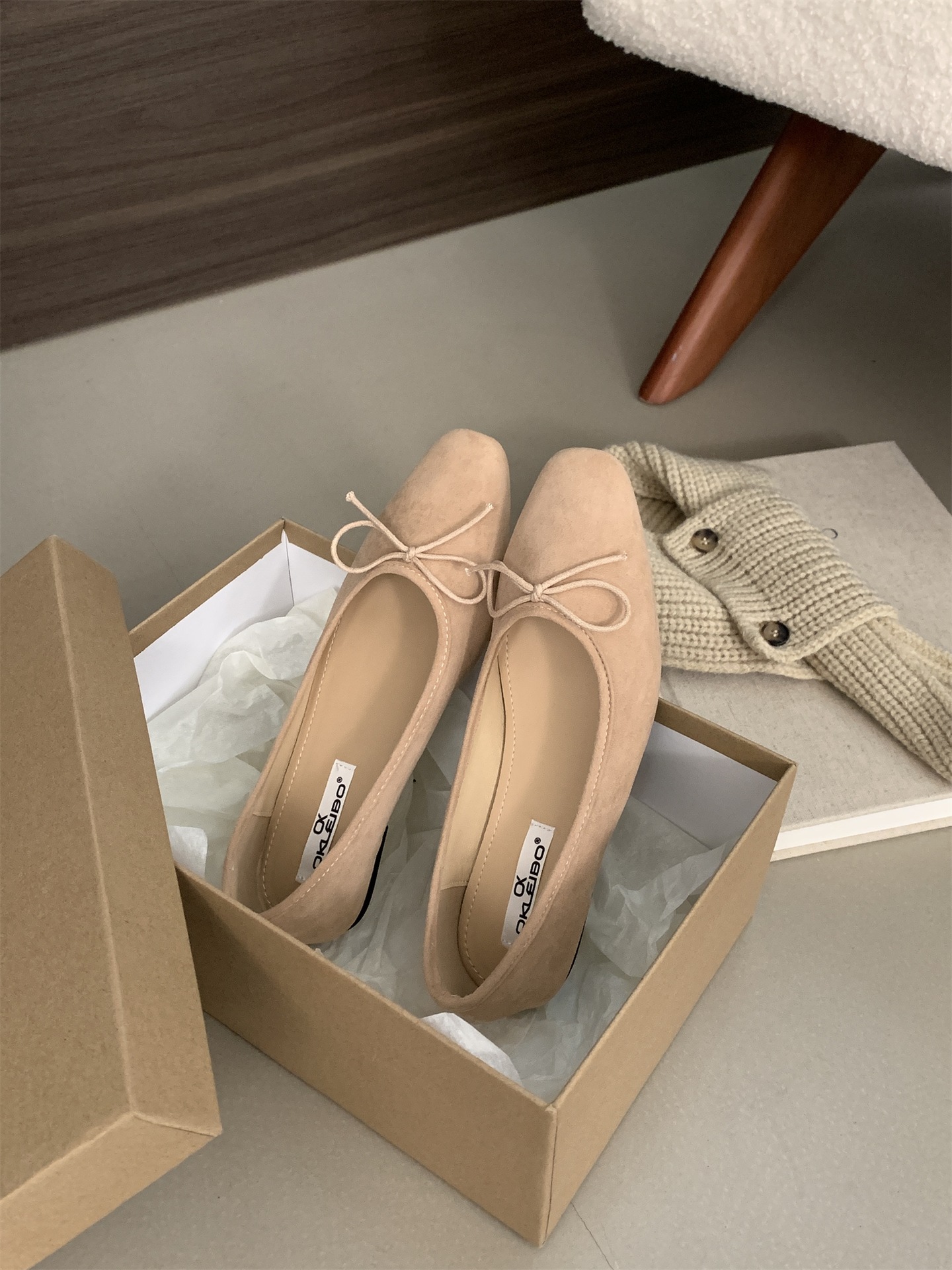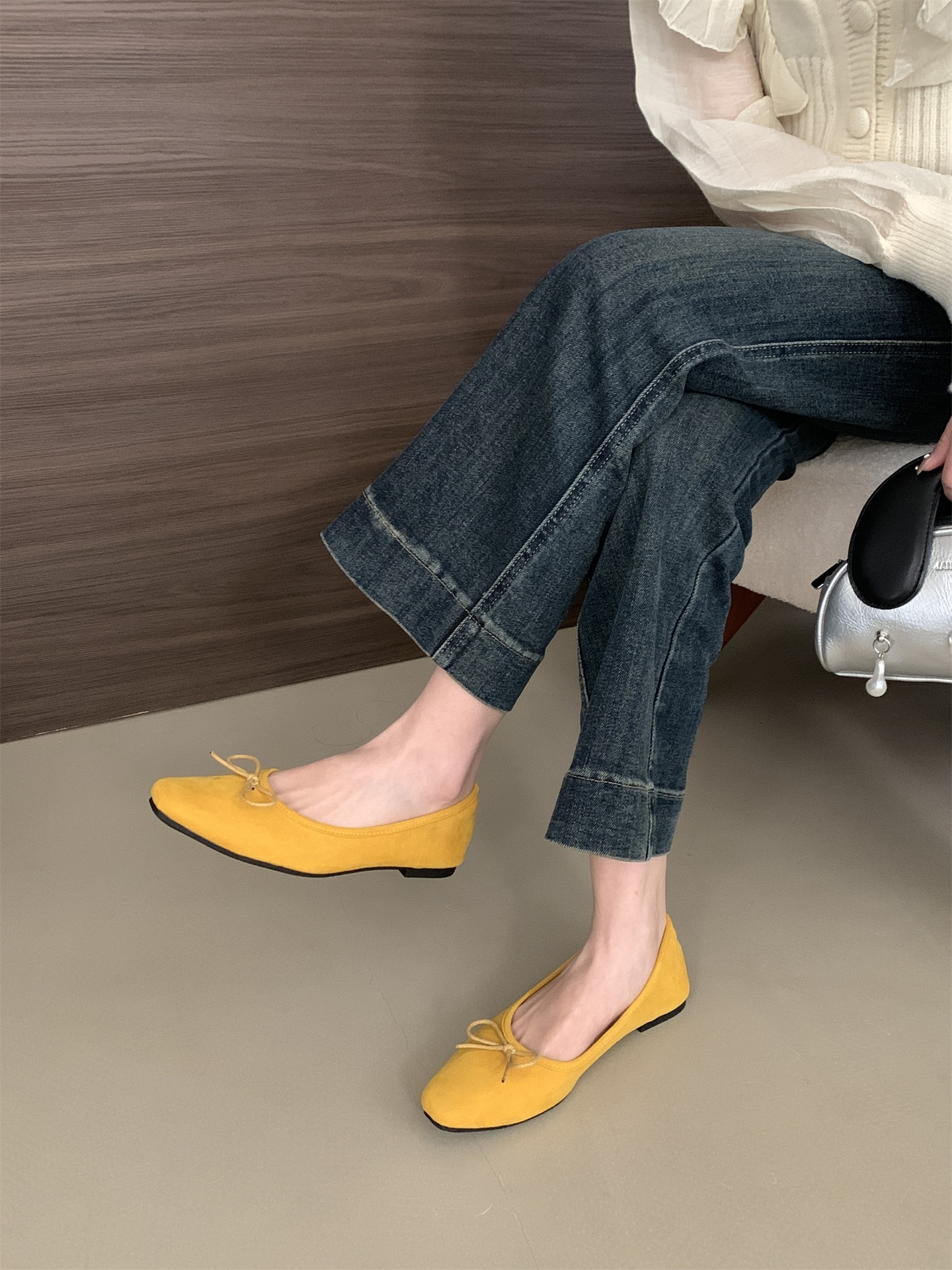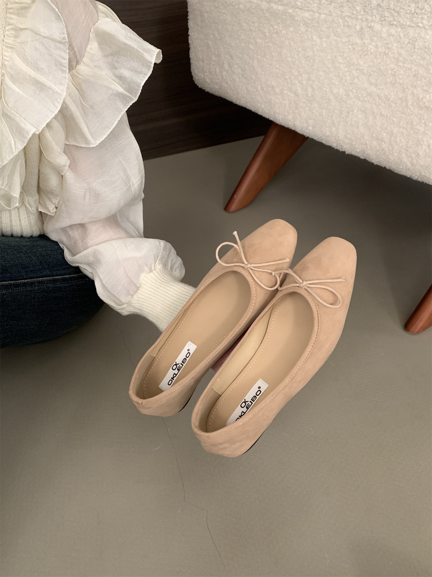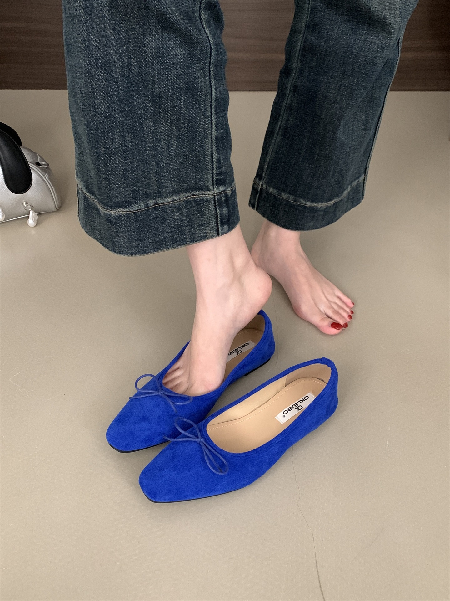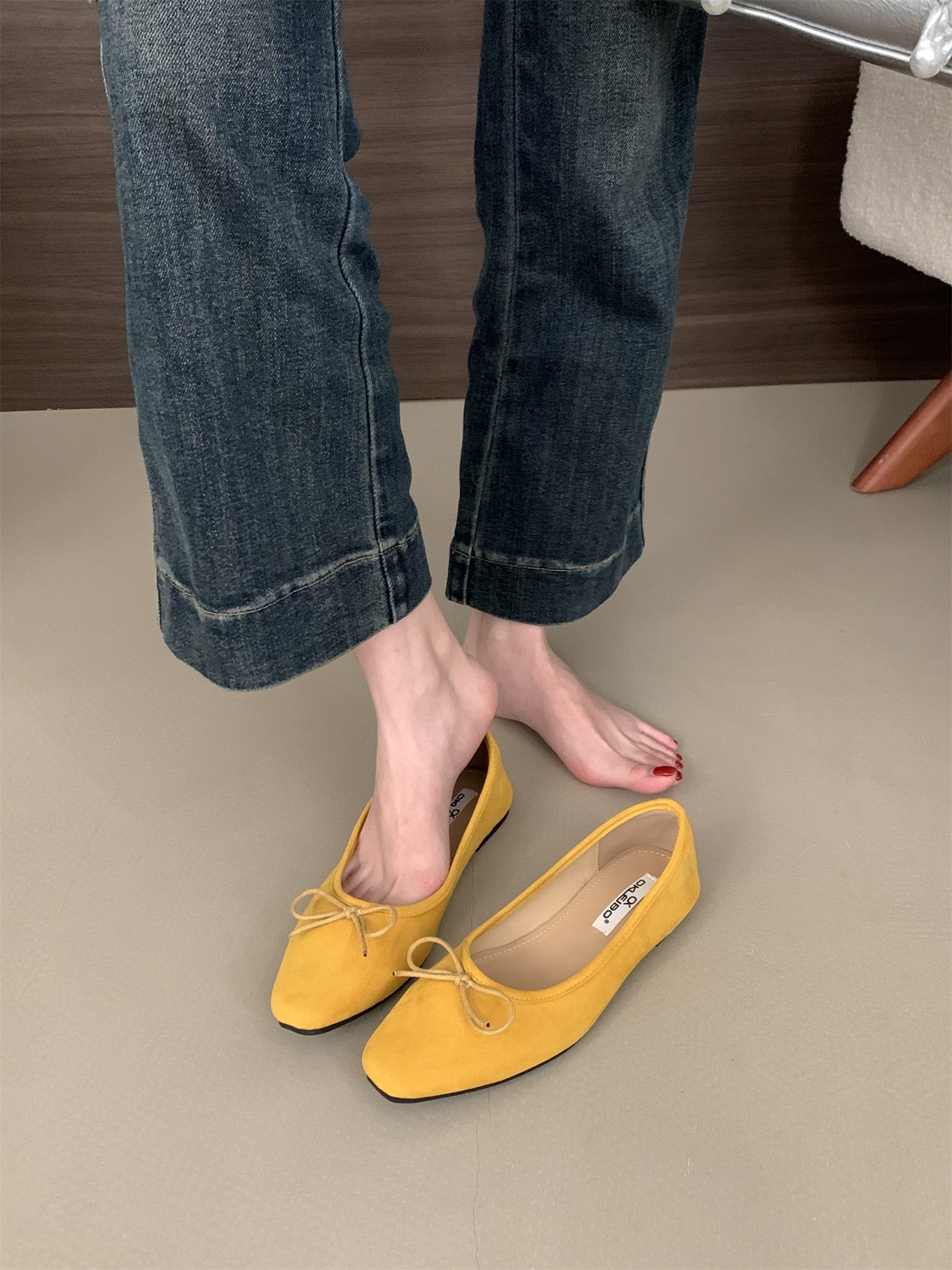 페어리 스타일 활 얕은 입 싱글 신발 플랫 메리 제인 신발 봄 2025 새로운 부드러운 완두콩 신발