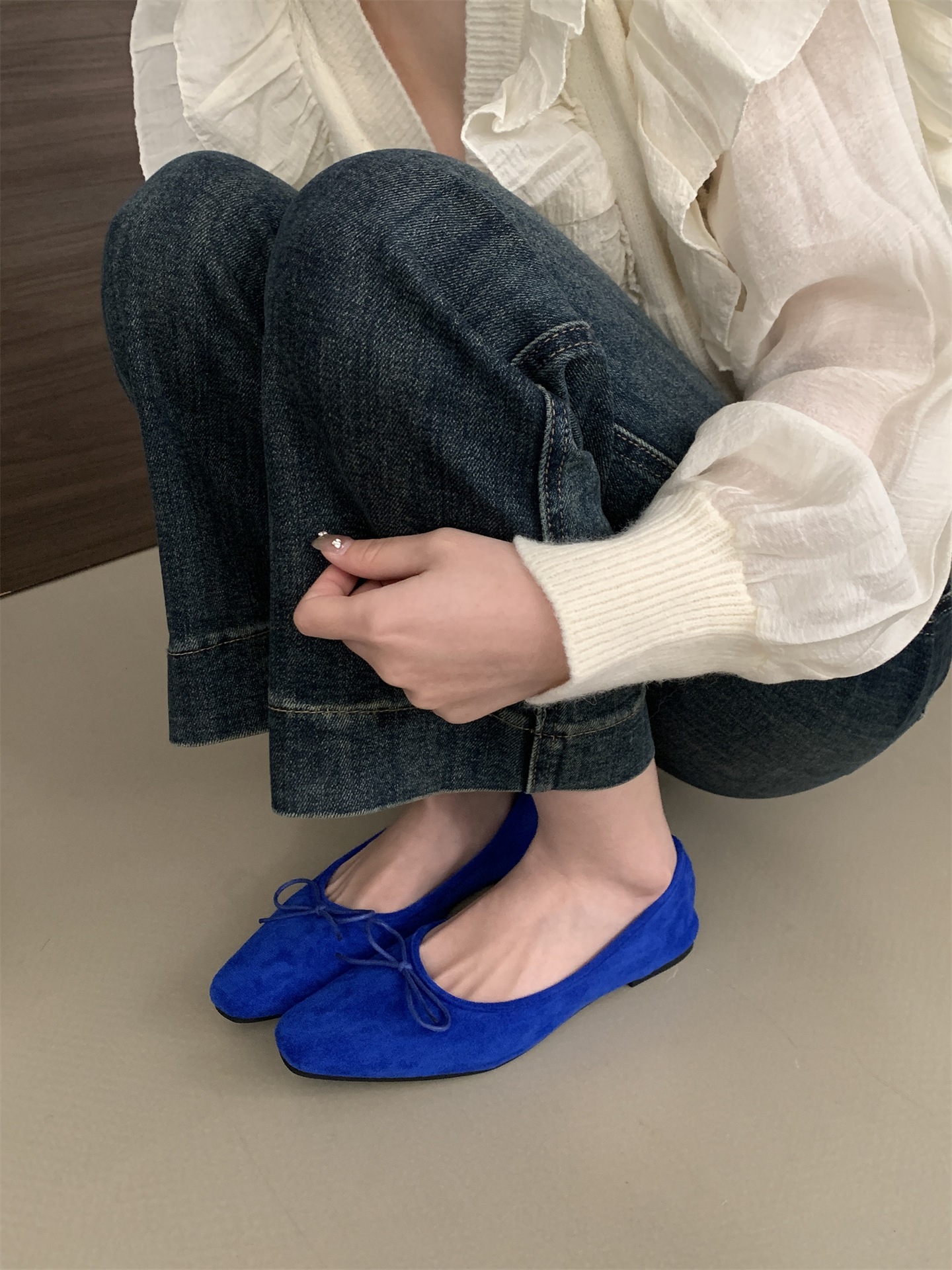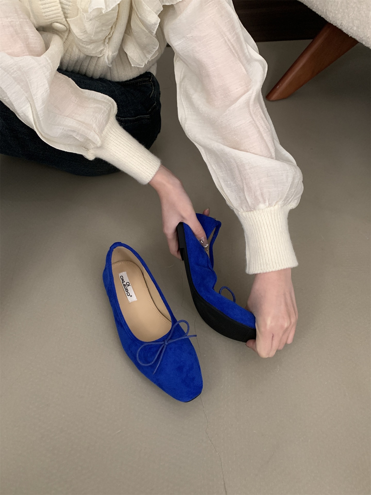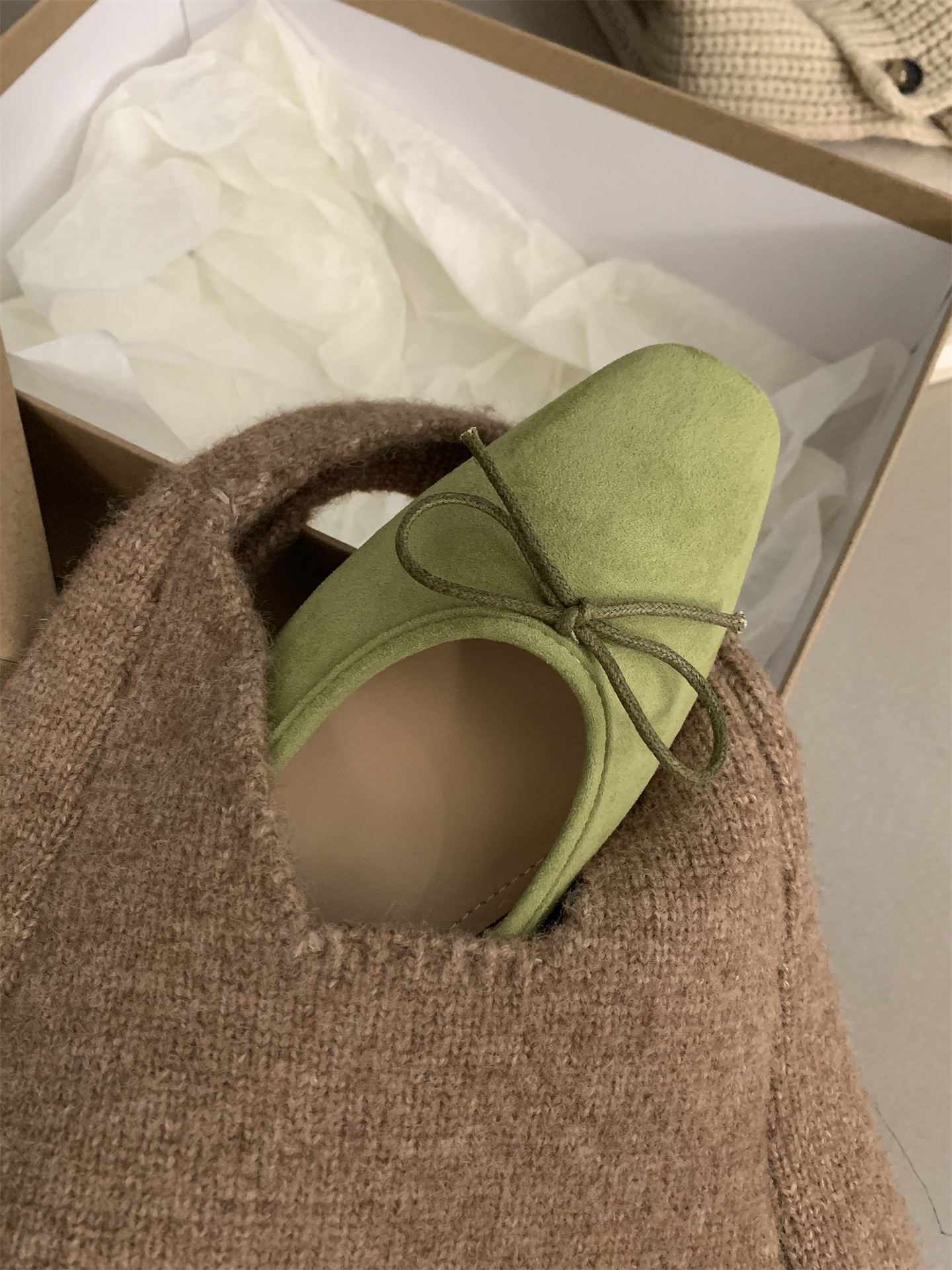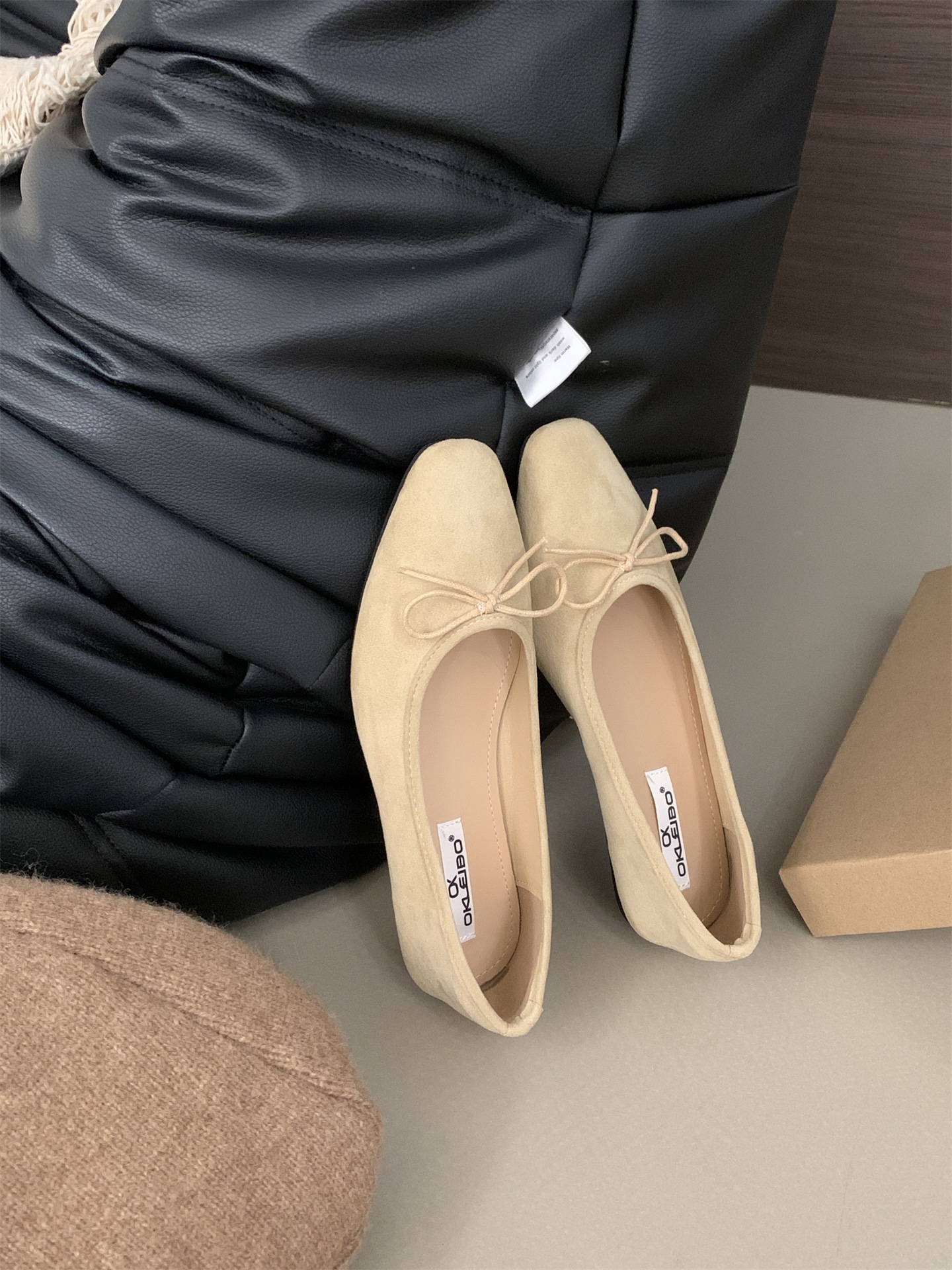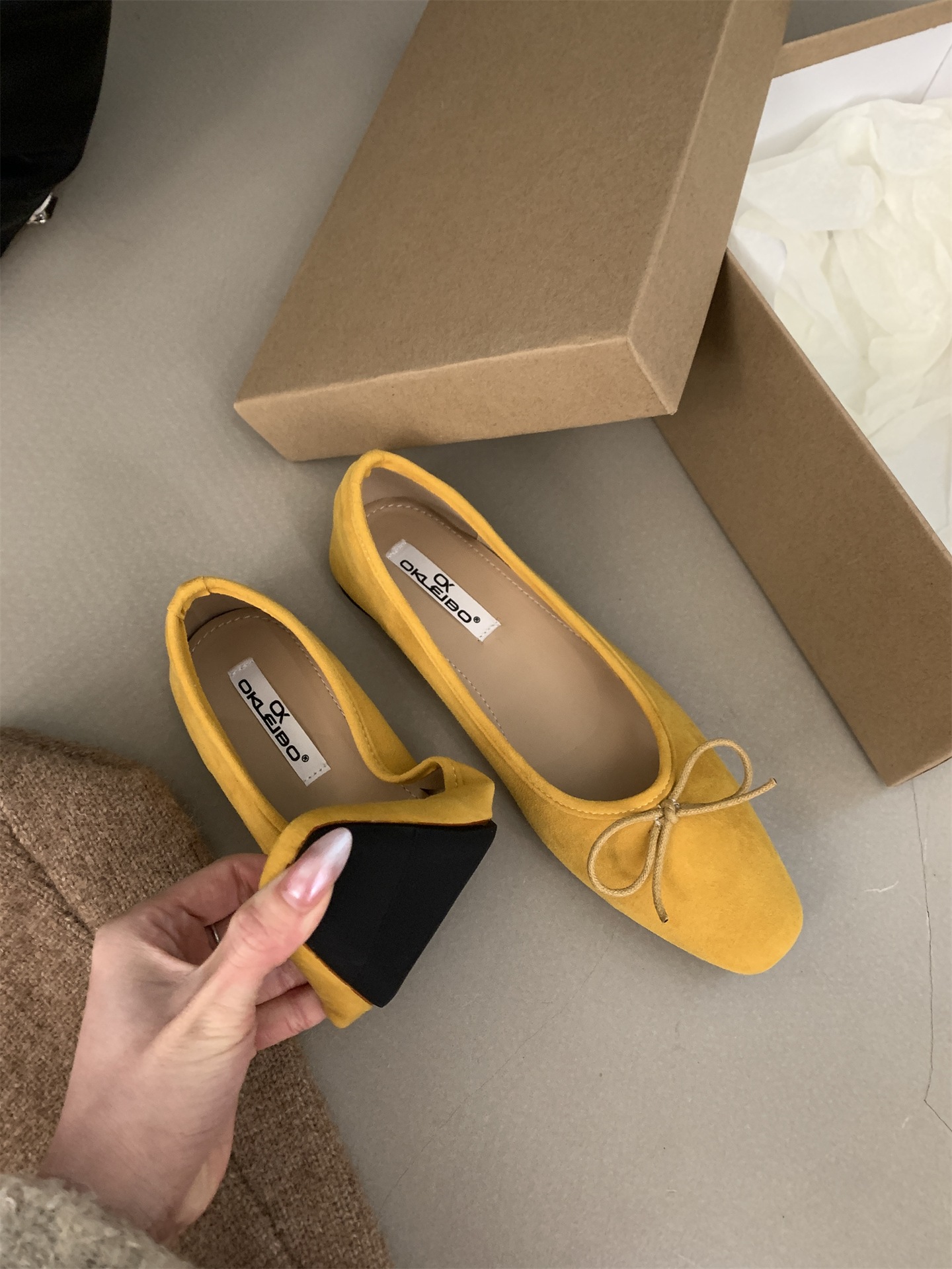 페어리 스타일 활 얕은 입 싱글 신발 플랫 메리 제인 신발 봄 2025 새로운 부드러운 완두콩 신발