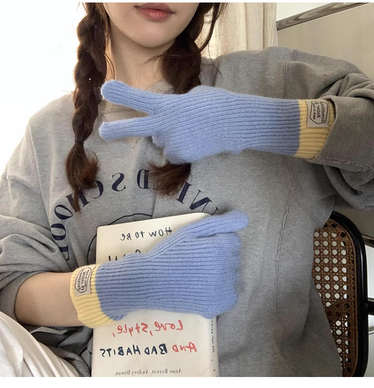 새로운 따뜻한 니트 장갑 여성 스플릿 핑거 사이클링 플립 온 터치 스크린 한국식 감추위 긴 겨울 울 장갑