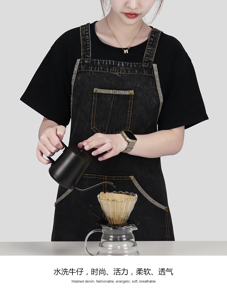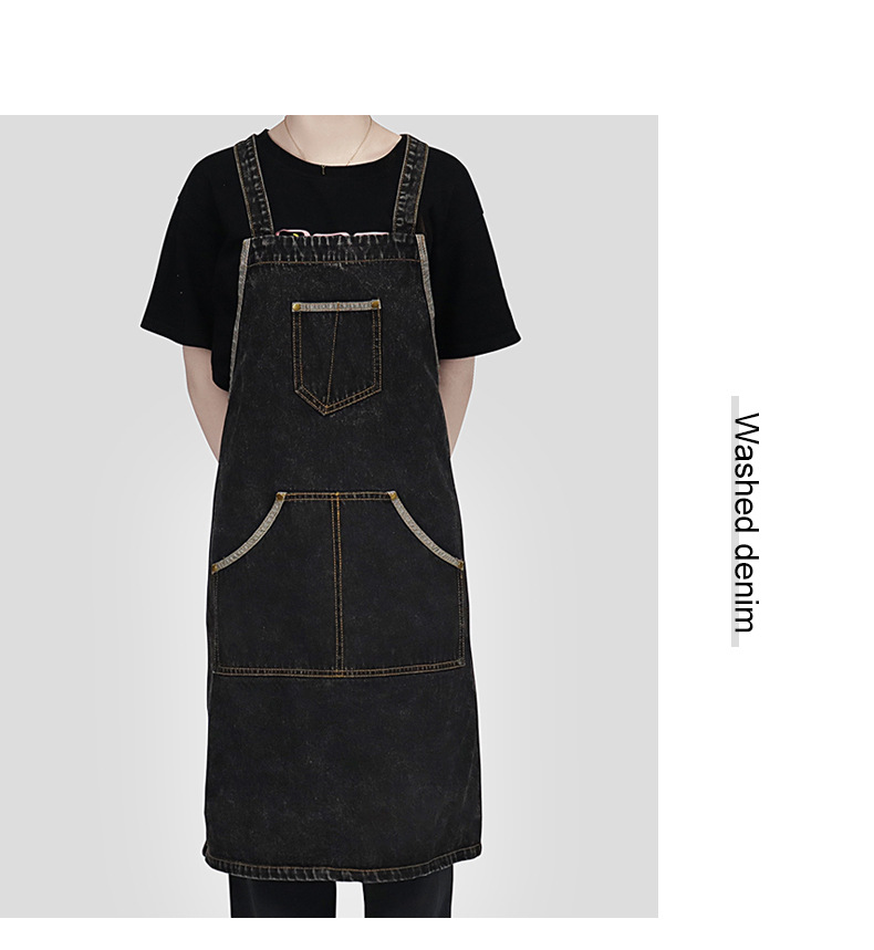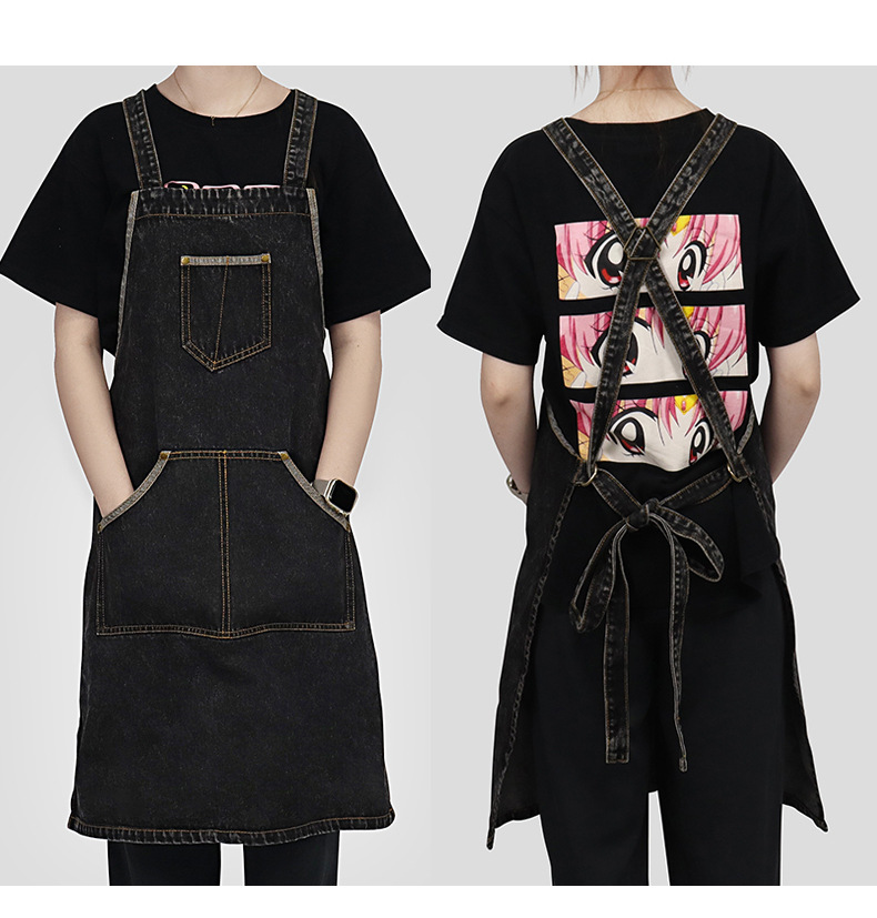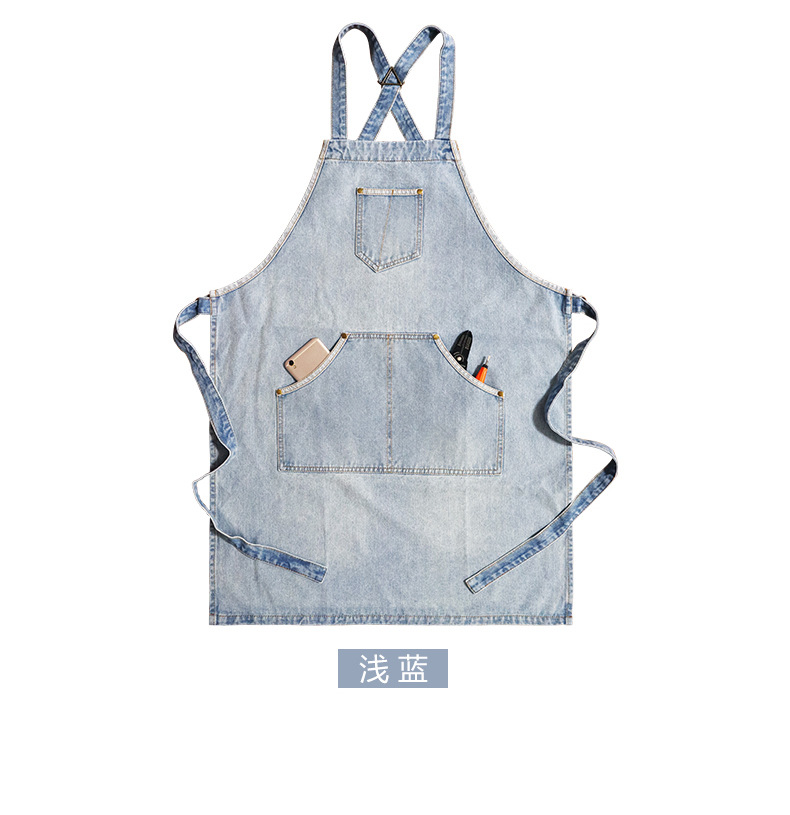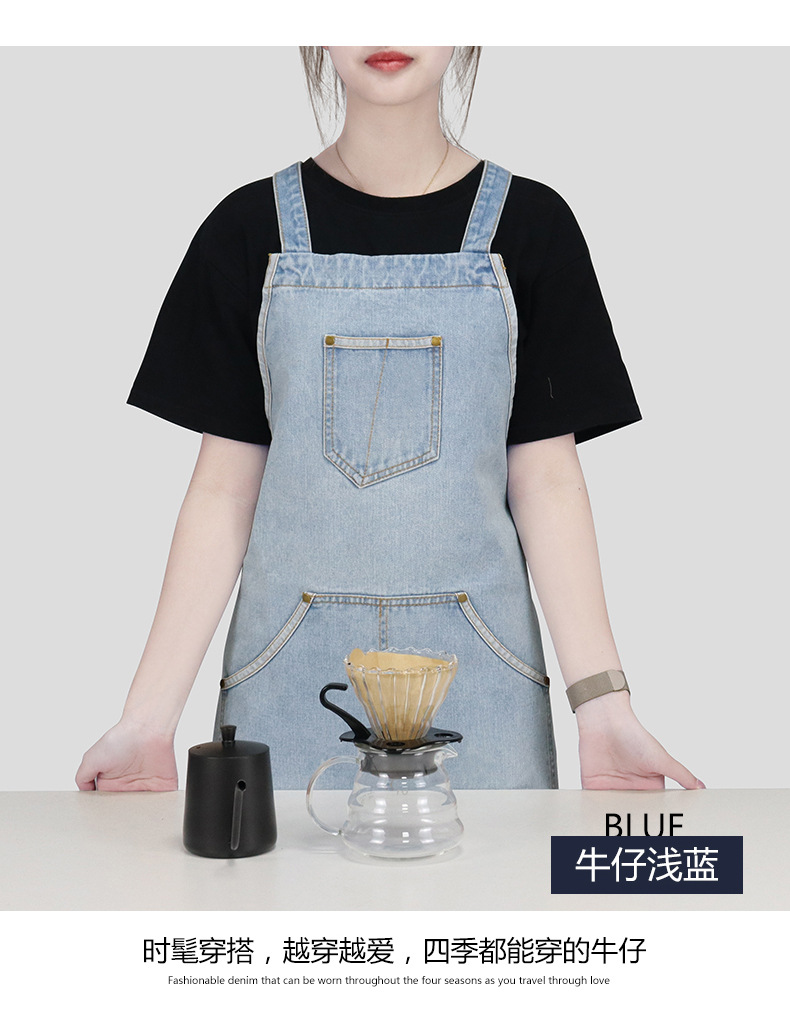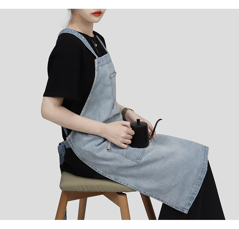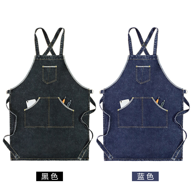 대외 무역 국경 세척 물 데님 앞치마 미용 카페 우유 차 가게 베이킹 남녀 작업복 로고 인쇄