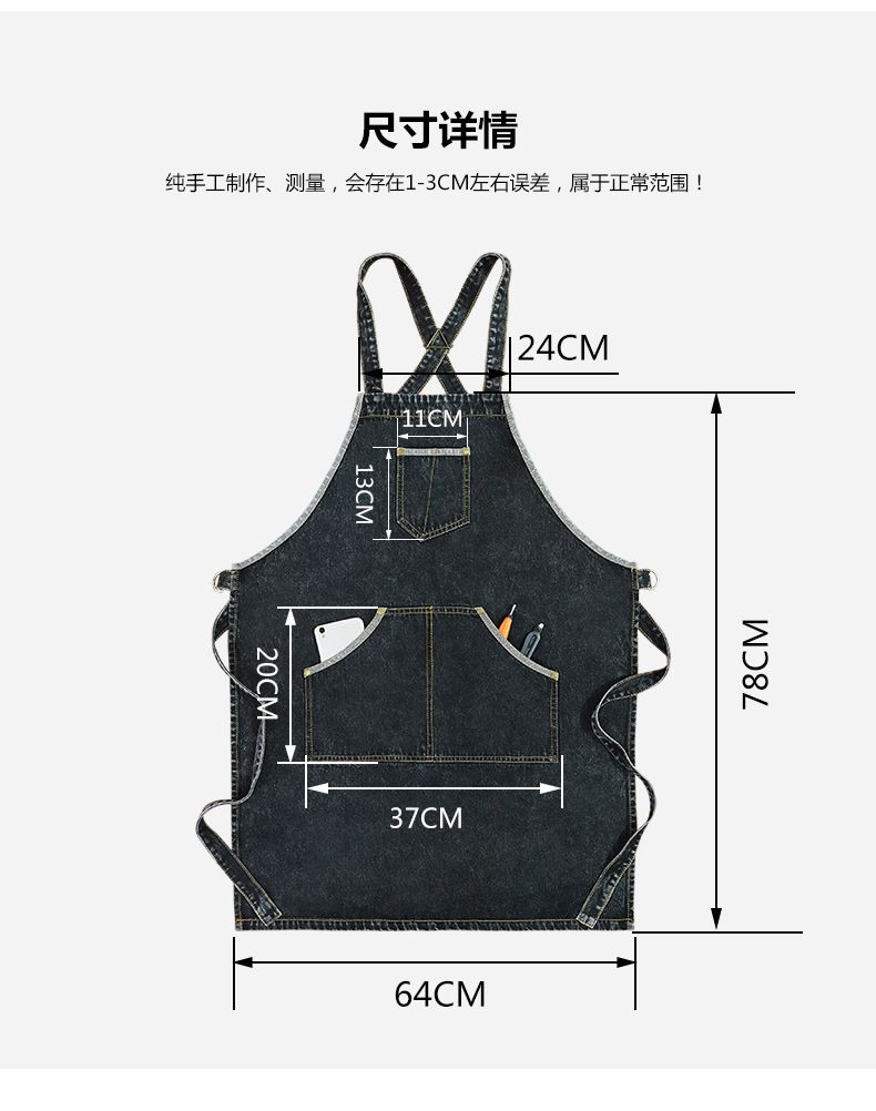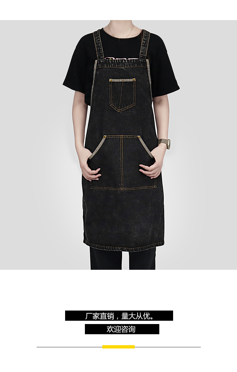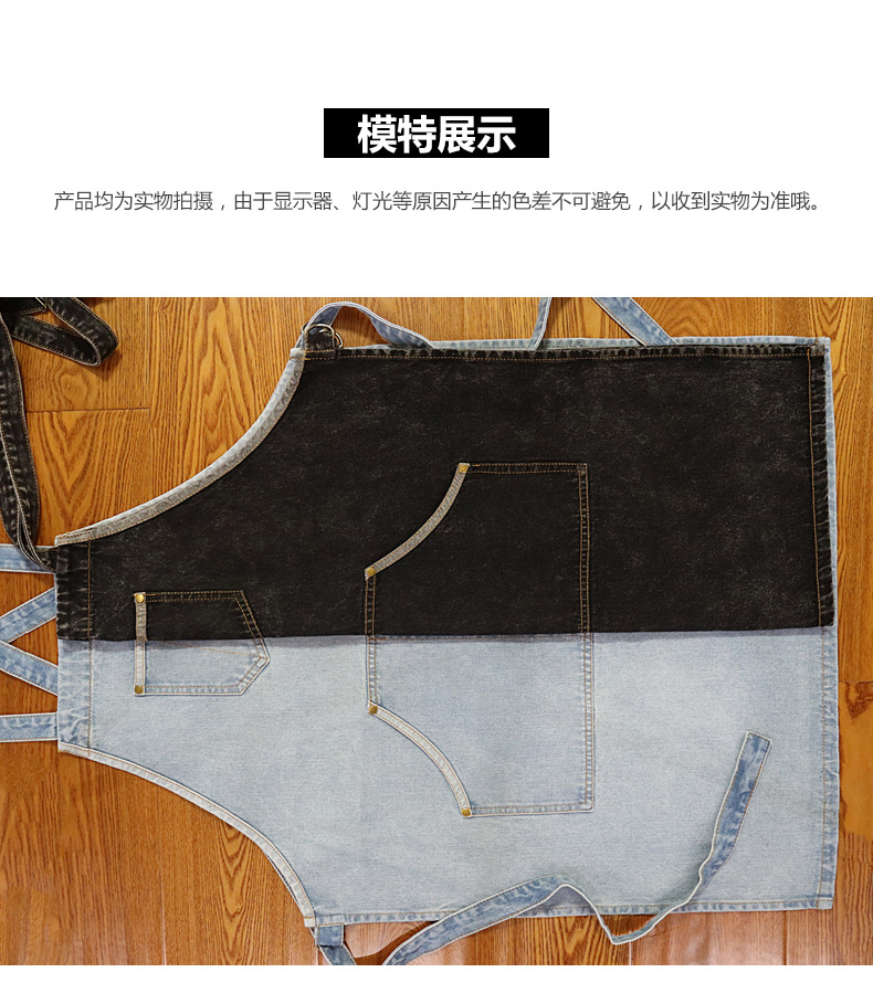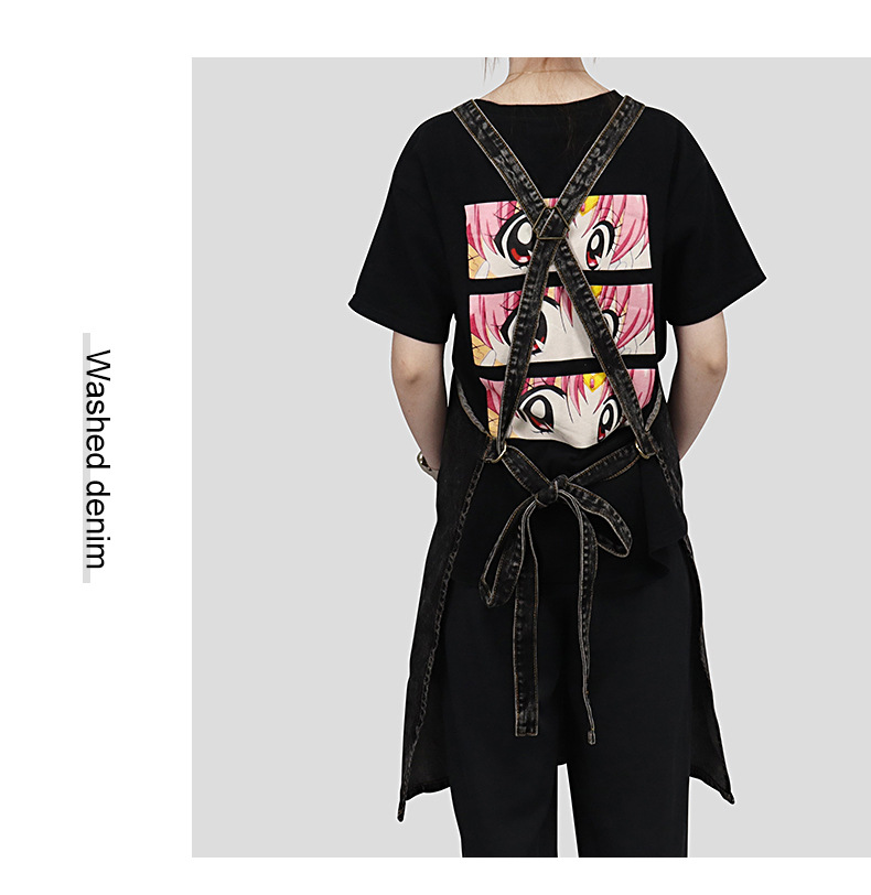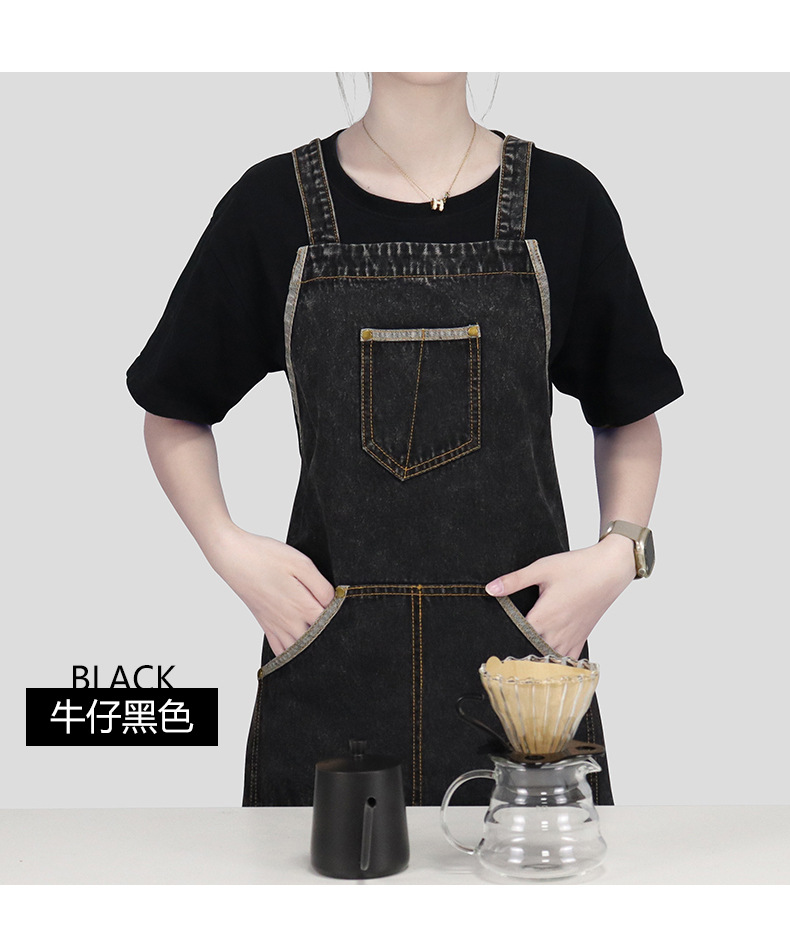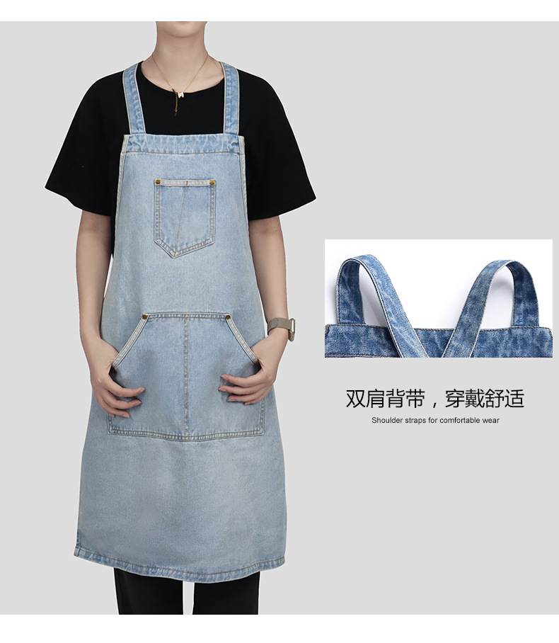 대외 무역 국경 세척 물 데님 앞치마 미용 카페 우유 차 가게 베이킹 남녀 작업복 로고 인쇄