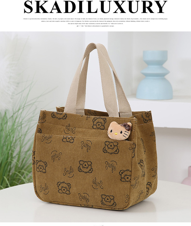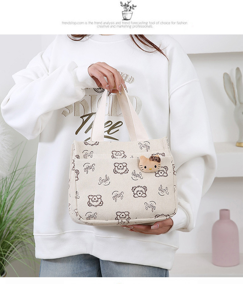 새로운 여성 가방 인쇄 휴대용 토트 백 만화 KT 고양이 핸드백 캔버스 백팩 사무실 직원을위한 격리 된 점심 가방