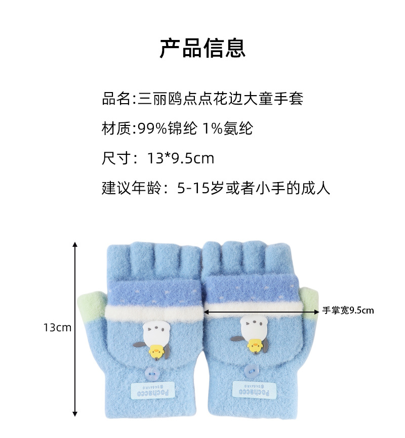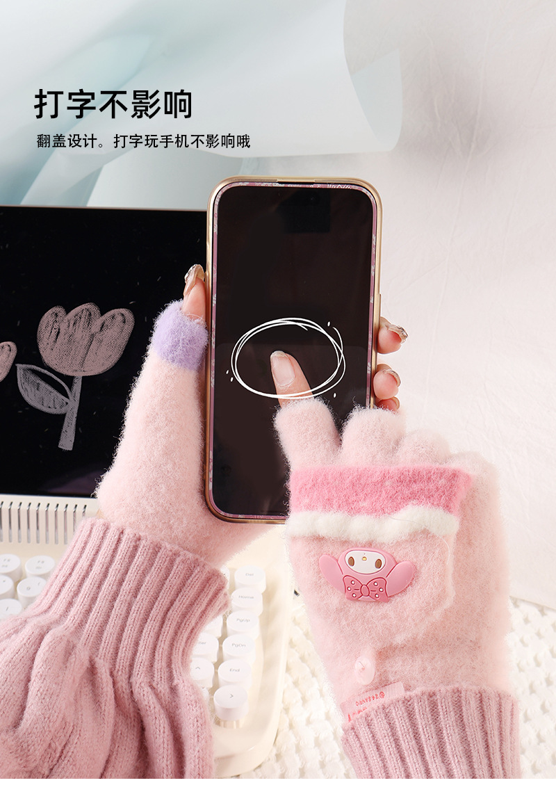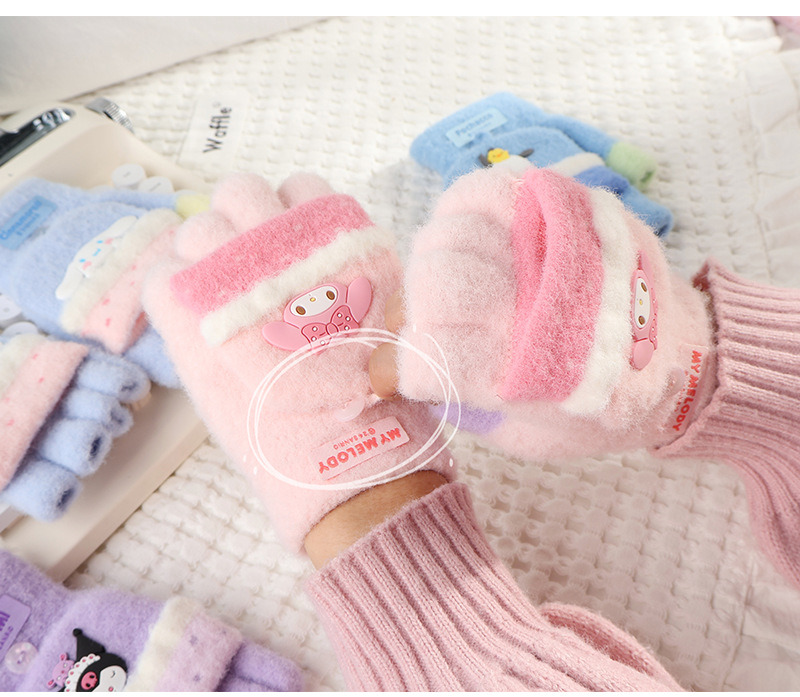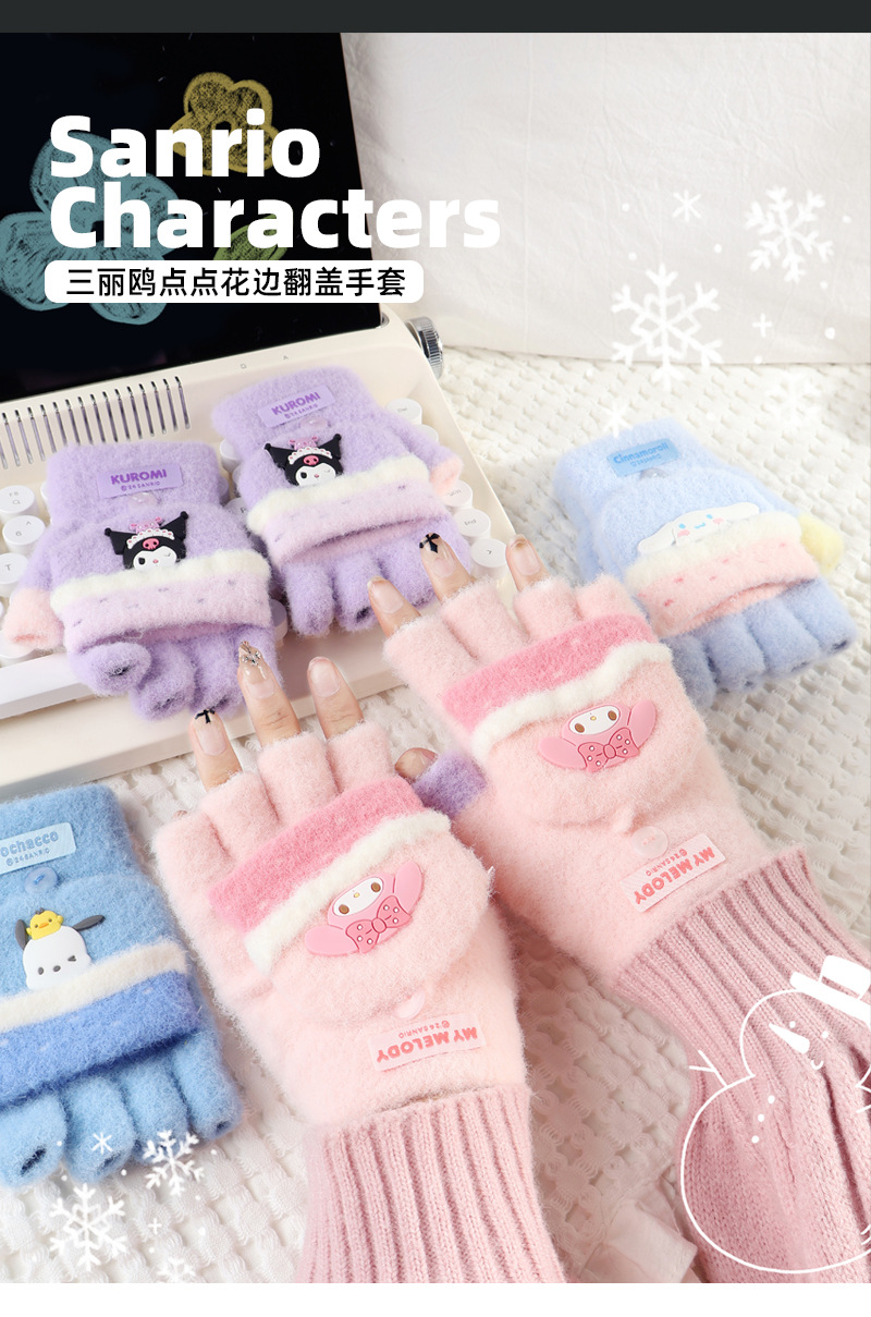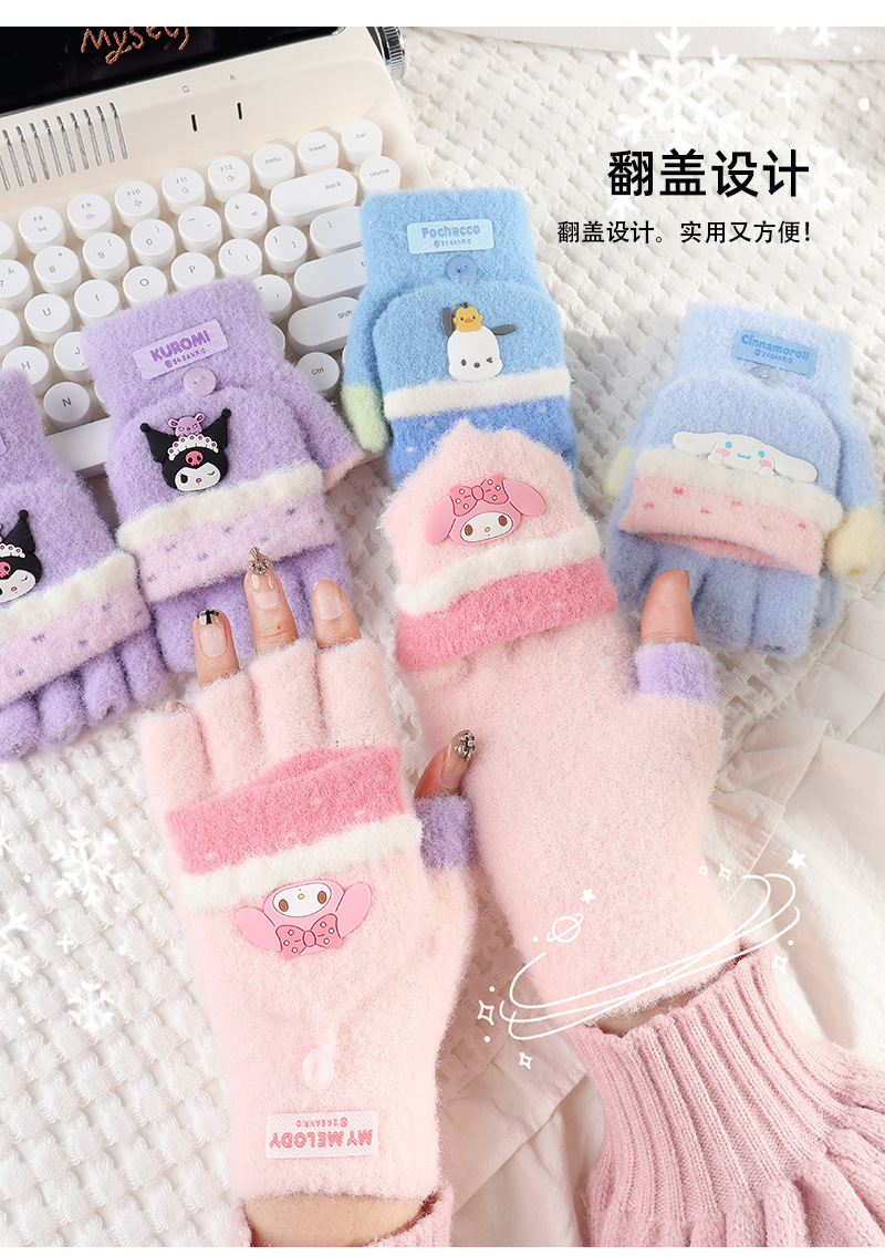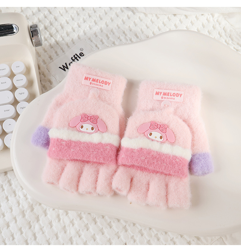 산리오 정품 귀여운 만화 큰 어린이 플립 커버 장갑 가을과 겨울 따뜻한 어린이 방추형 봉제 Merlot스토어 가기