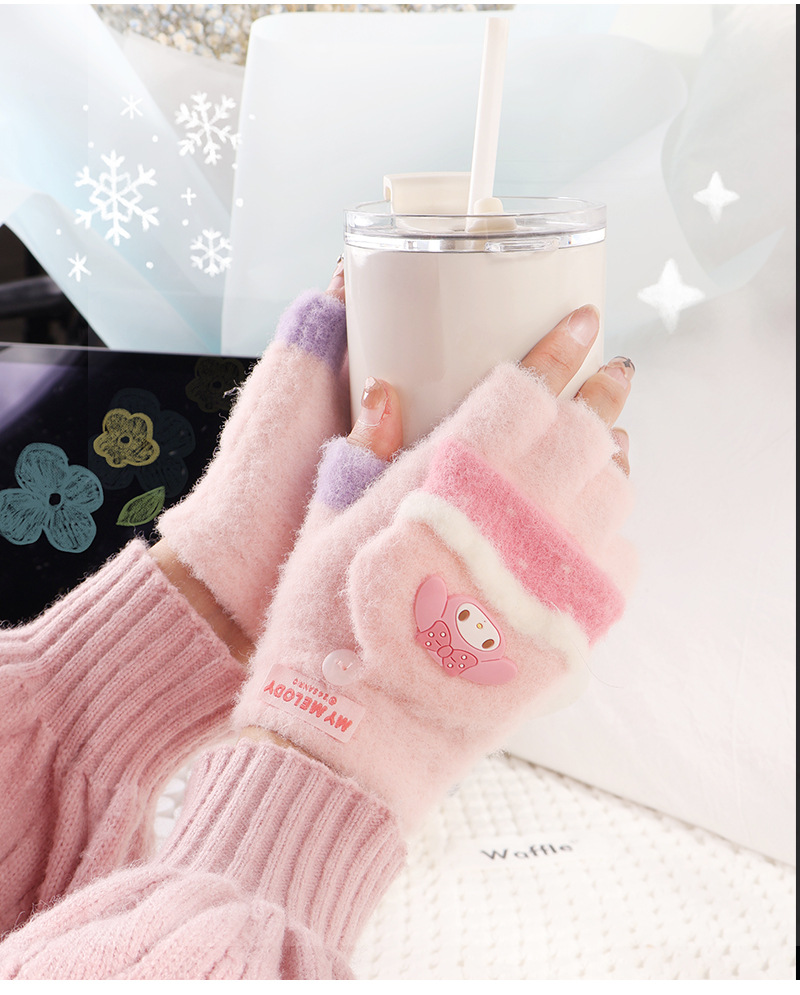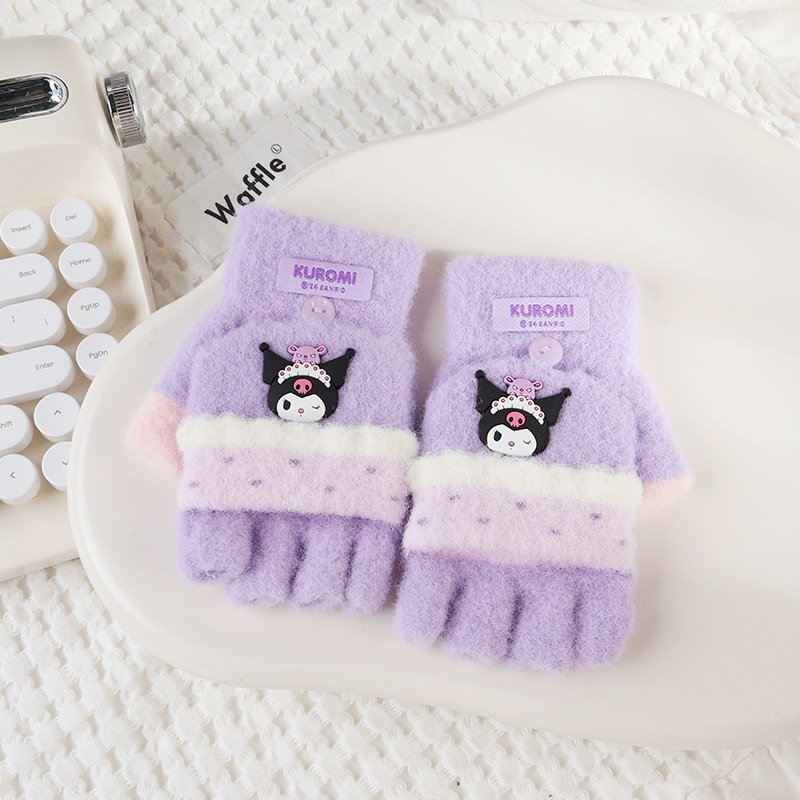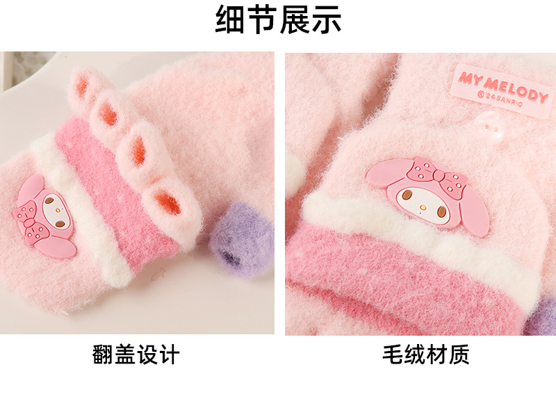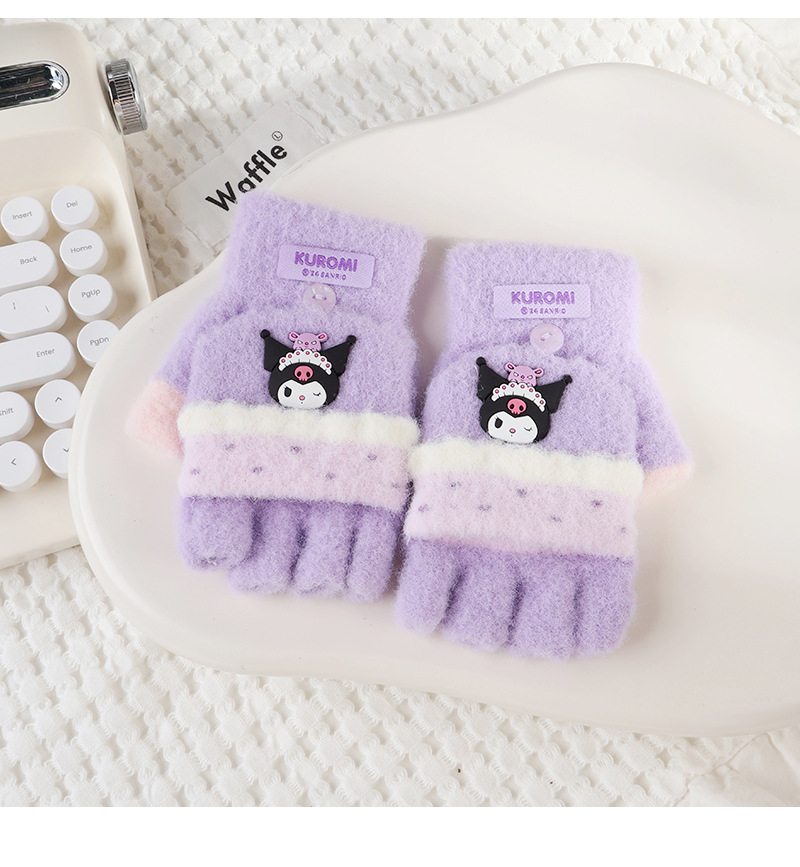 산리오 정품 귀여운 만화 큰 어린이 플립 커버 장갑 가을과 겨울 따뜻한 어린이 방추형 봉제 Merlot