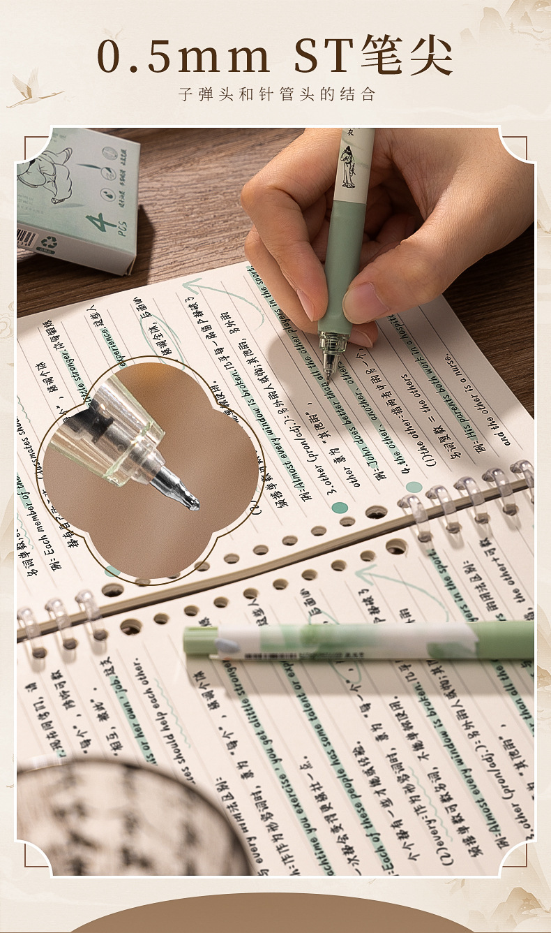 ins 일본식 프레스 젤 펜 속건성 소프트 그립 부드러운 브러시 펜 중학생용 검정색 펜 서명 펜 고가치 B
