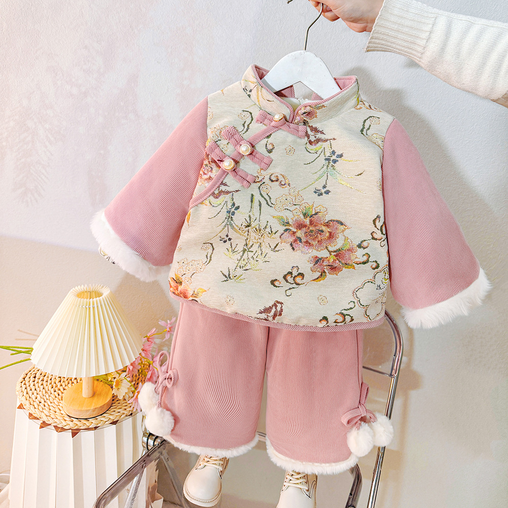 라이브 공급 소녀 구정 의류 탕 세트 아기 소녀 겨울 기모 두꺼운 중국 의류 세트 대외 무역 도매스토어 가기