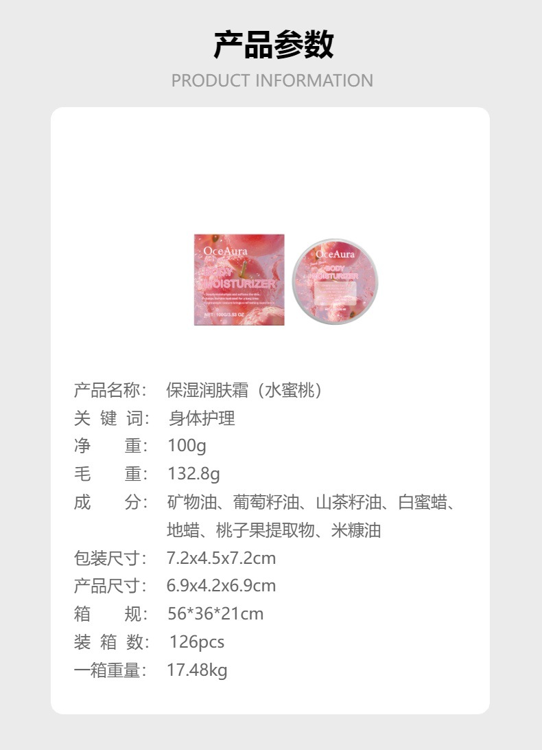 OCEAURA 복숭아 보습 크림 바디 보습 케어 수화 상쾌한 바디 크림