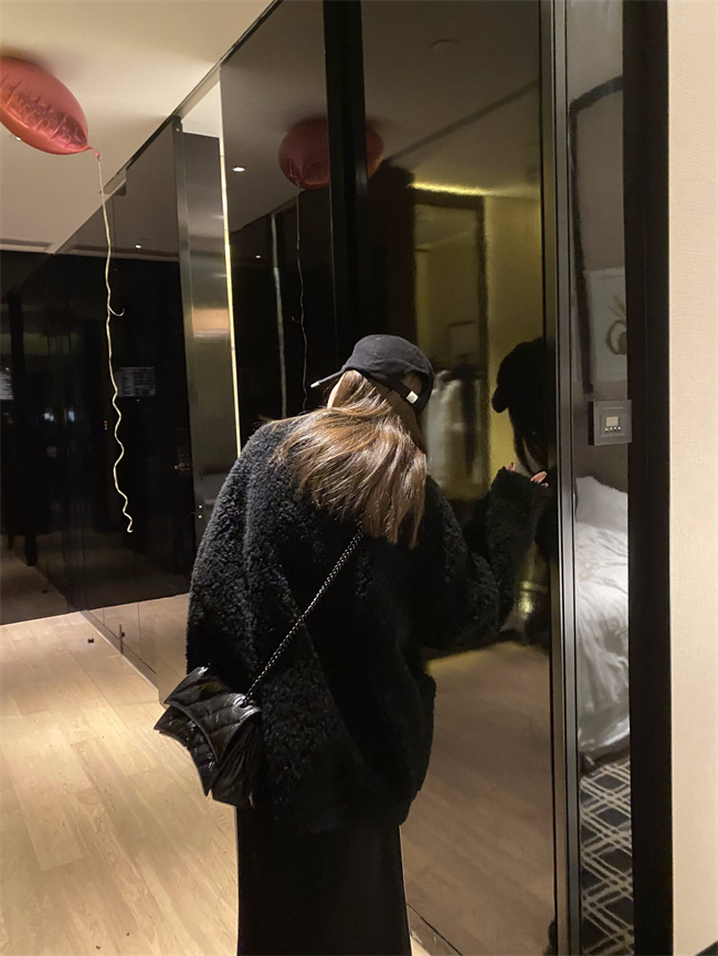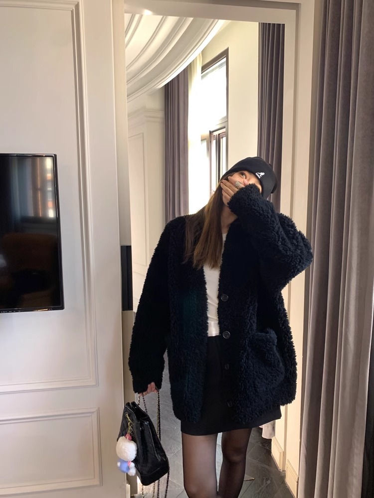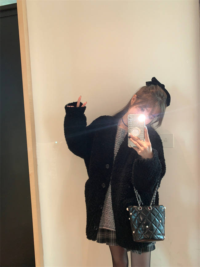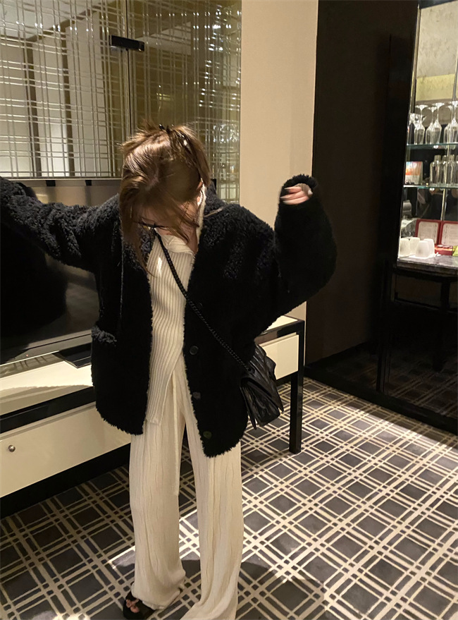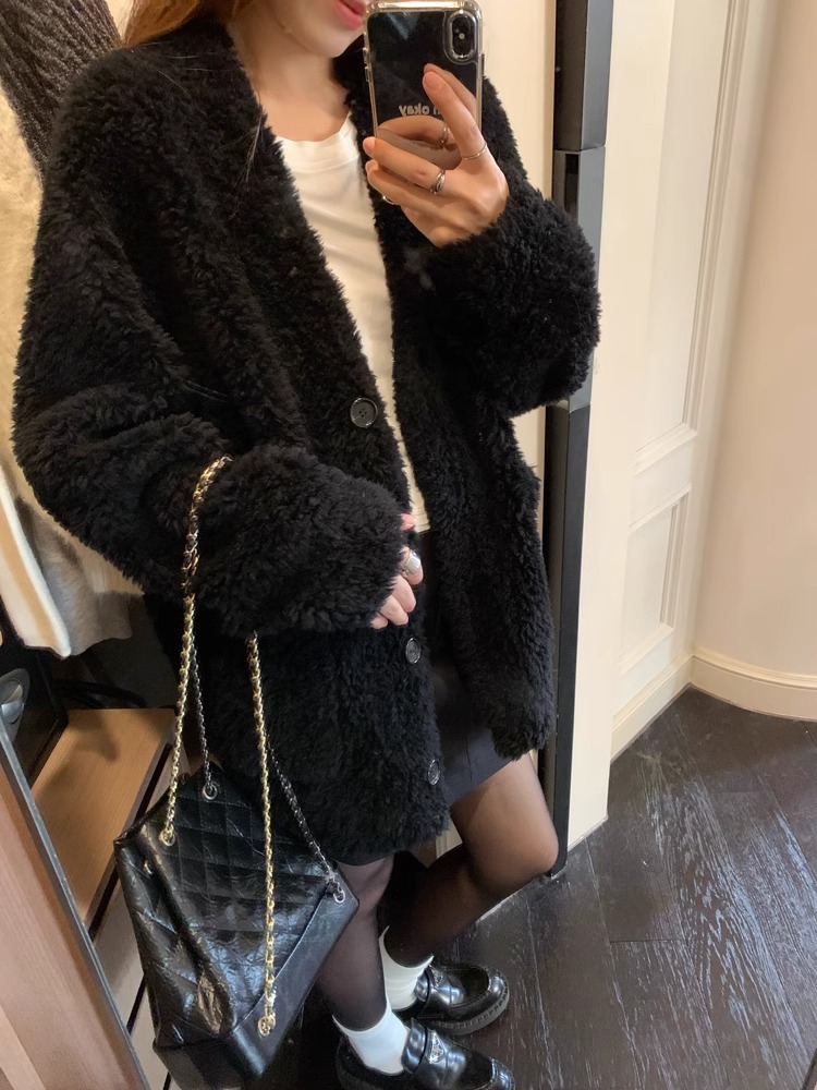 가을 겨울 여성용 퍼 브이넥 양털 코트, 양털과 가죽이 하나로 된 레이지 스타일 상의스토어 가기