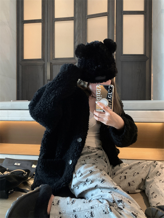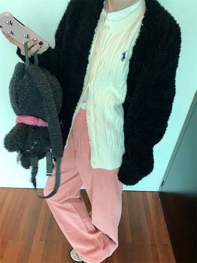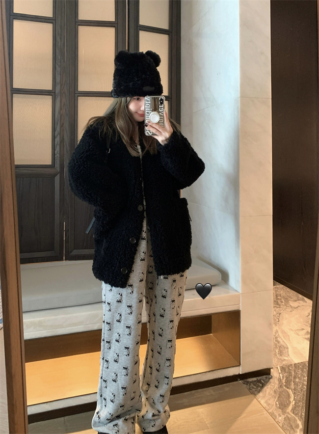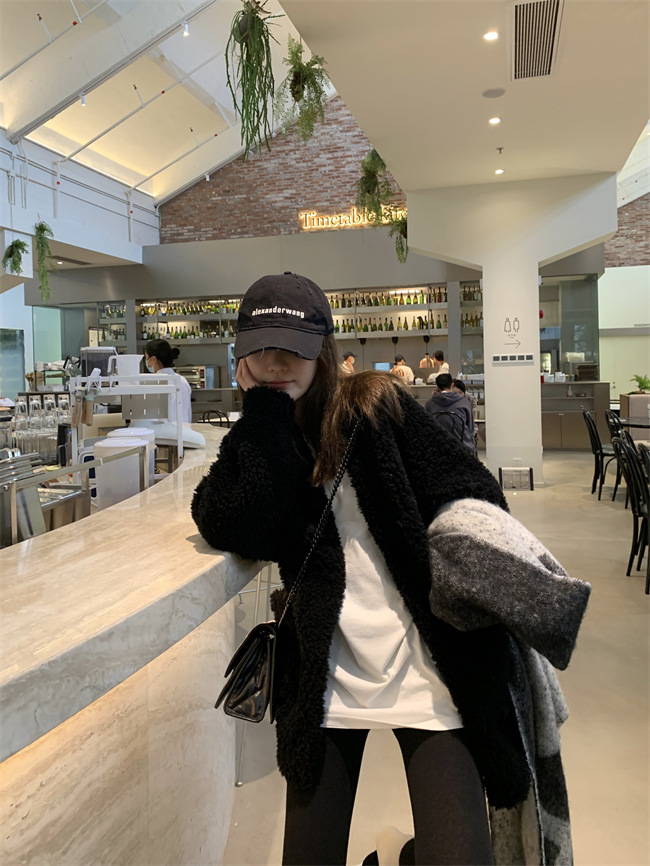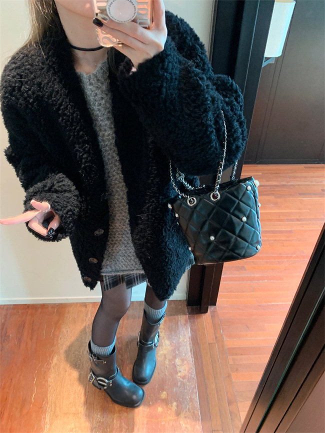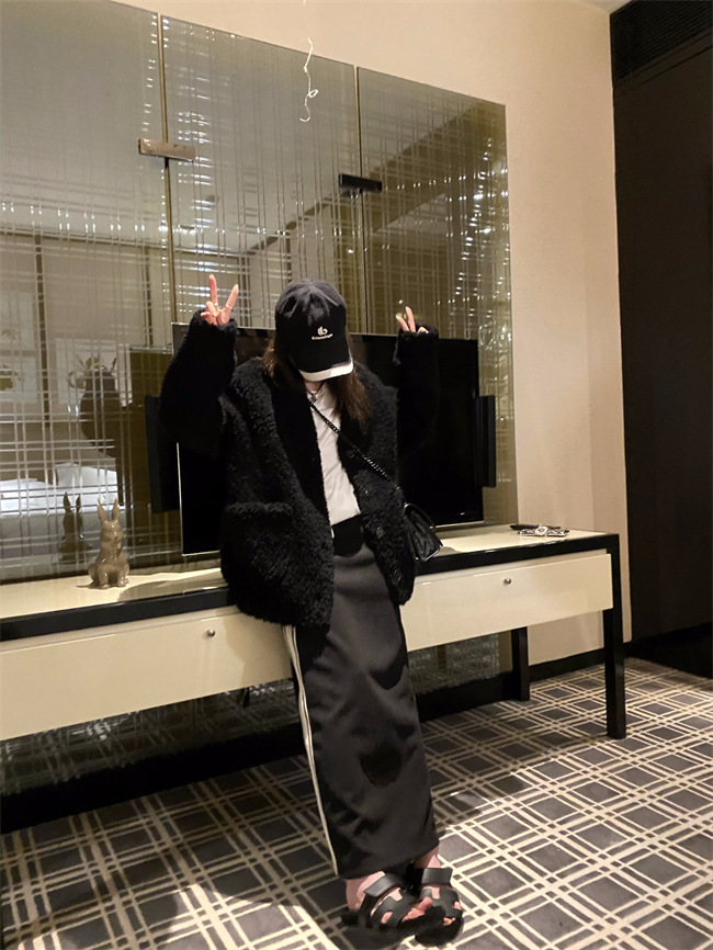 가을 겨울 여성용 퍼 브이넥 양털 코트, 양털과 가죽이 하나로 된 레이지 스타일 상의스토어 가기