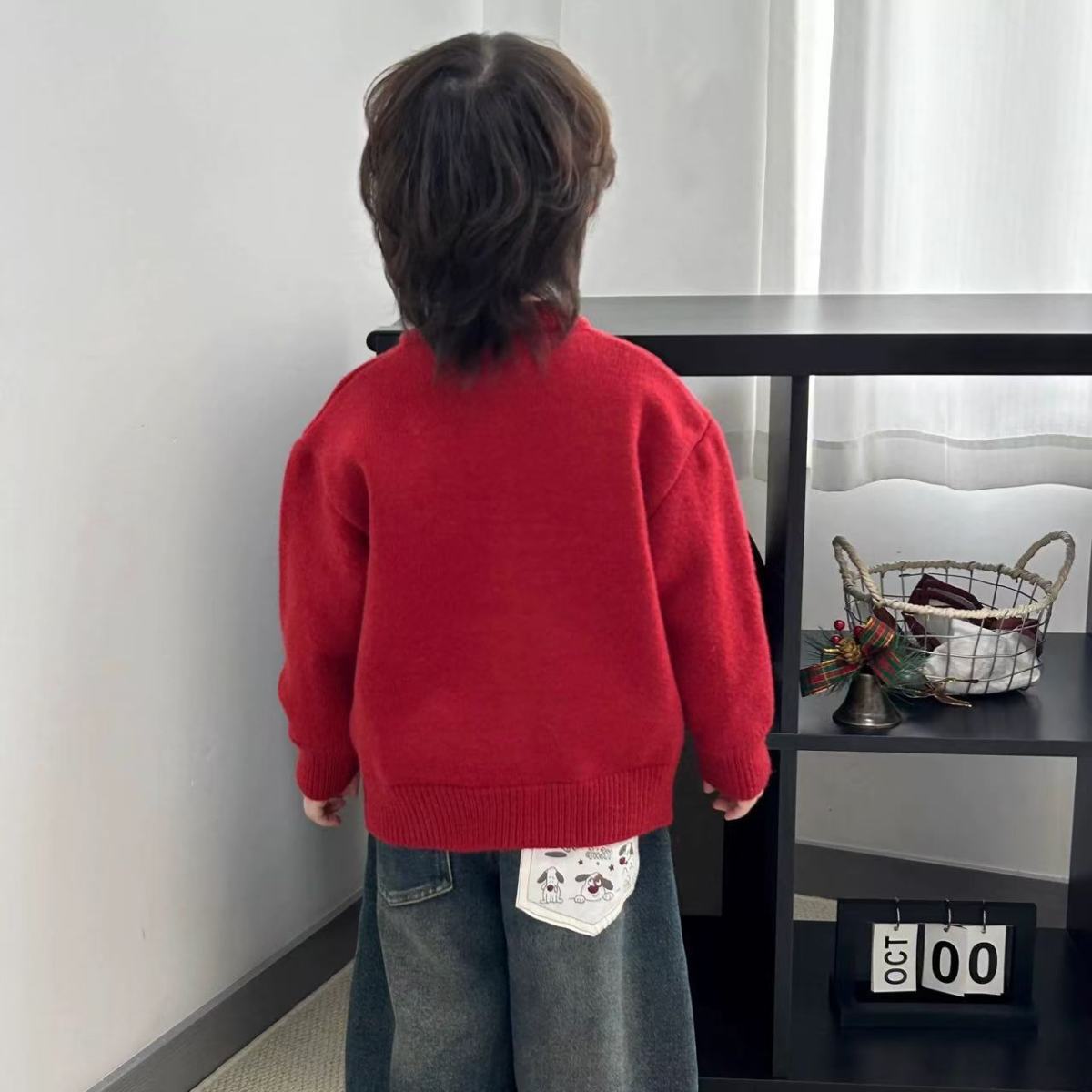 어린이 해 스웨터 2024 새로운 니트 카디건 자수 강아지 축제 최고 소년의 겨울 신년 옷스토어 가기