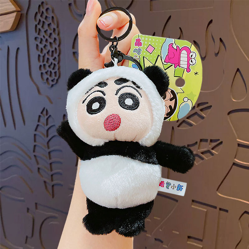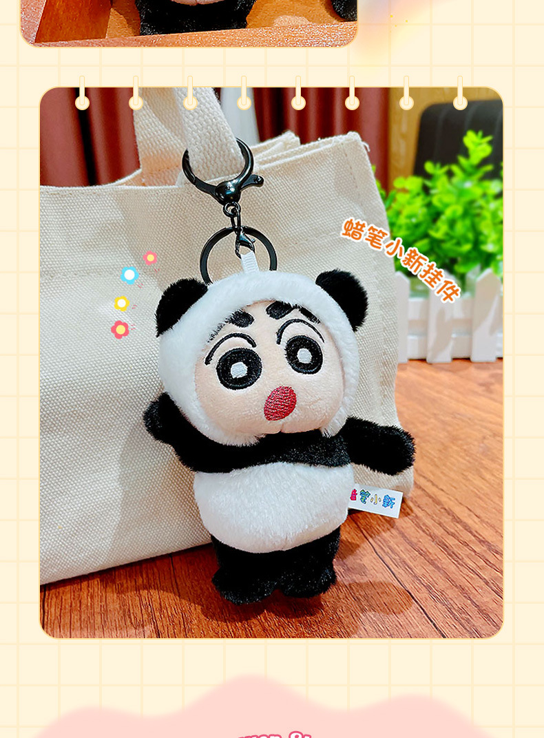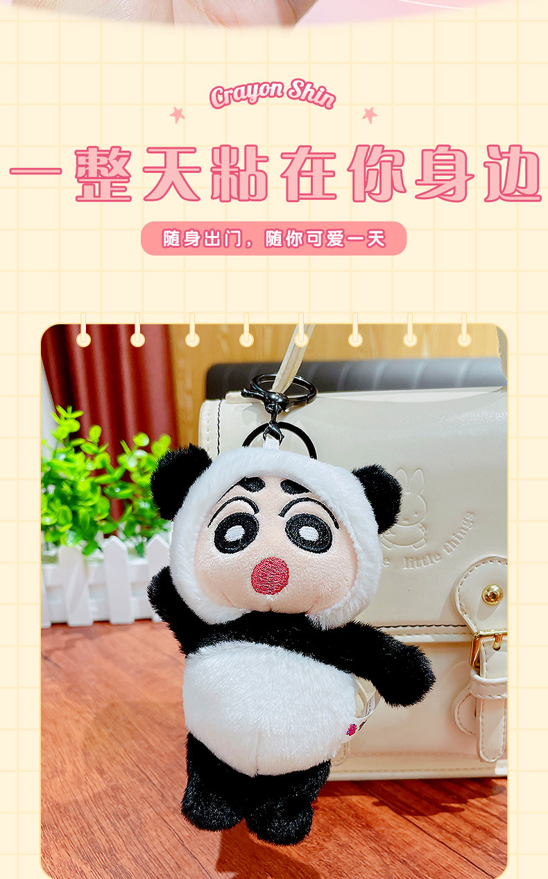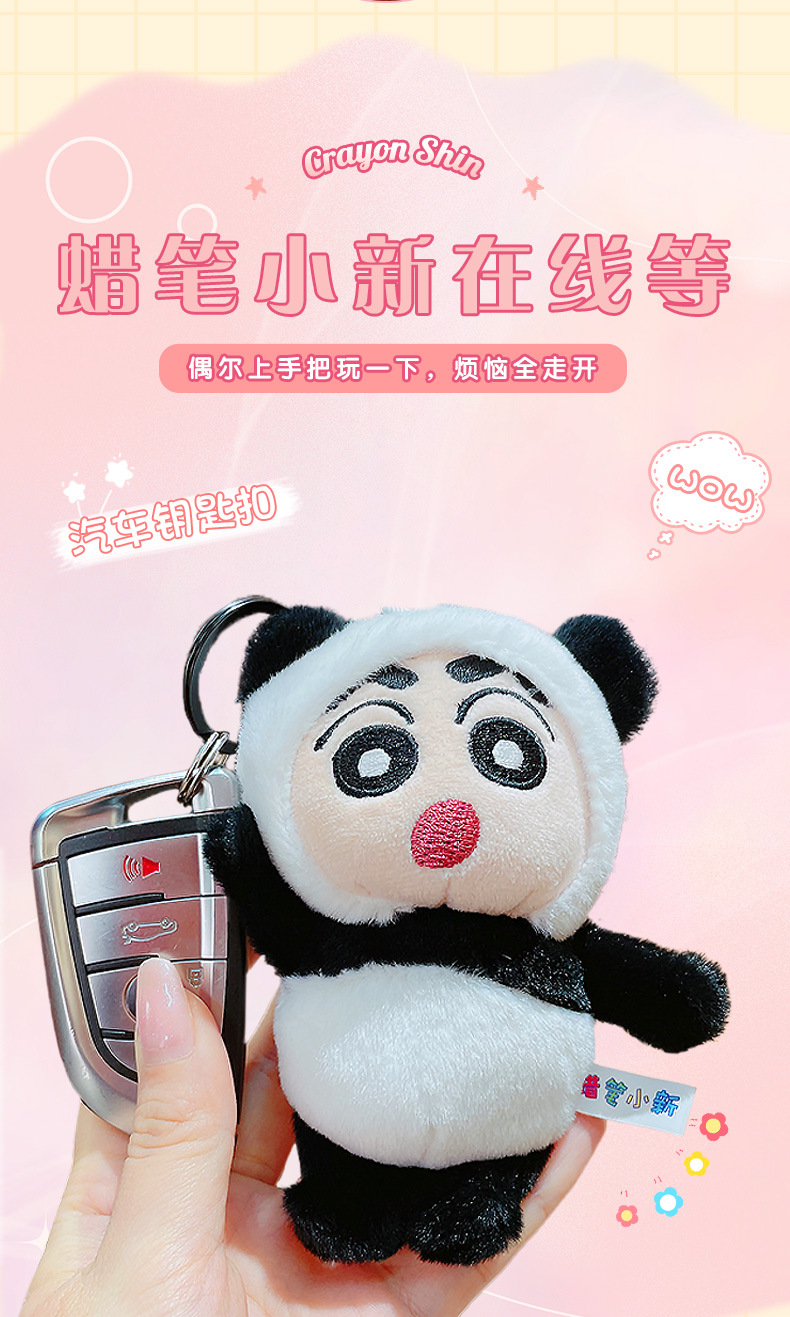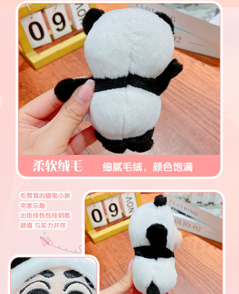 정품 만화 봉제 크레용 작은 새로운 직물 팬더 인형 키 체인 귀여운 가방 펜던트 키 체인 도매스토어 가기