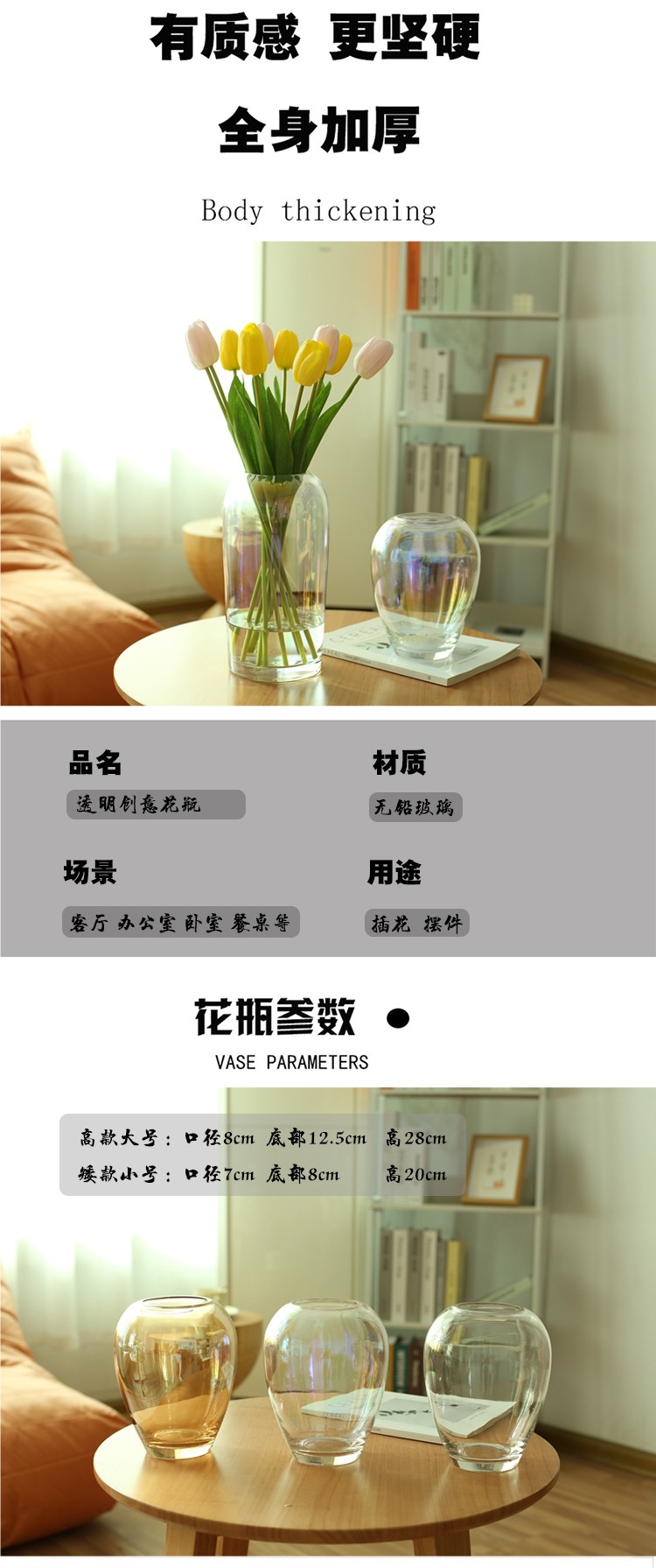 꽃병 장식 거실 꽃 배열 유리 투명 높은 수준의 식탁 수화 꽃 로즈 릴리 장식 입구