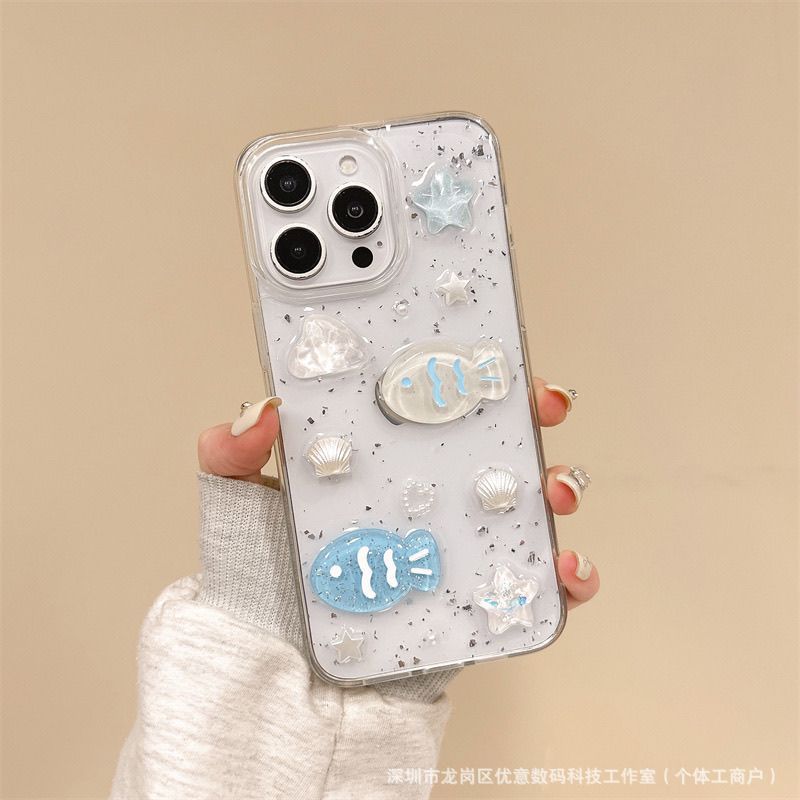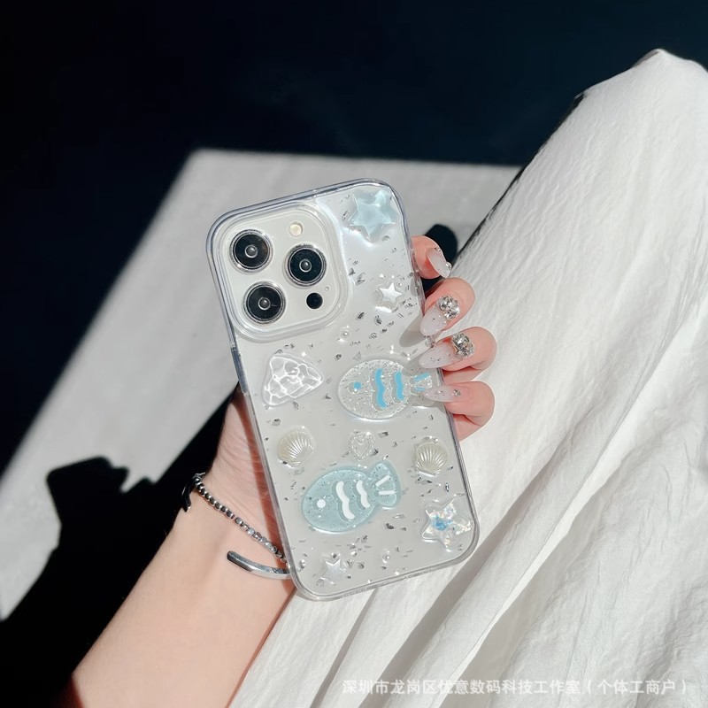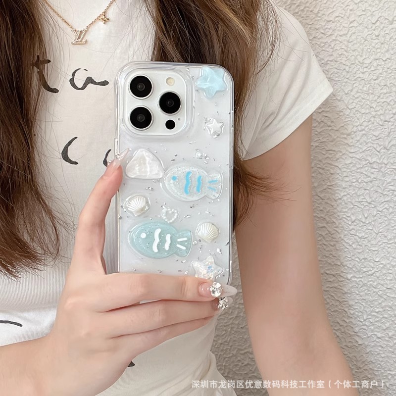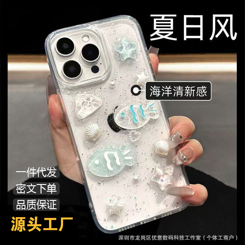 해양 조개와 작은 물고기 디자인의 샤오미 17 휴대폰 케이스, 15/13 세트, civi5pro, 레드미 K80 소프트, note15/9