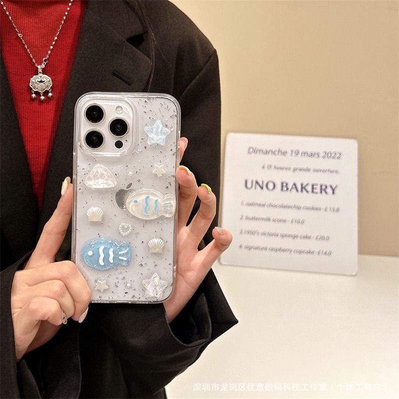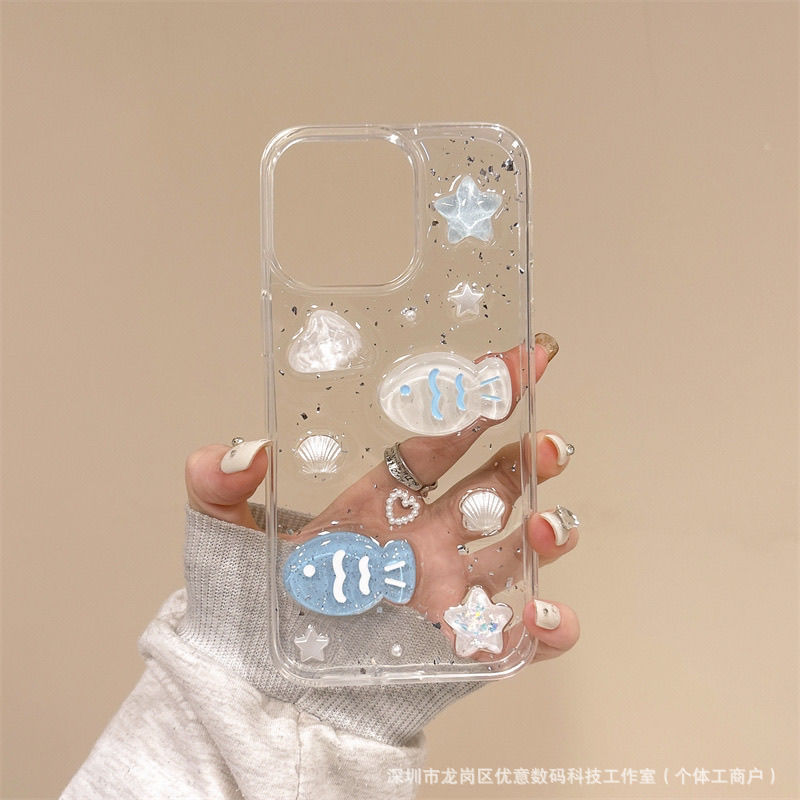 해양 조개와 작은 물고기 디자인의 샤오미 17 휴대폰 케이스, 15/13 세트, civi5pro, 레드미 K80 소프트, note15/9스토어 가기