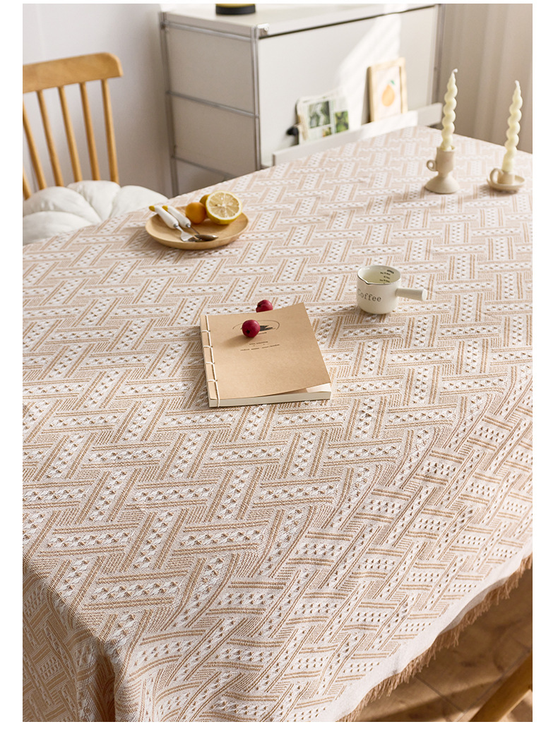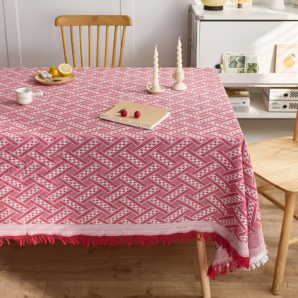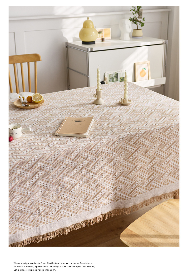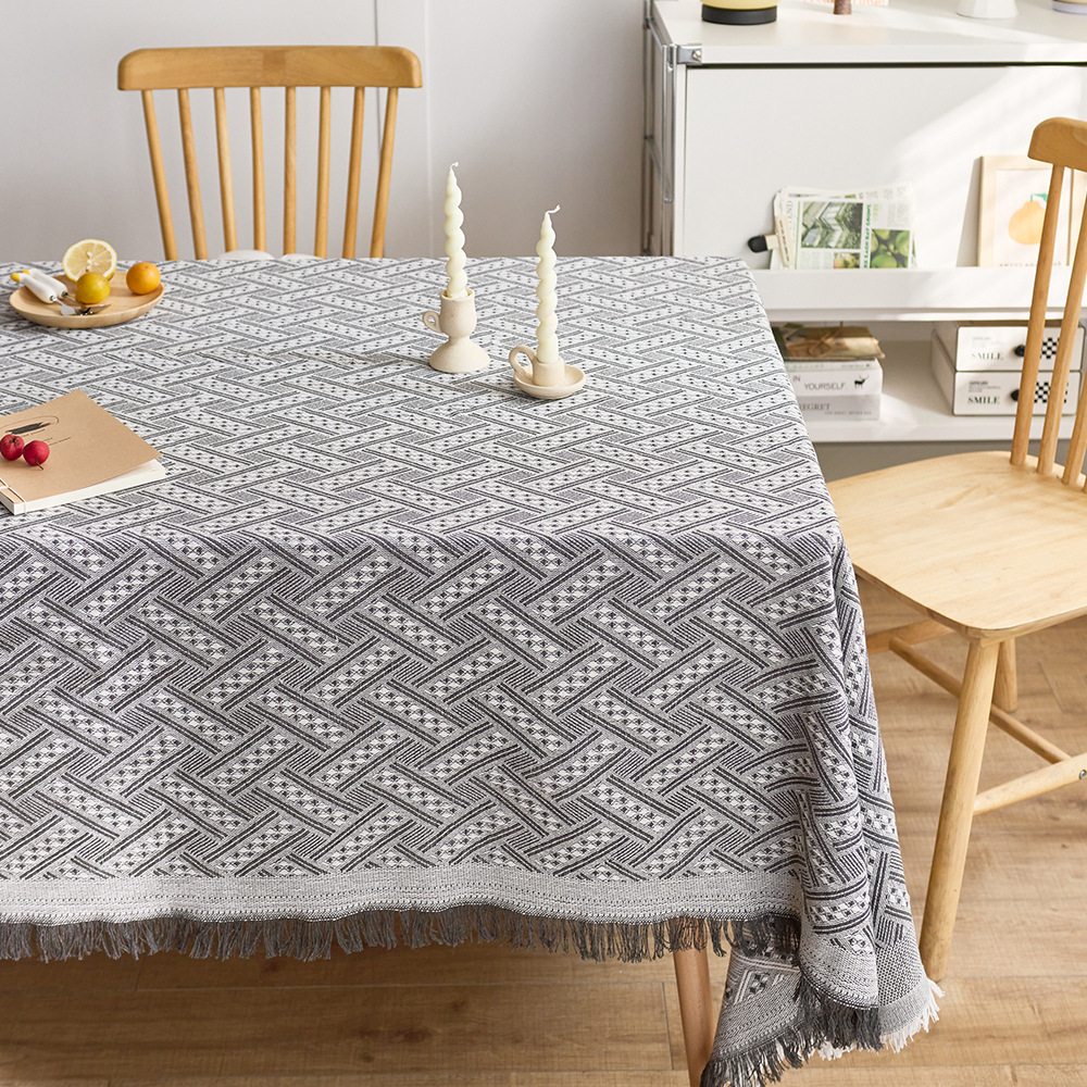 T-격자 식탁보 면화 자카드 직사각형 테이블 패브릭 분위기 감각 장식 식탁보 커피 테이블 식탁보 사용자 정의