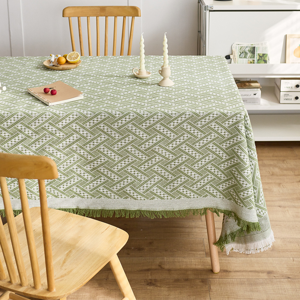 T-격자 식탁보 면화 자카드 직사각형 테이블 패브릭 분위기 감각 장식 식탁보 커피 테이블 식탁보 사용자 정의스토어 가기