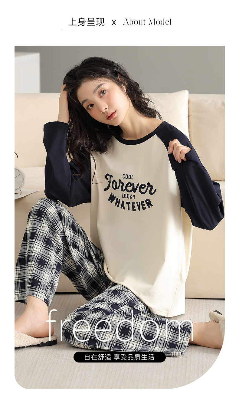 파자마 여성의 봄과 가을 빗 코튼 긴 소매 바지 세트 2025 새로운 간단한 패션 느슨한 플러스 사이즈 홈 옷스토어 가기