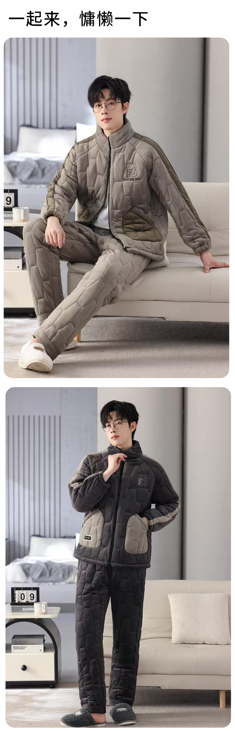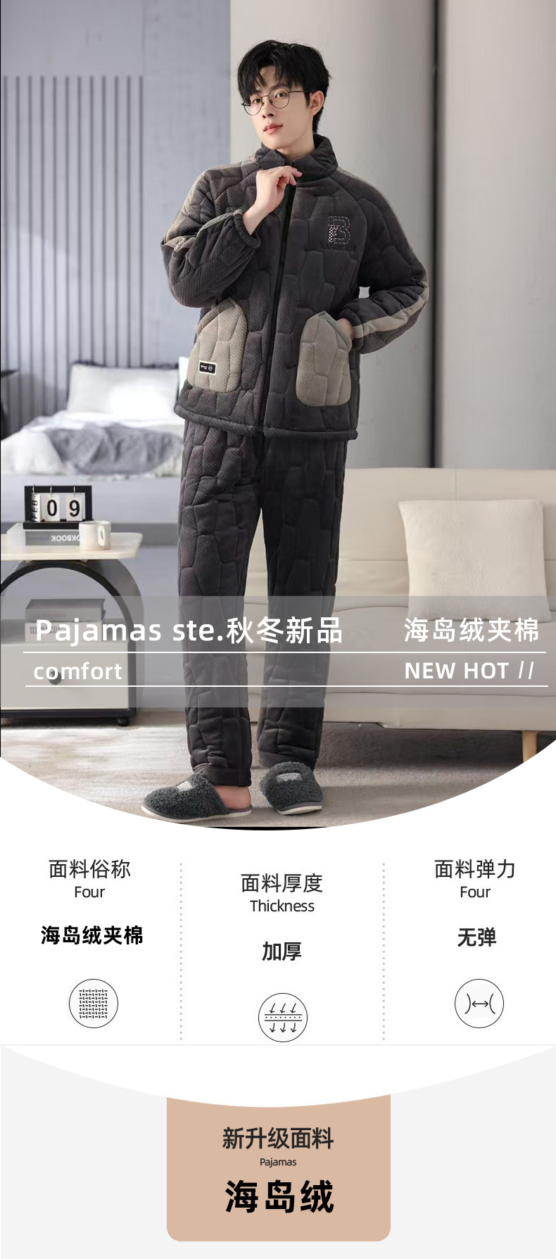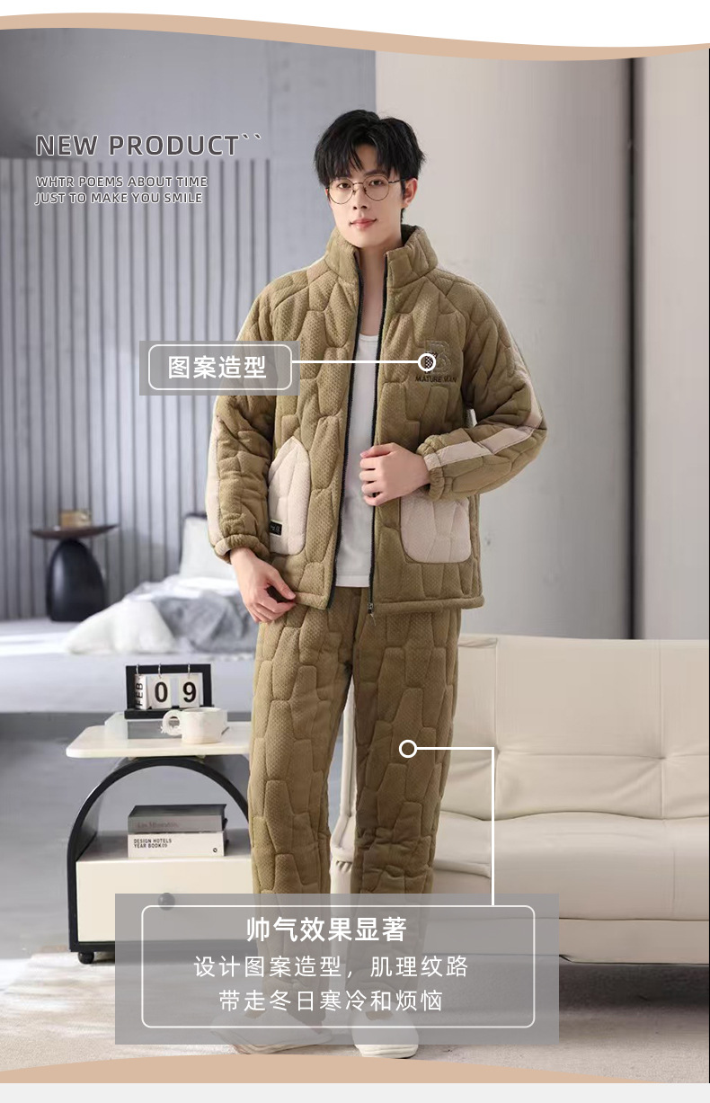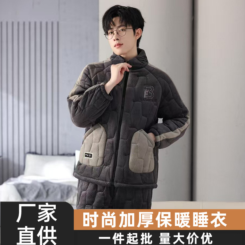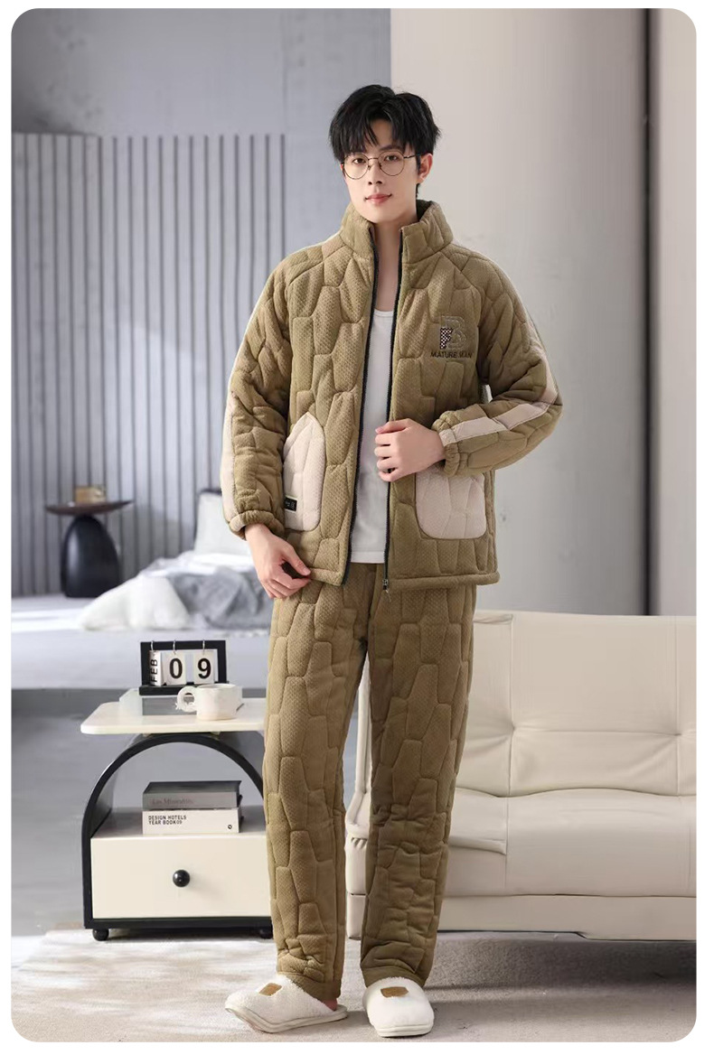 새로운 남자의 가을과 겨울 기모 두꺼운 섬 벨벳 코튼 홈 옷