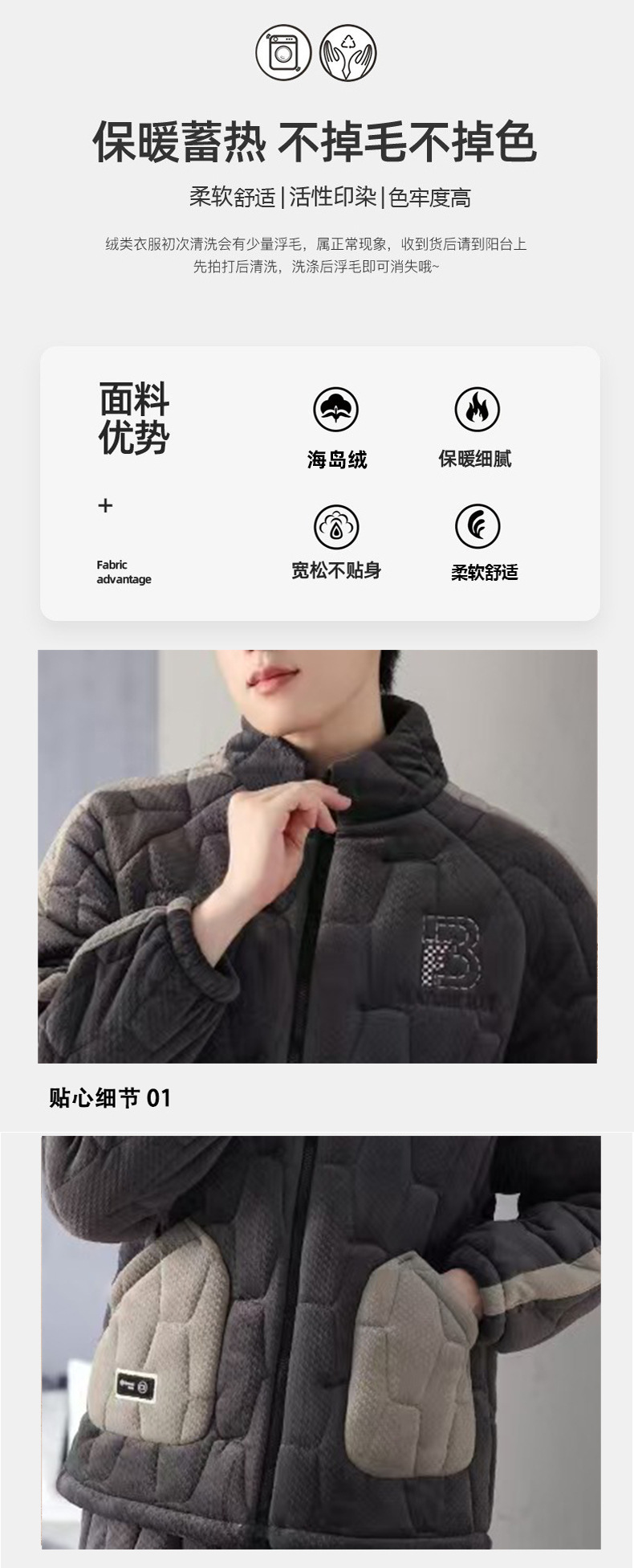 새로운 남자의 가을과 겨울 기모 두꺼운 섬 벨벳 코튼 홈 옷스토어 가기