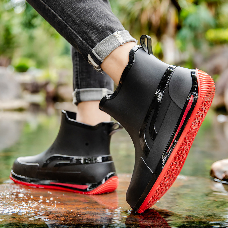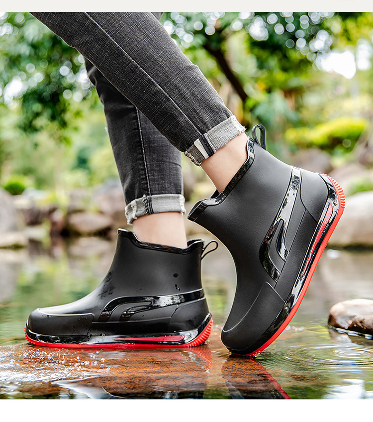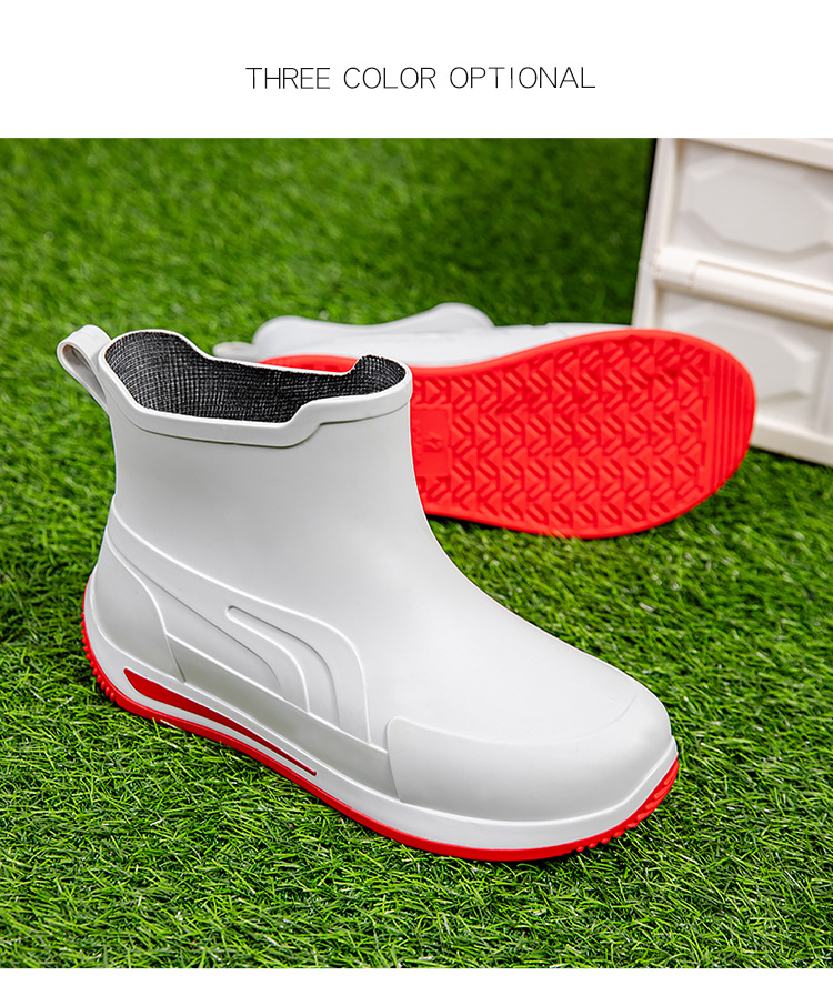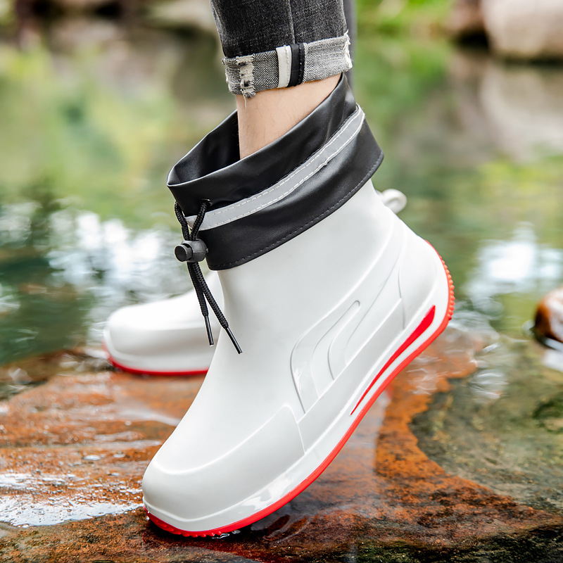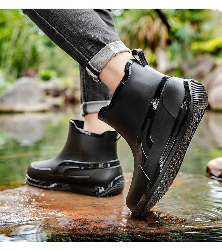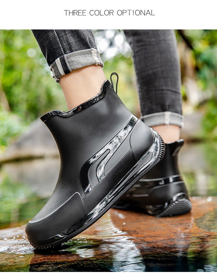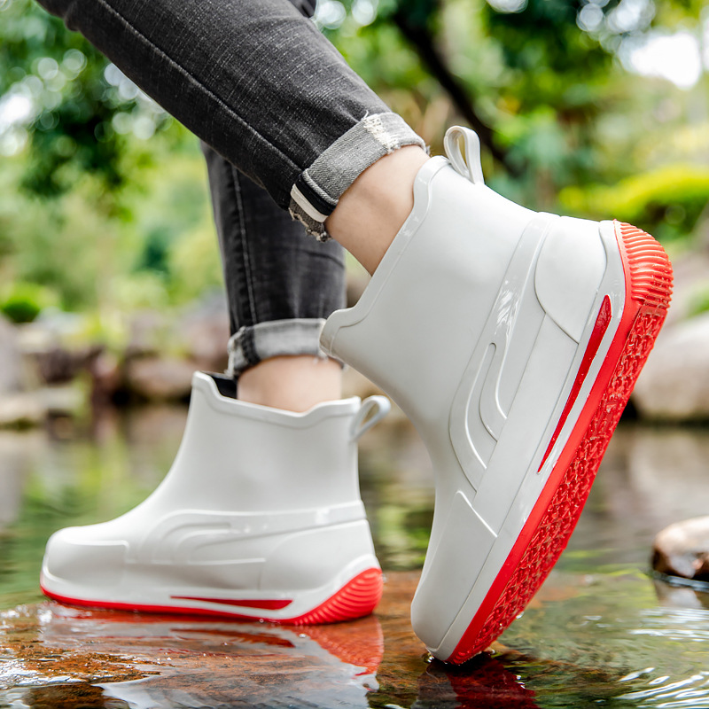 패션 짧은 튜브 두꺼운 방수 신발 커플 비 신발 낮은 상단 따뜻한 작업 고무 신발 미끄럼 방지 낚시 주방 장화
