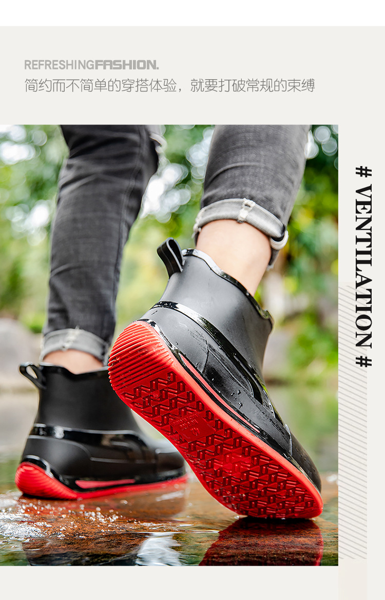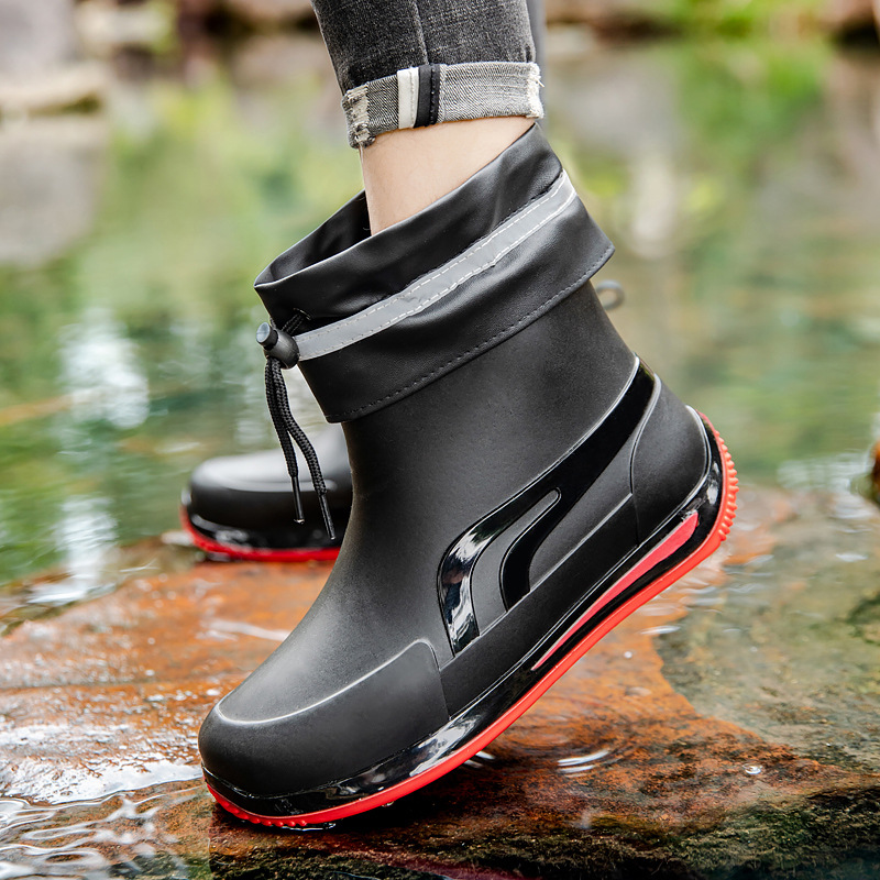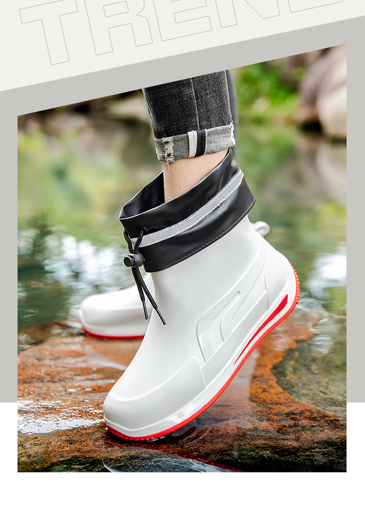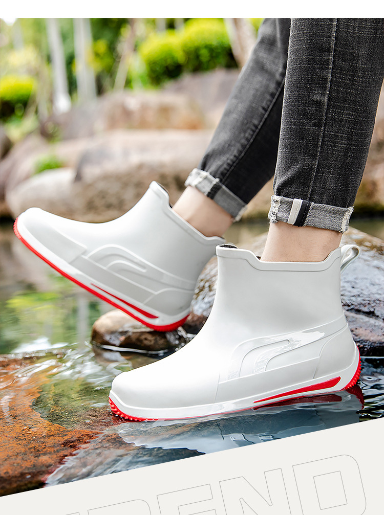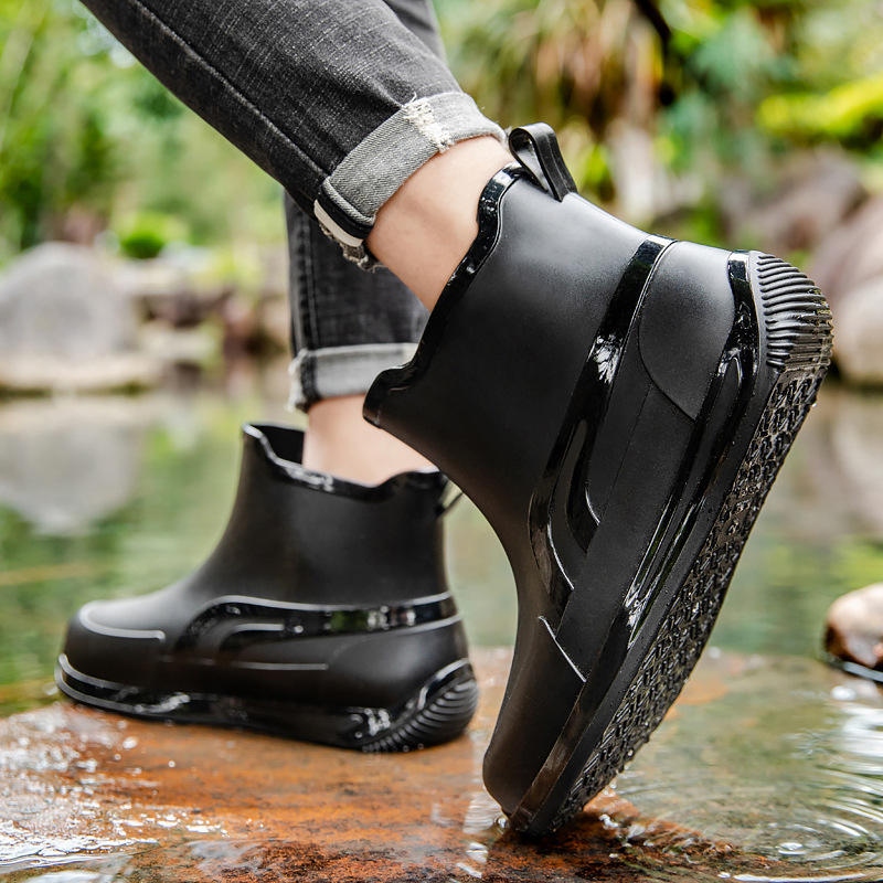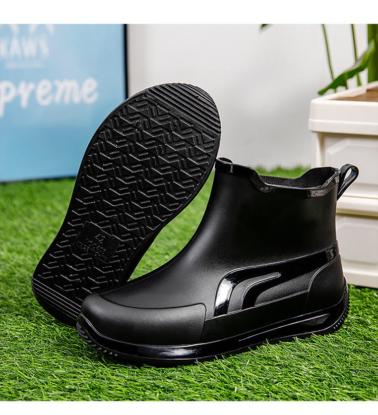 패션 짧은 튜브 두꺼운 방수 신발 커플 비 신발 낮은 상단 따뜻한 작업 고무 신발 미끄럼 방지 낚시 주방 장화