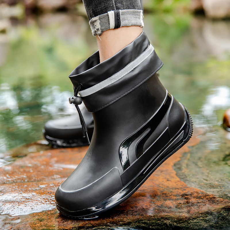 패션 짧은 튜브 두꺼운 방수 신발 커플 비 신발 낮은 상단 따뜻한 작업 고무 신발 미끄럼 방지 낚시 주방 장화스토어 가기