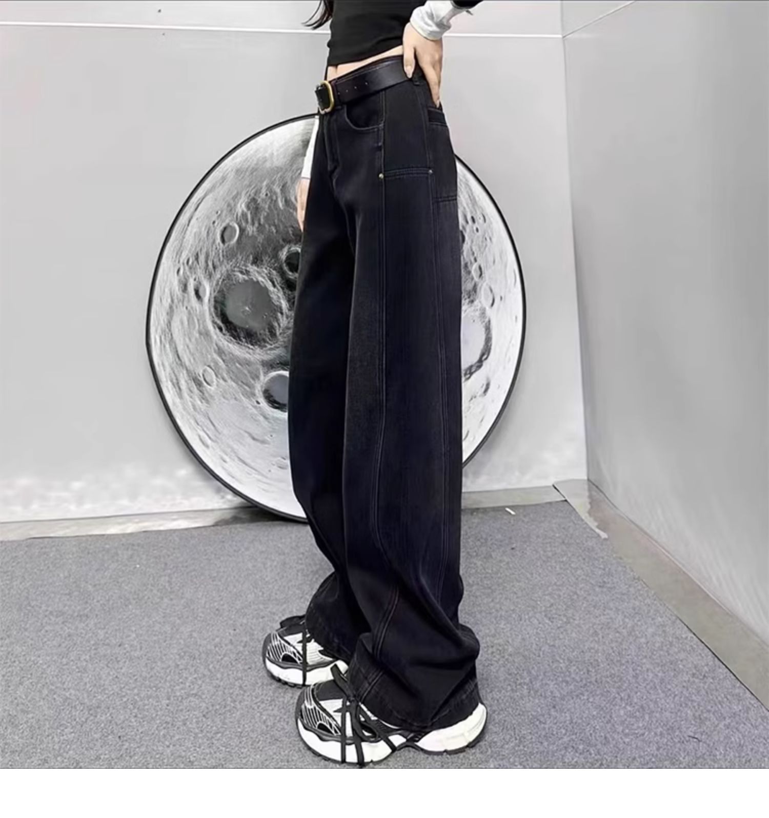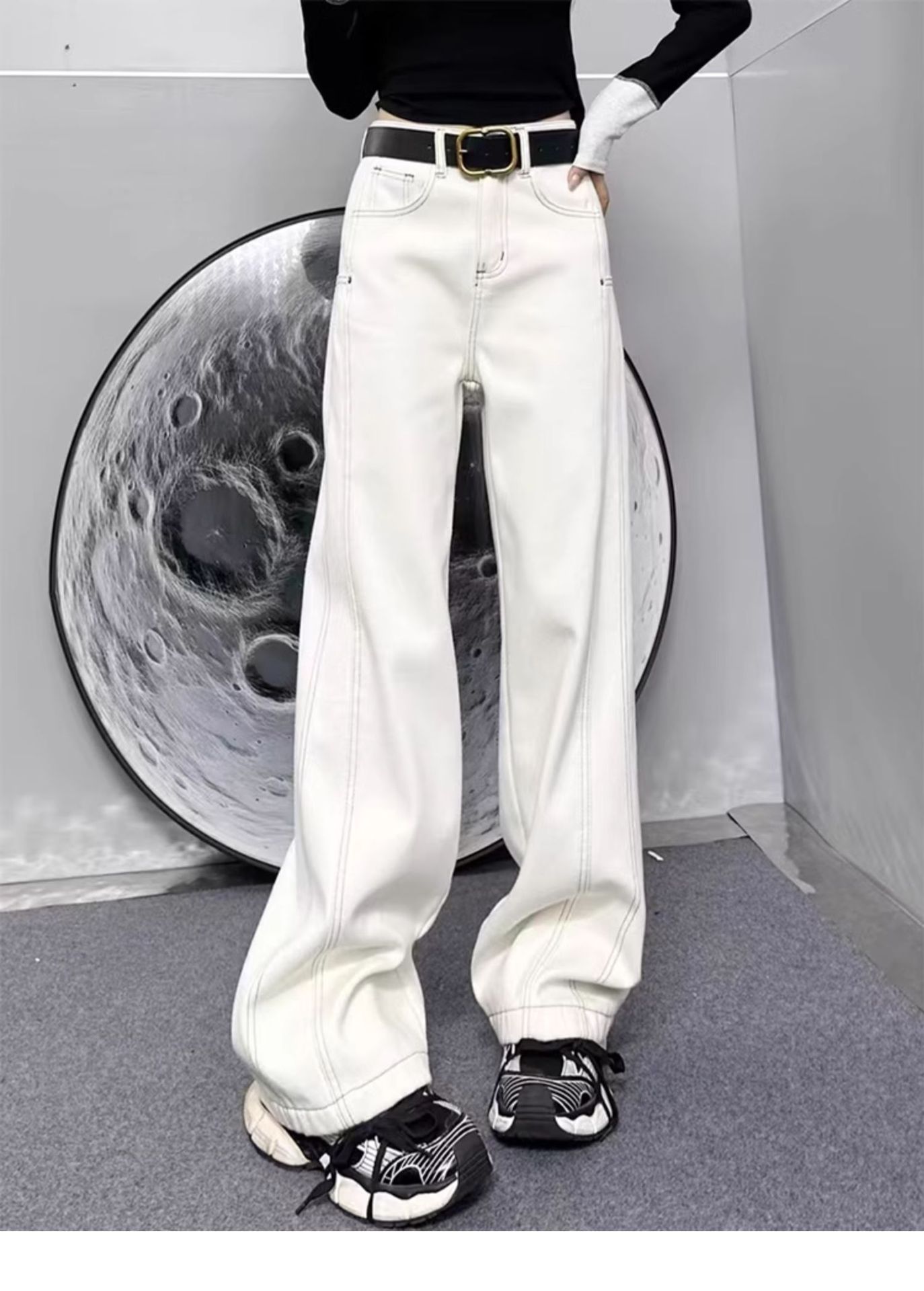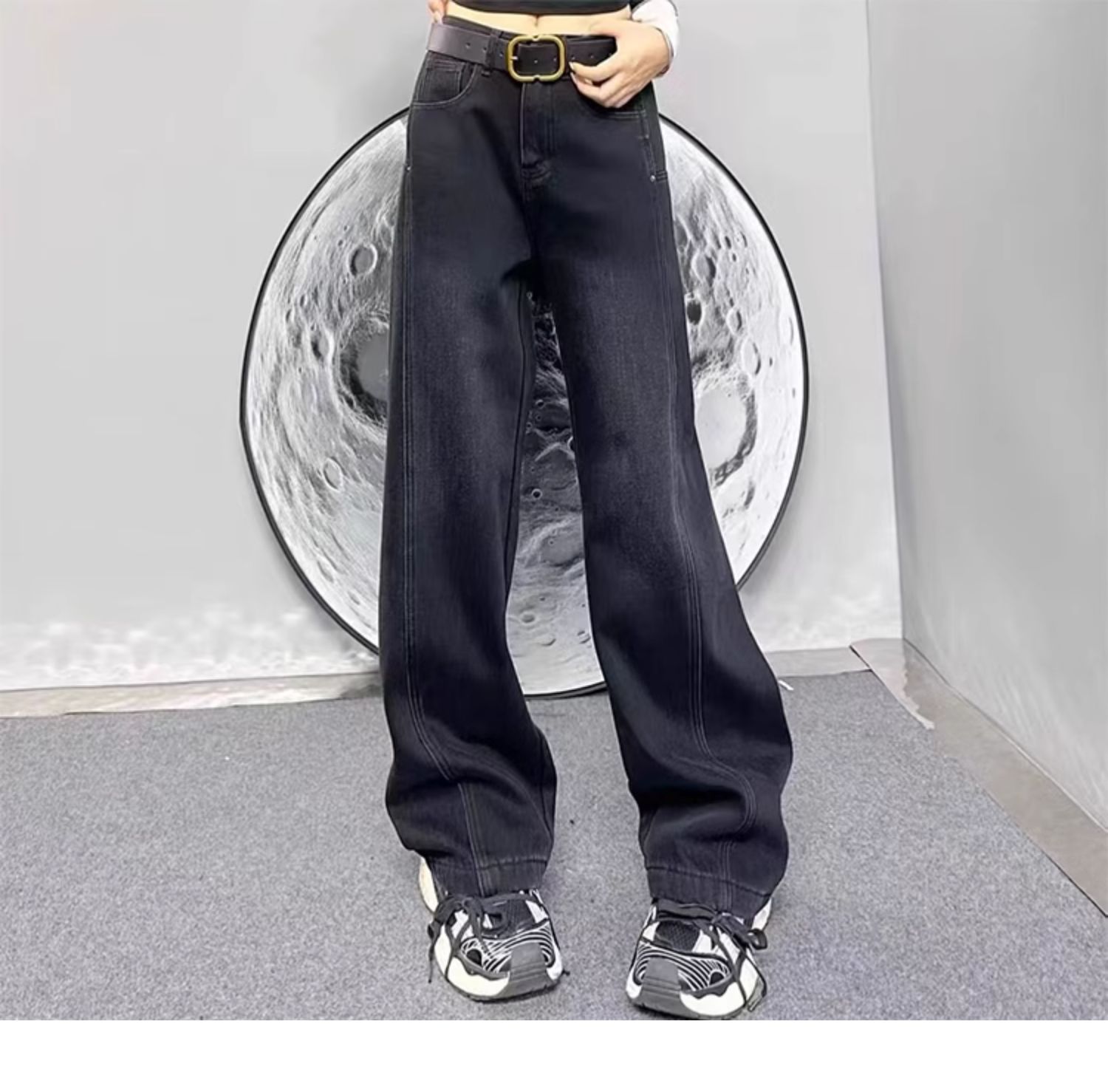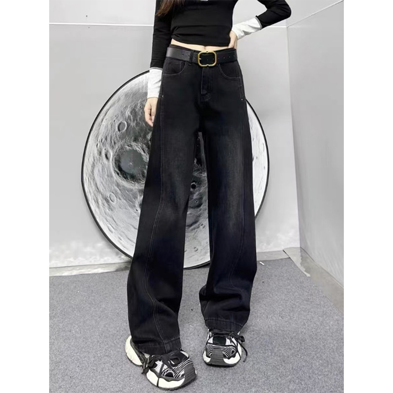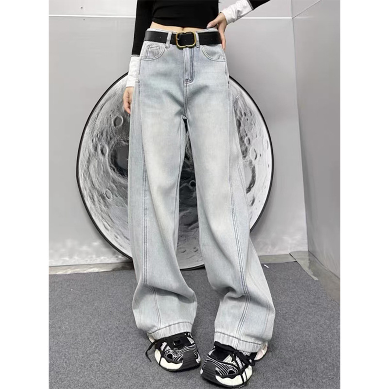 빅사이즈 플러스벨벳 스트레이트 진 여성용 2025 가을 겨울 통통한 여성용 배형 체형 루즈핏 하이웨이스트 슬림 와이드 팬츠스토어 가기
