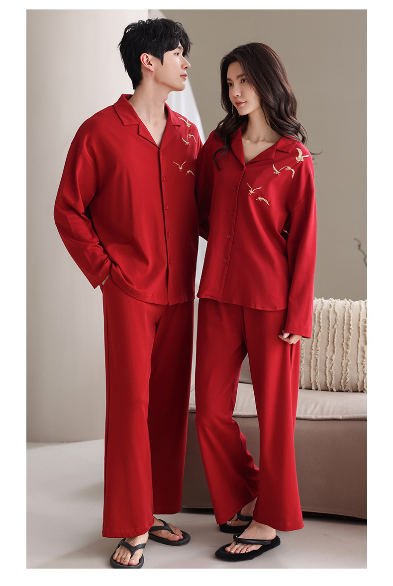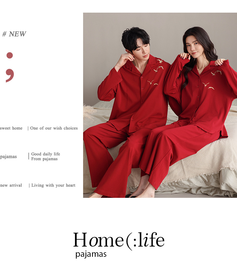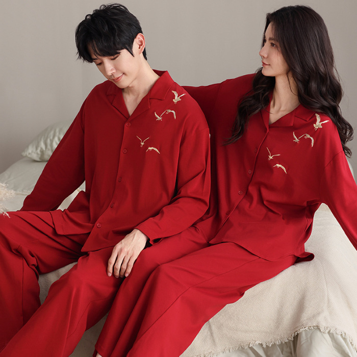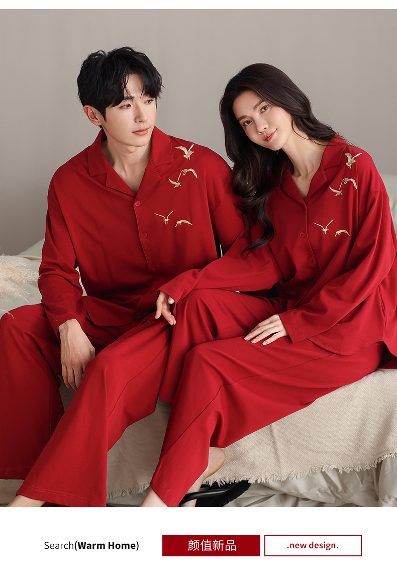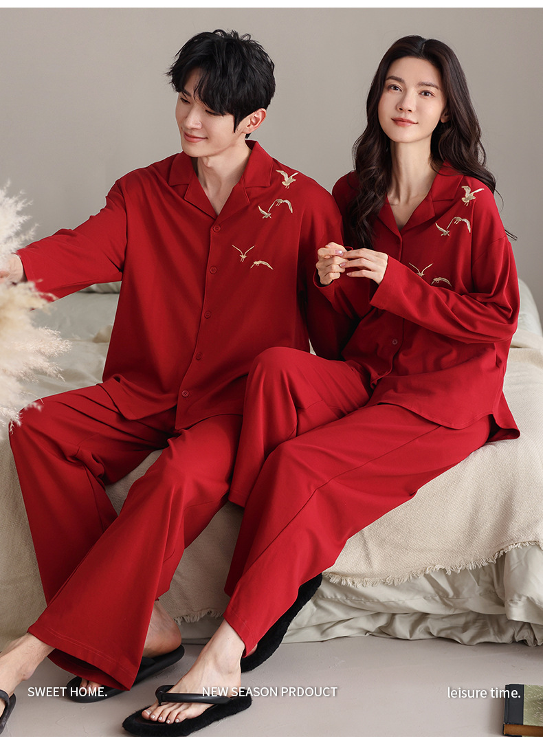축제 커플 잠옷 신혼 봄과 가을 생활 년 여성 긴 소매 빨간 집 옷 순면 남성 캐주얼 세트스토어 가기