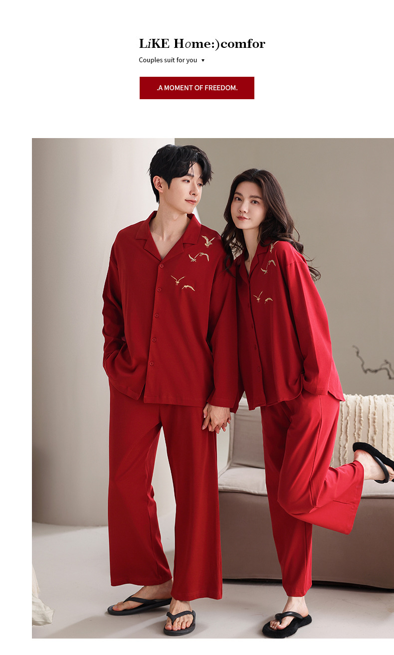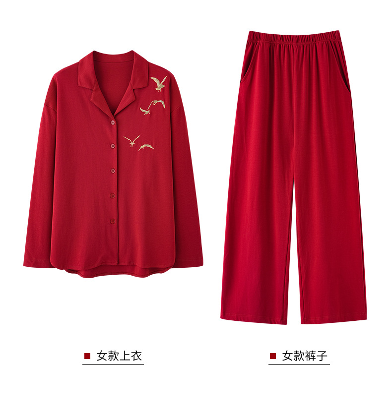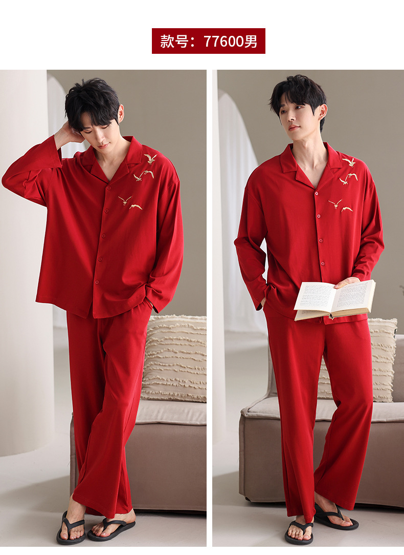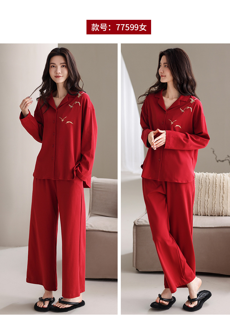 축제 커플 잠옷 신혼 봄과 가을 생활 년 여성 긴 소매 빨간 집 옷 순면 남성 캐주얼 세트스토어 가기