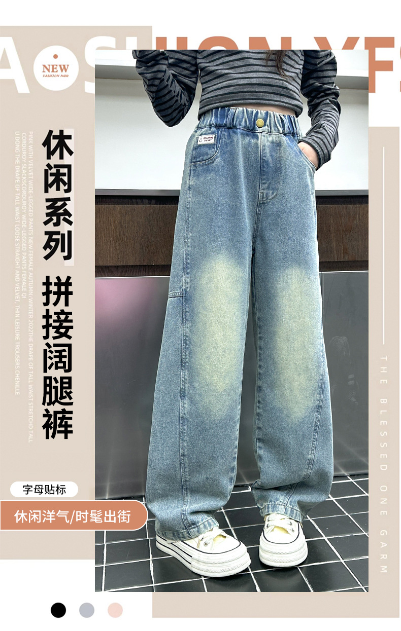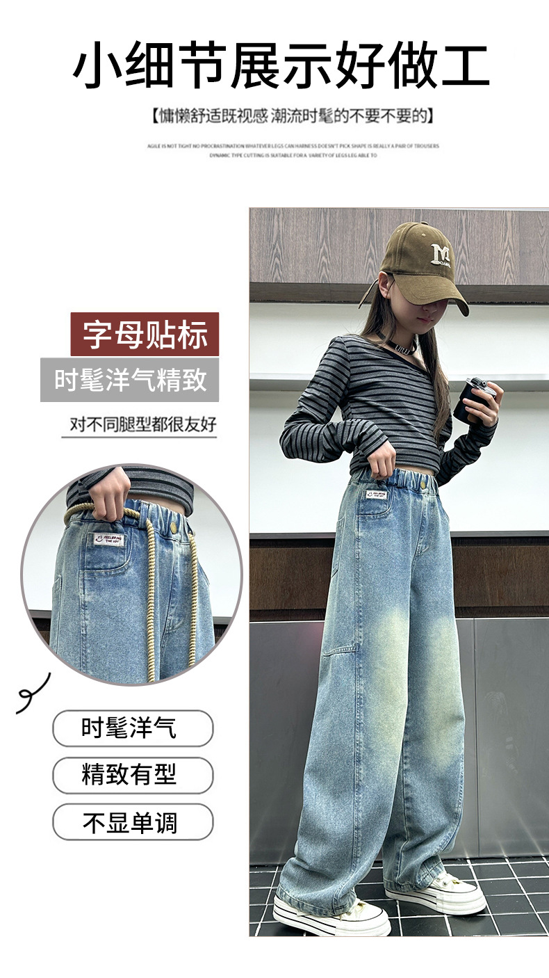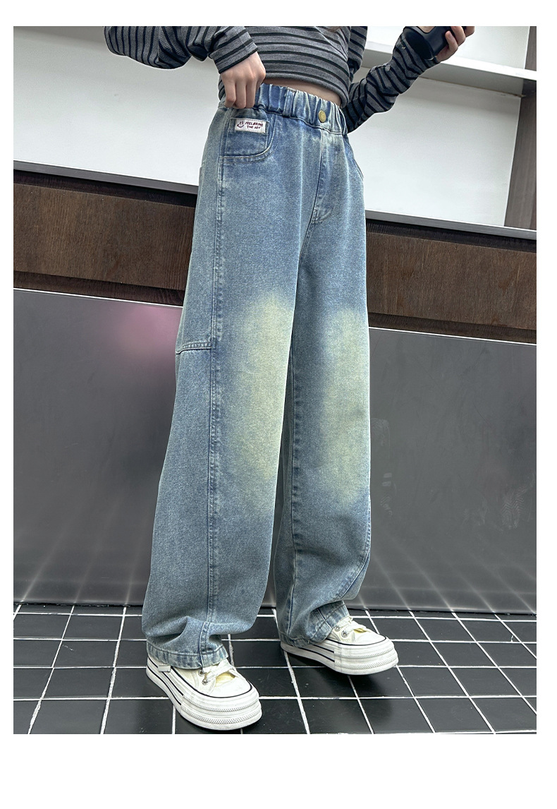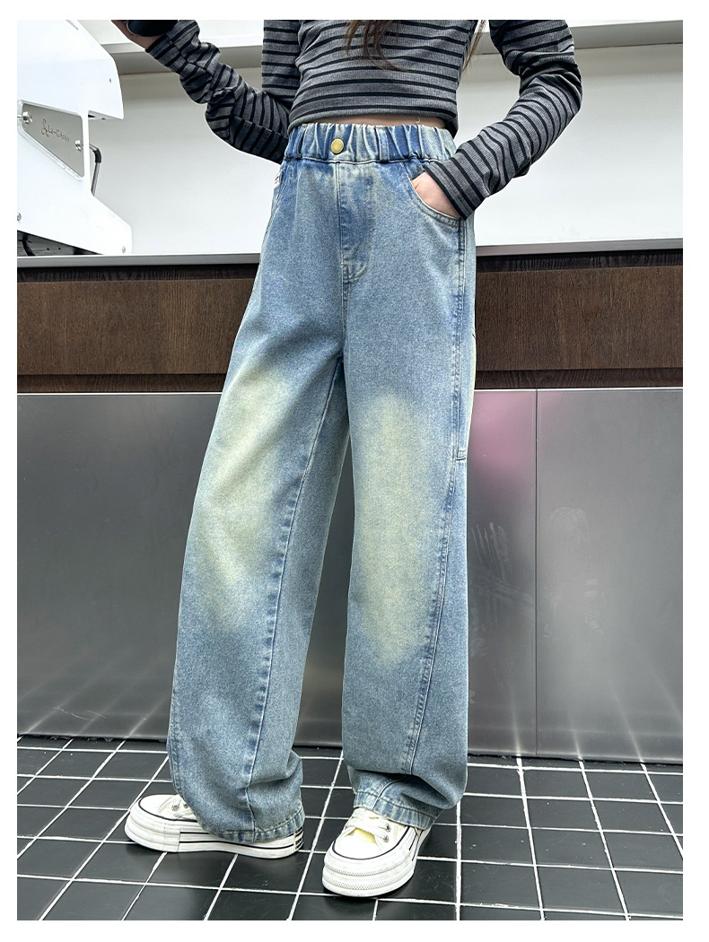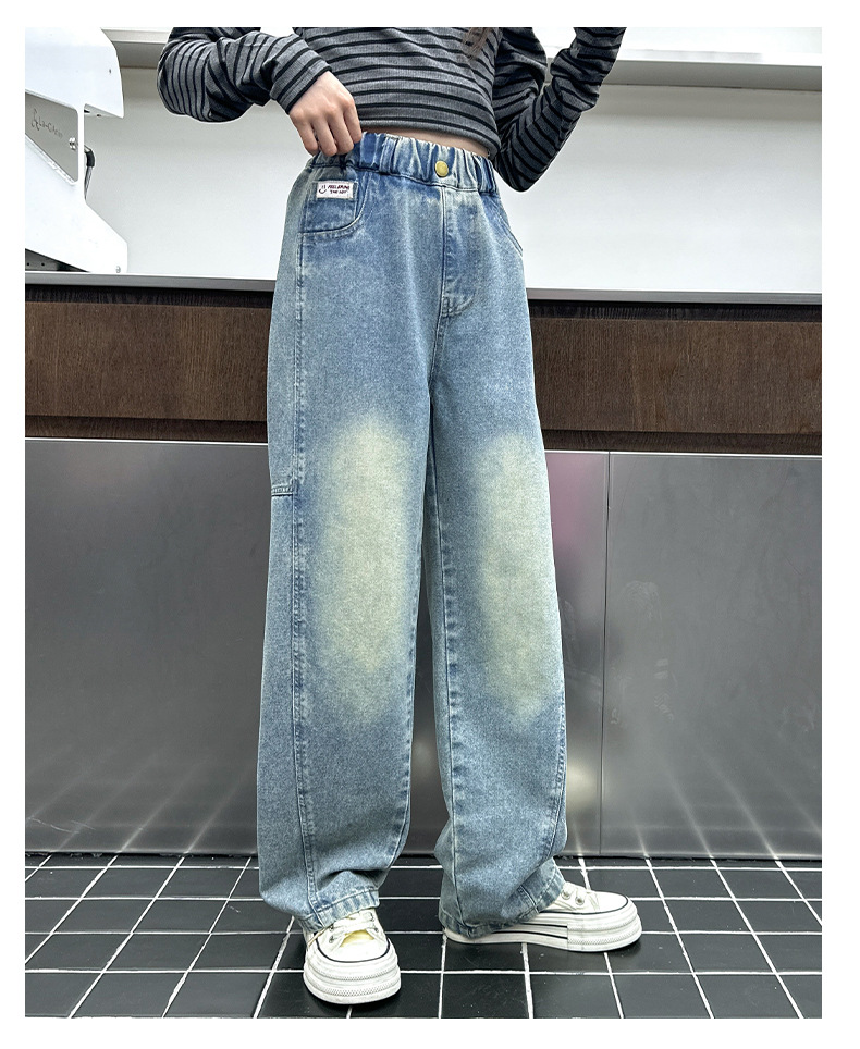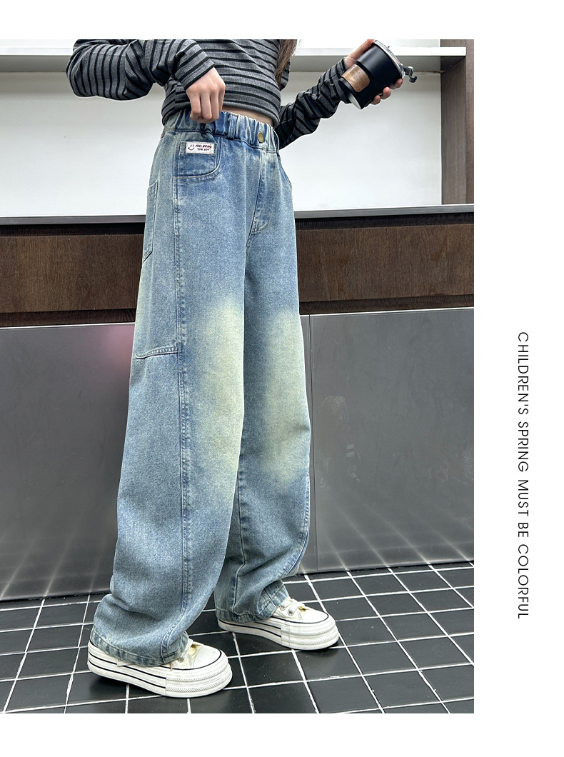 여아용 드로우 스트링 캐주얼 청바지 유럽과 미국 아동복 걸스 스트레이트 와이드 레그 팬츠 대외 무역 아동용 루즈 트렌디 팬츠스토어 가기