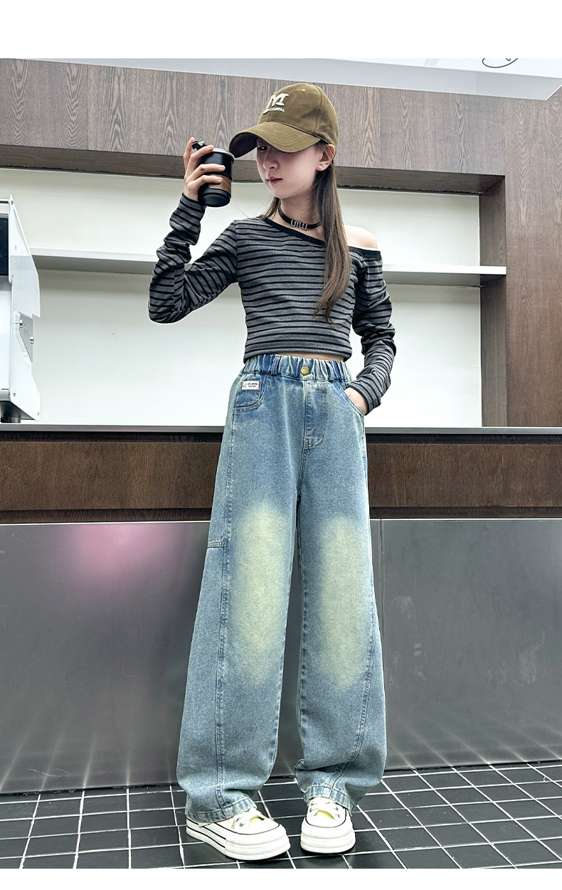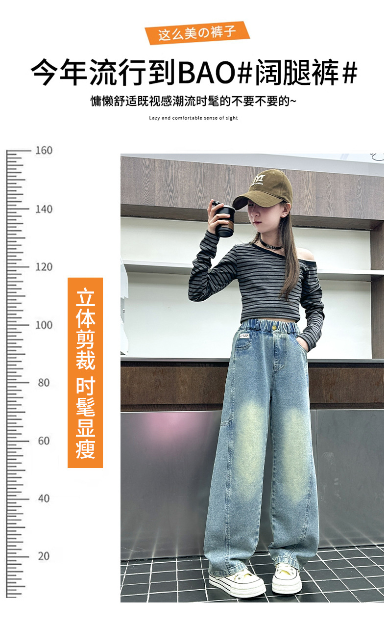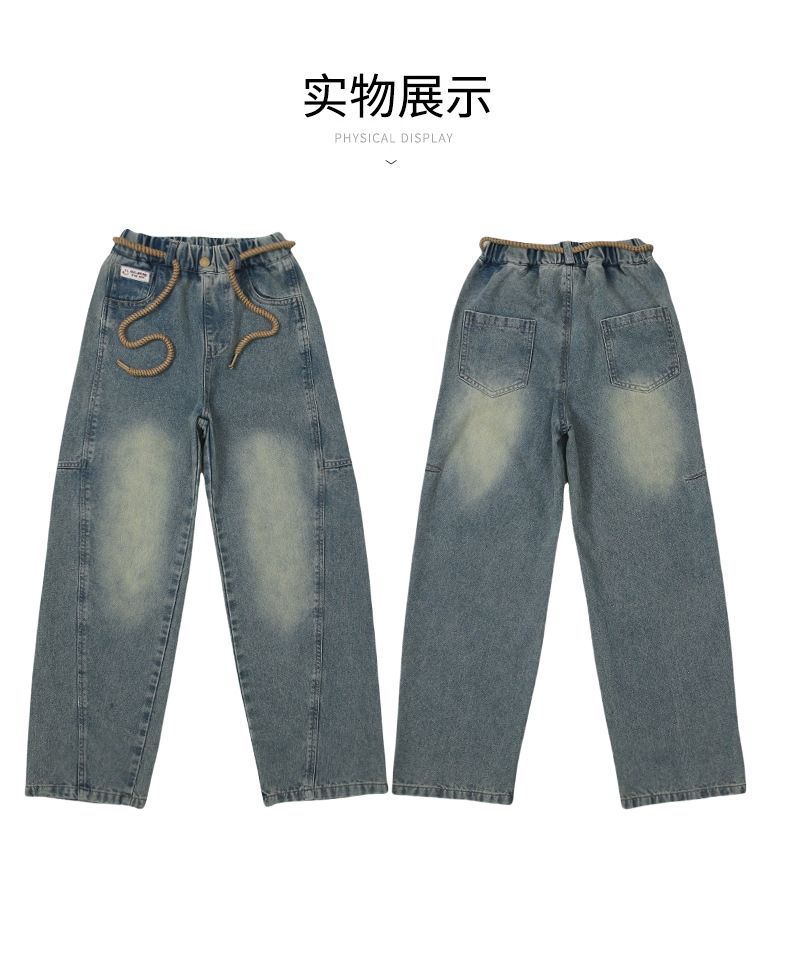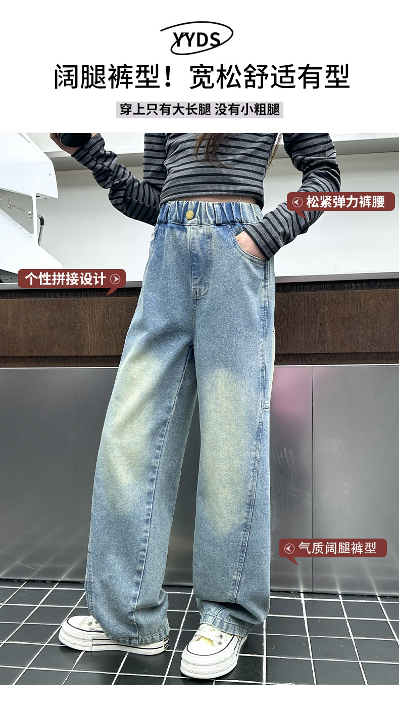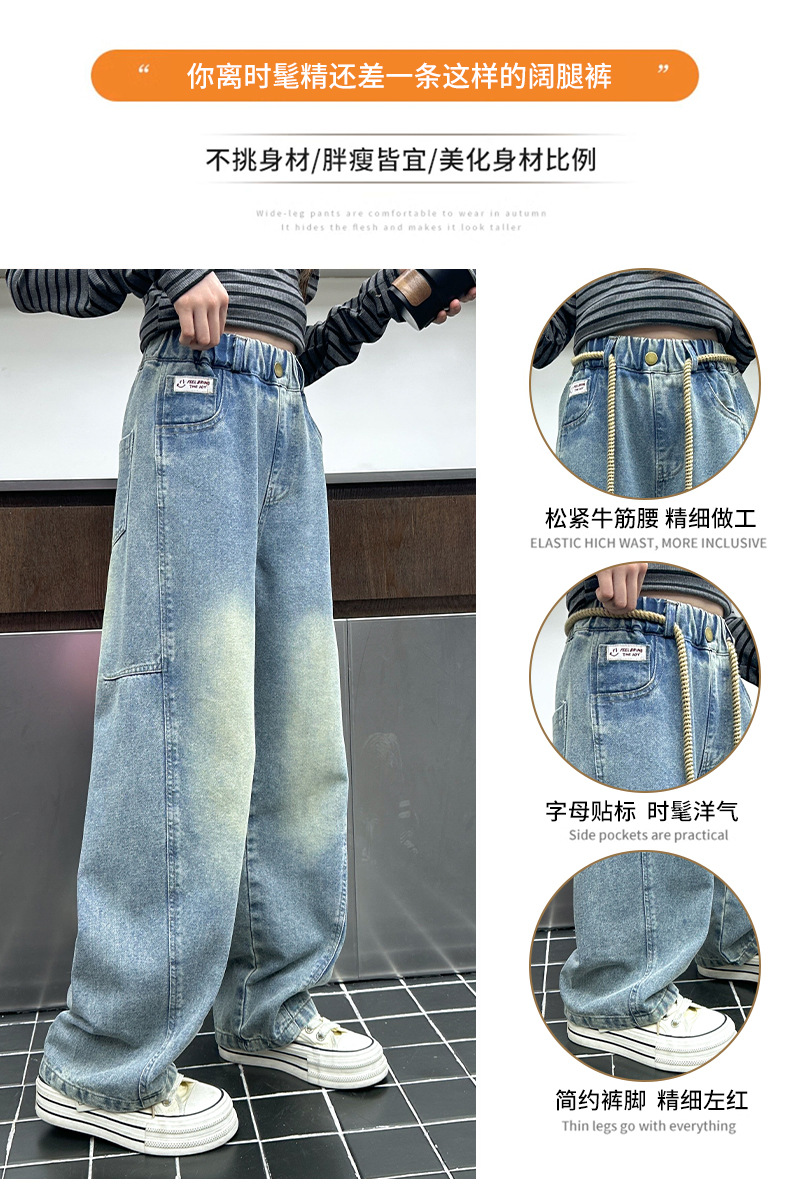여아용 드로우 스트링 캐주얼 청바지 유럽과 미국 아동복 걸스 스트레이트 와이드 레그 팬츠 대외 무역 아동용 루즈 트렌디 팬츠스토어 가기