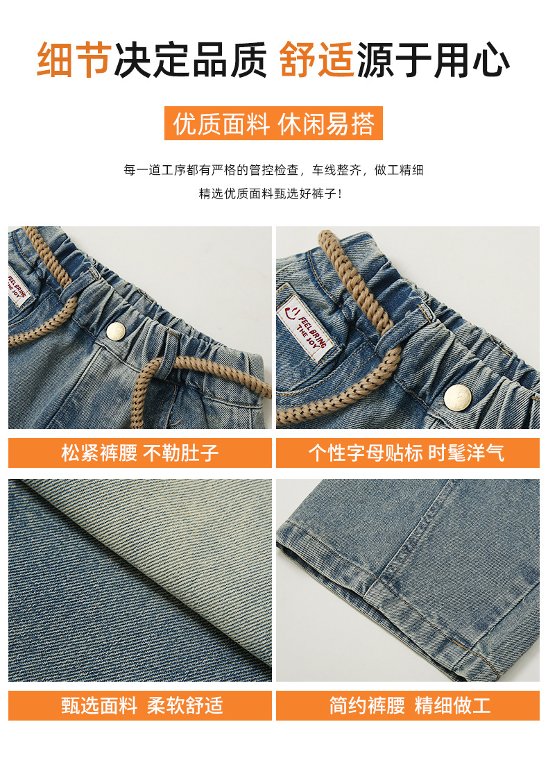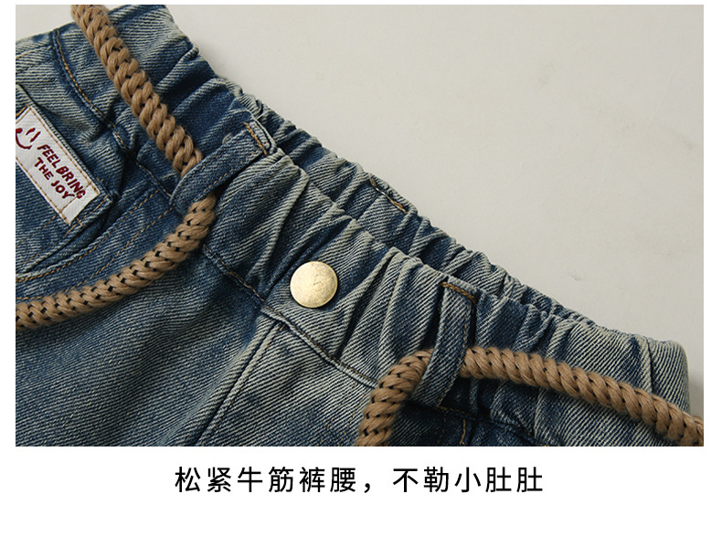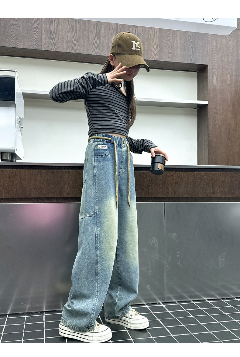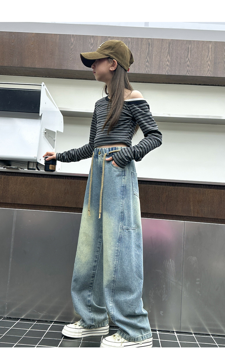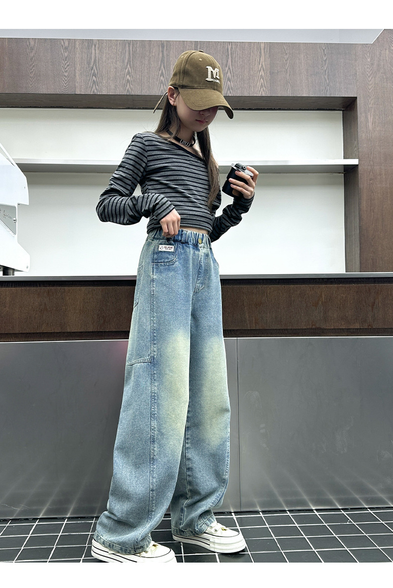 여아용 드로우 스트링 캐주얼 청바지 유럽과 미국 아동복 걸스 스트레이트 와이드 레그 팬츠 대외 무역 아동용 루즈 트렌디 팬츠스토어 가기