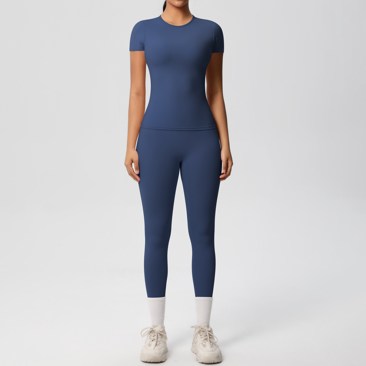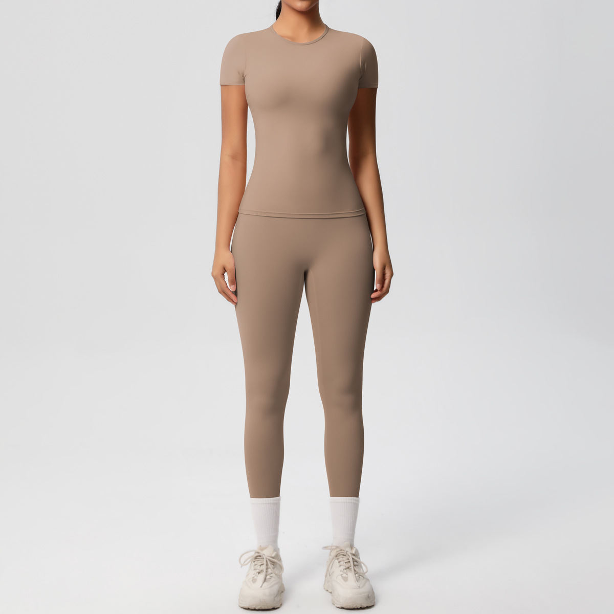 재고 크로스 보더 솔리드 컬러 양면 샌딩 통기성 타이트 피트니스 투피스 러닝 스포츠 요가 의류 세트스토어 가기