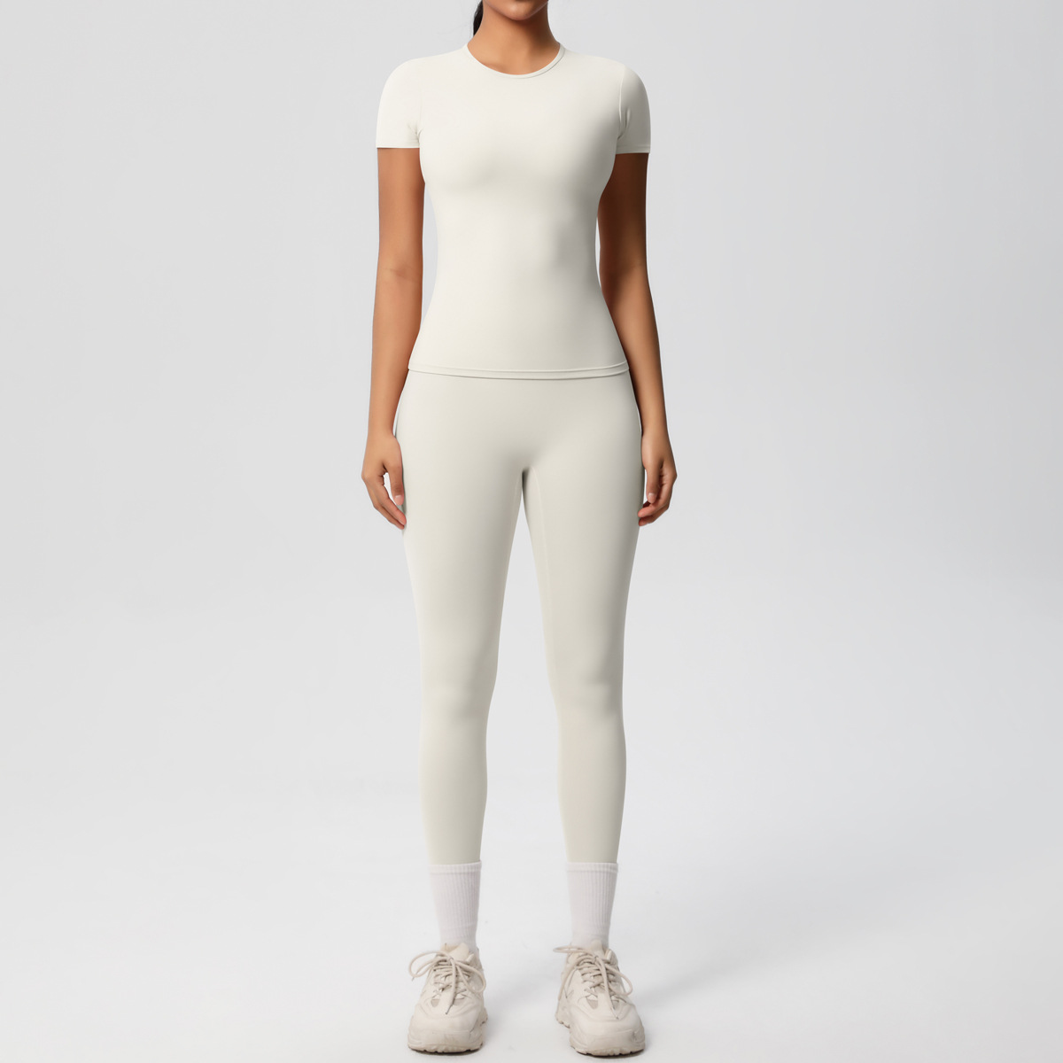 재고 크로스 보더 솔리드 컬러 양면 샌딩 통기성 타이트 피트니스 투피스 러닝 스포츠 요가 의류 세트