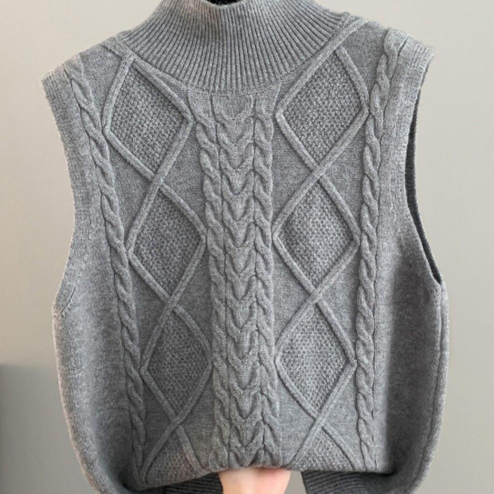 양면 조끼 스웨터 여성의 가을과 겨울 새로운 단색 반 터틀넥 트위스트 니트 카디건 조끼 프렌치 루즈 탑