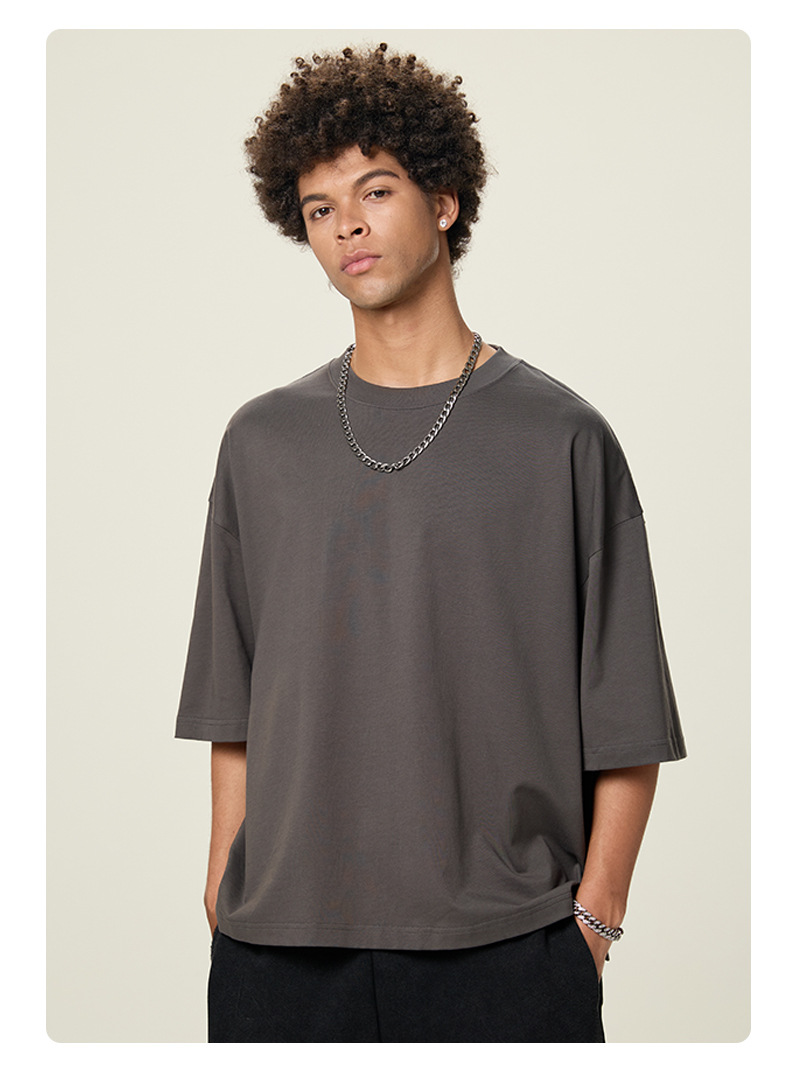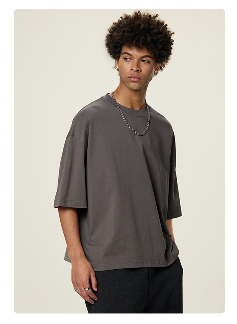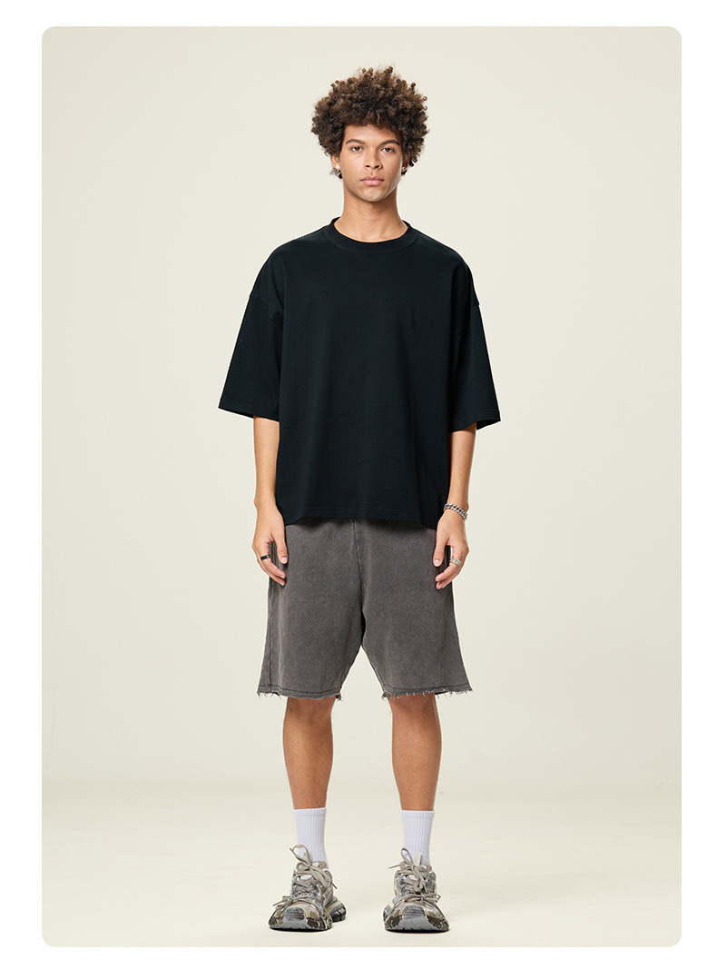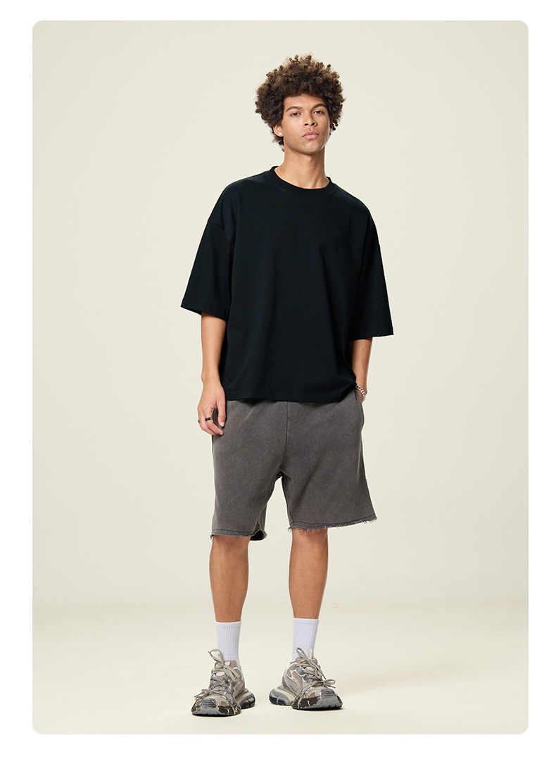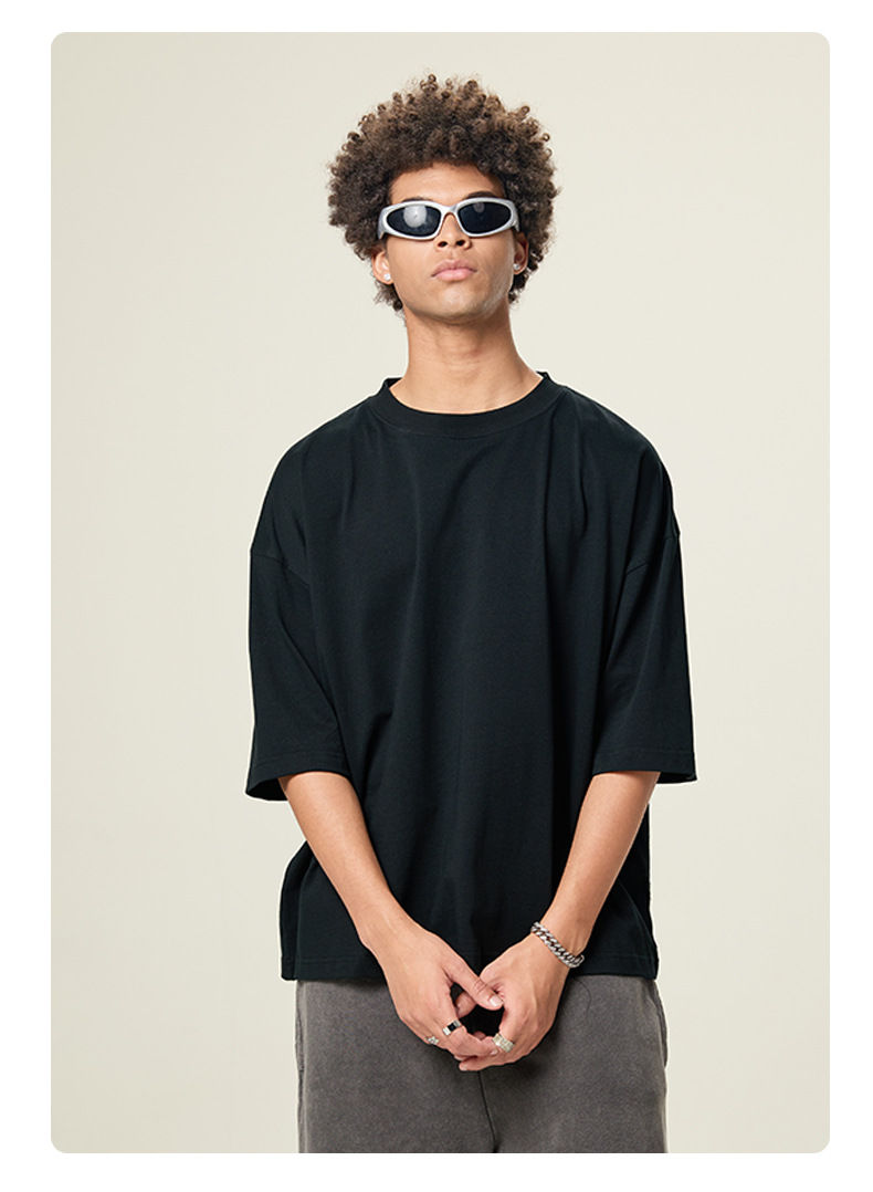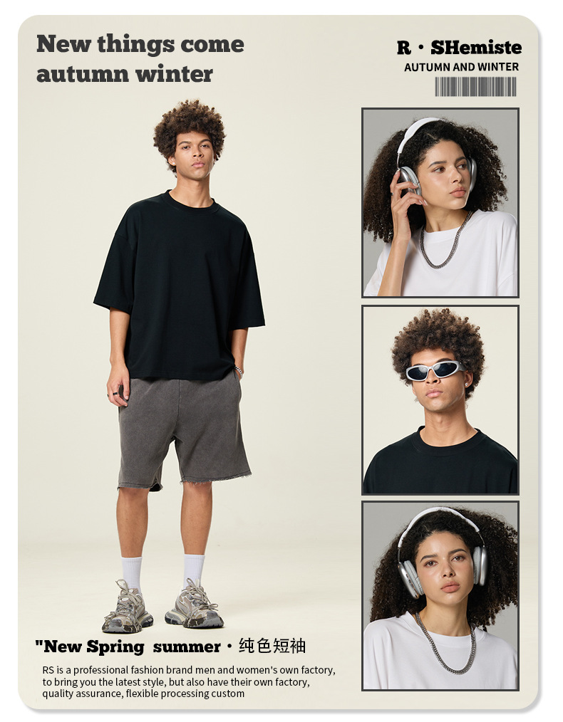RS 남성 | 크로스-국경 박스 스퀘어 230G 타이드 브랜드 퓨어 코튼 남성용 짧은 소매 유럽과 미국의 짧은 넓은 짧은 소매 티셔츠 남성