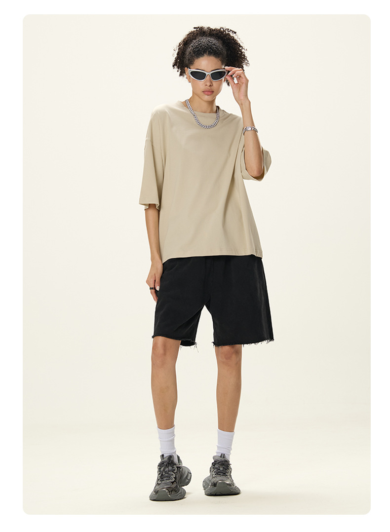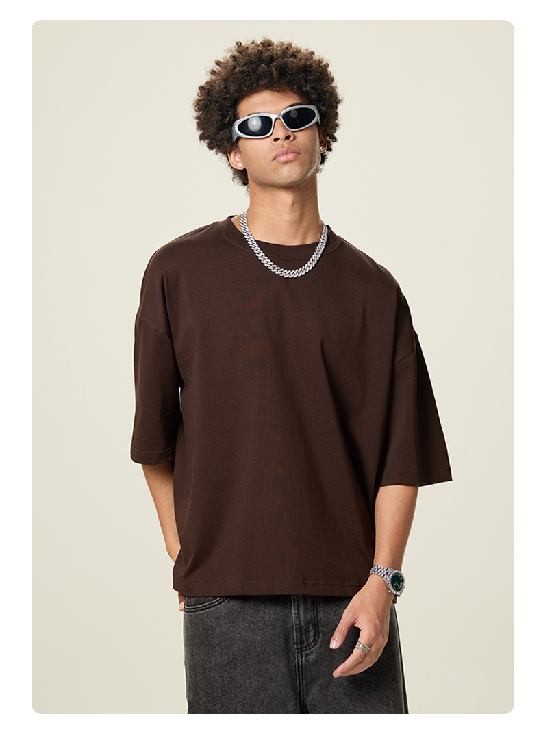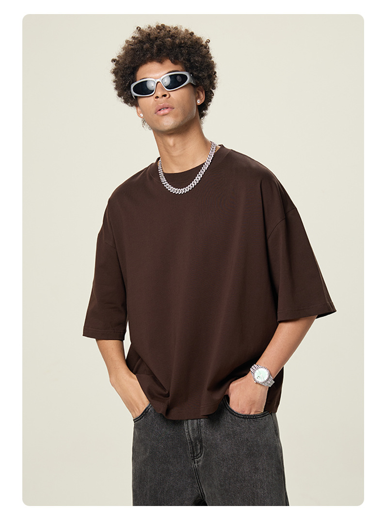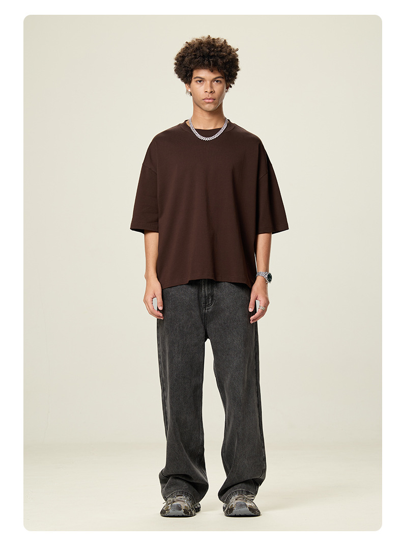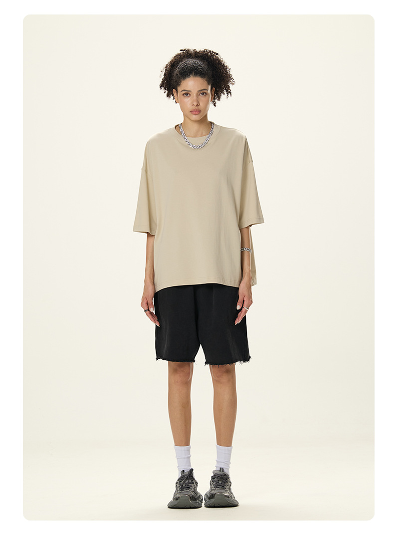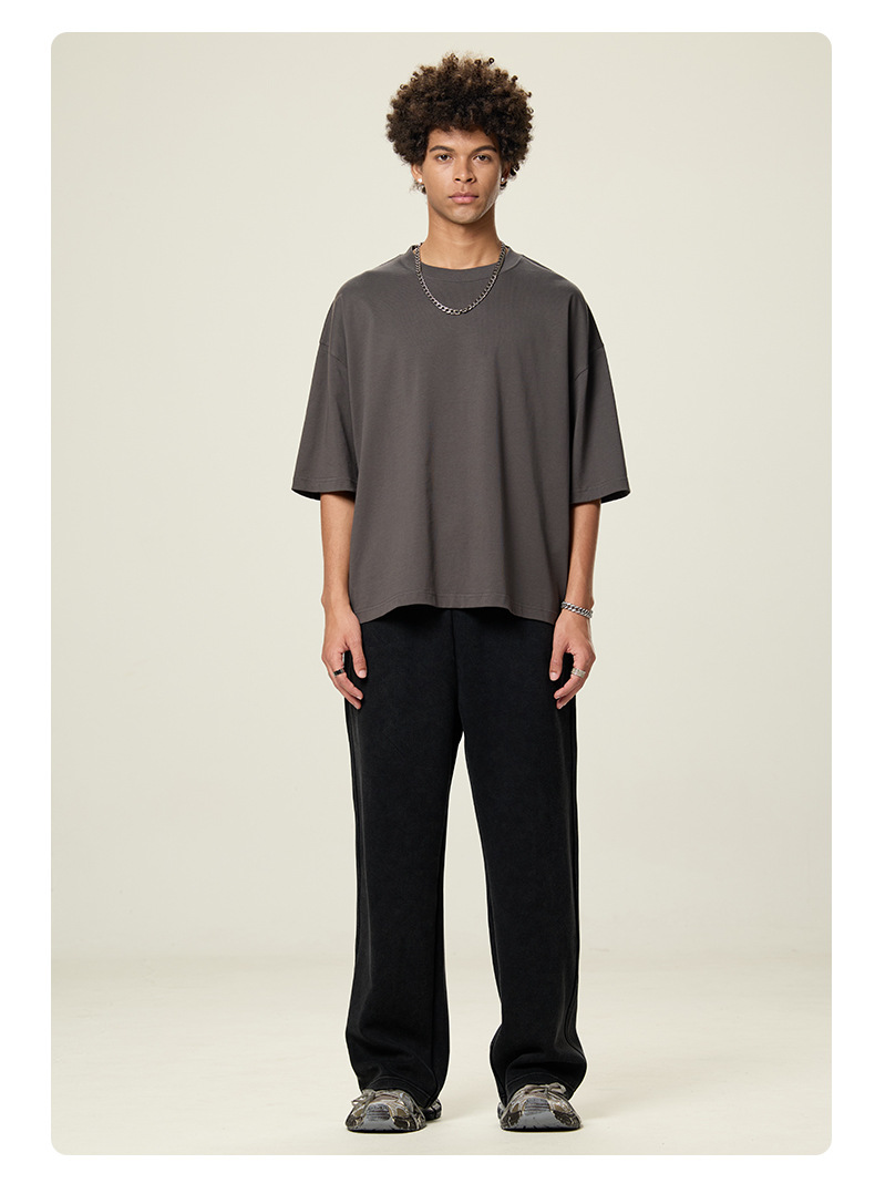 RS 남성 | 크로스-국경 박스 스퀘어 230G 타이드 브랜드 퓨어 코튼 남성용 짧은 소매 유럽과 미국의 짧은 넓은 짧은 소매 티셔츠 남성