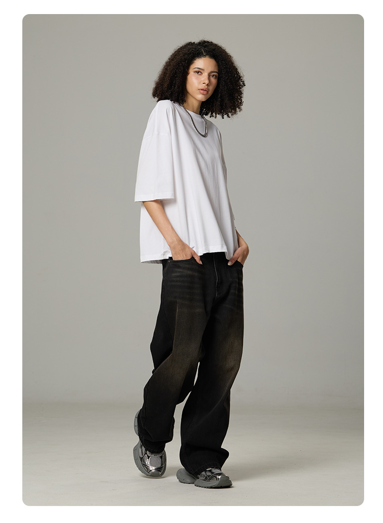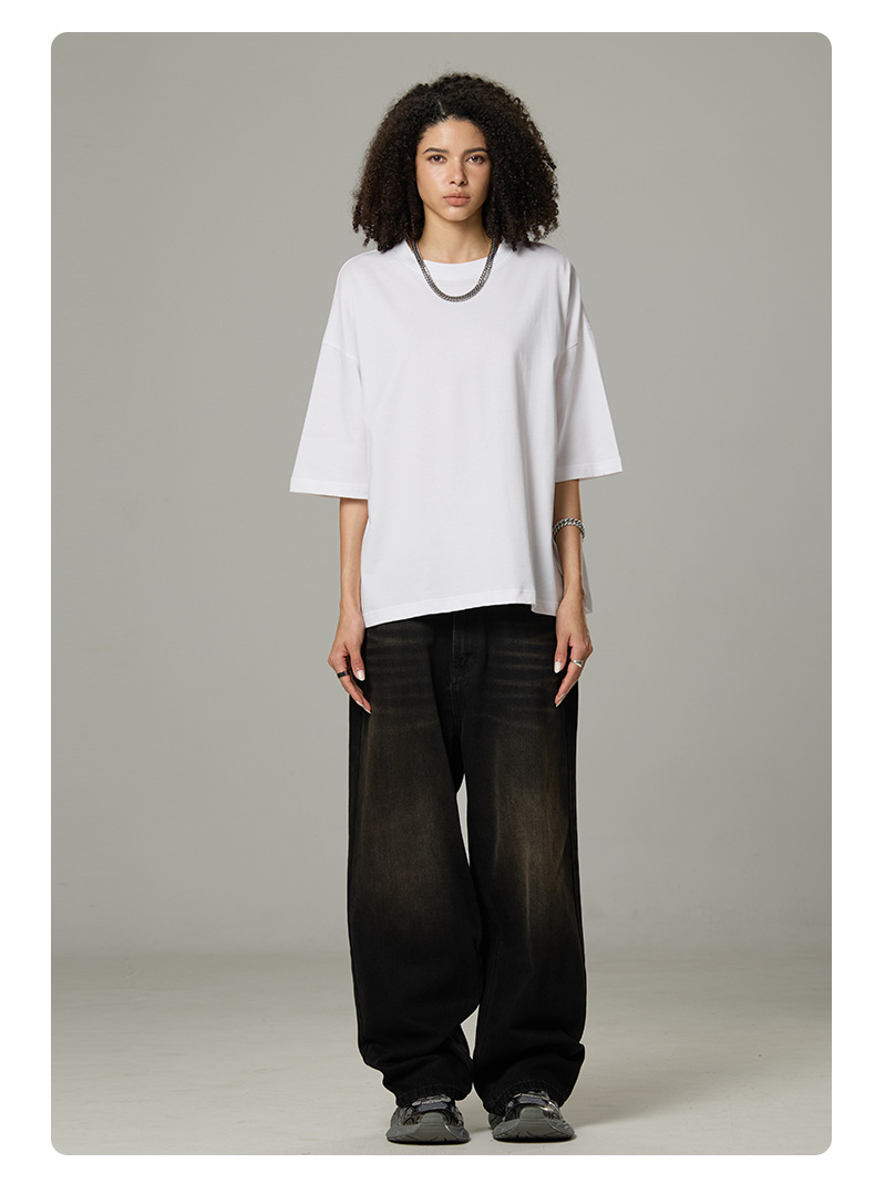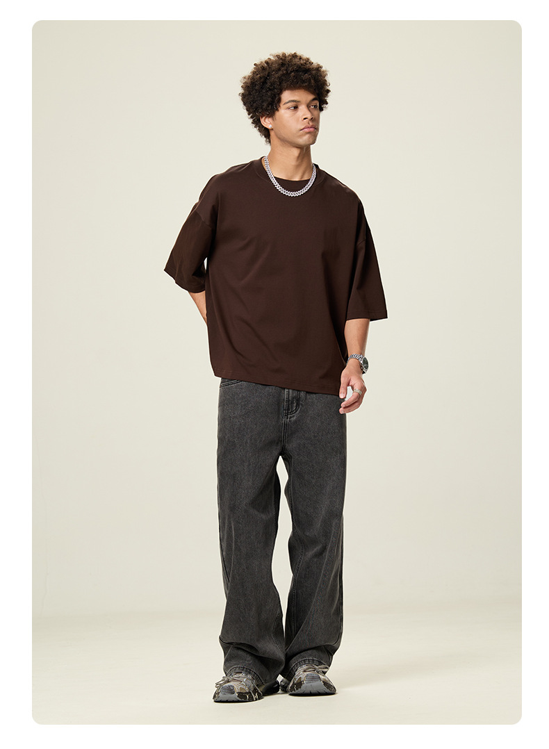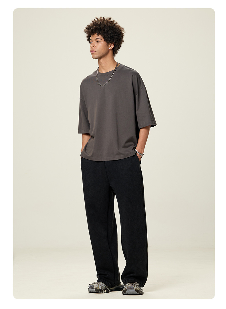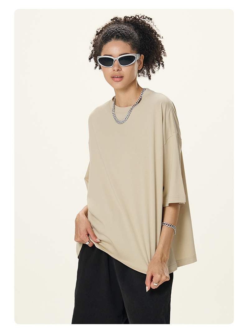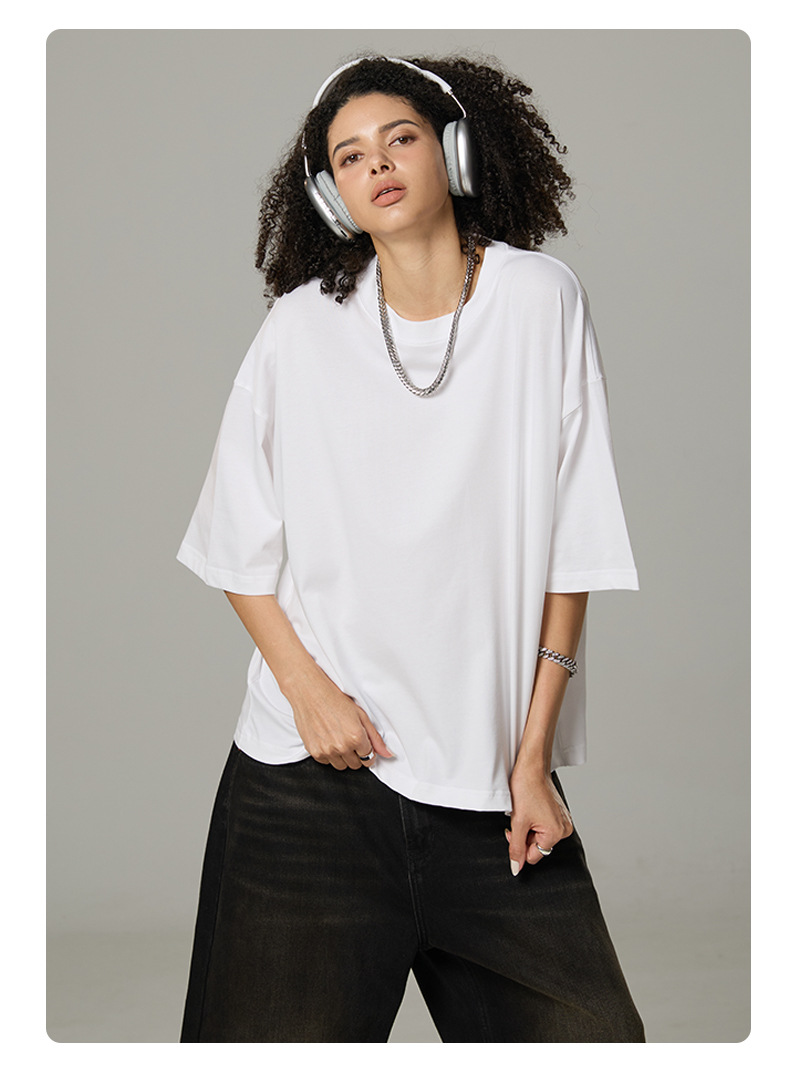 RS 남성 | 크로스-국경 박스 스퀘어 230G 타이드 브랜드 퓨어 코튼 남성용 짧은 소매 유럽과 미국의 짧은 넓은 짧은 소매 티셔츠 남성