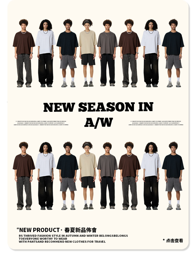 RS 남성 | 크로스-국경 박스 스퀘어 230G 타이드 브랜드 퓨어 코튼 남성용 짧은 소매 유럽과 미국의 짧은 넓은 짧은 소매 티셔츠 남성스토어 가기